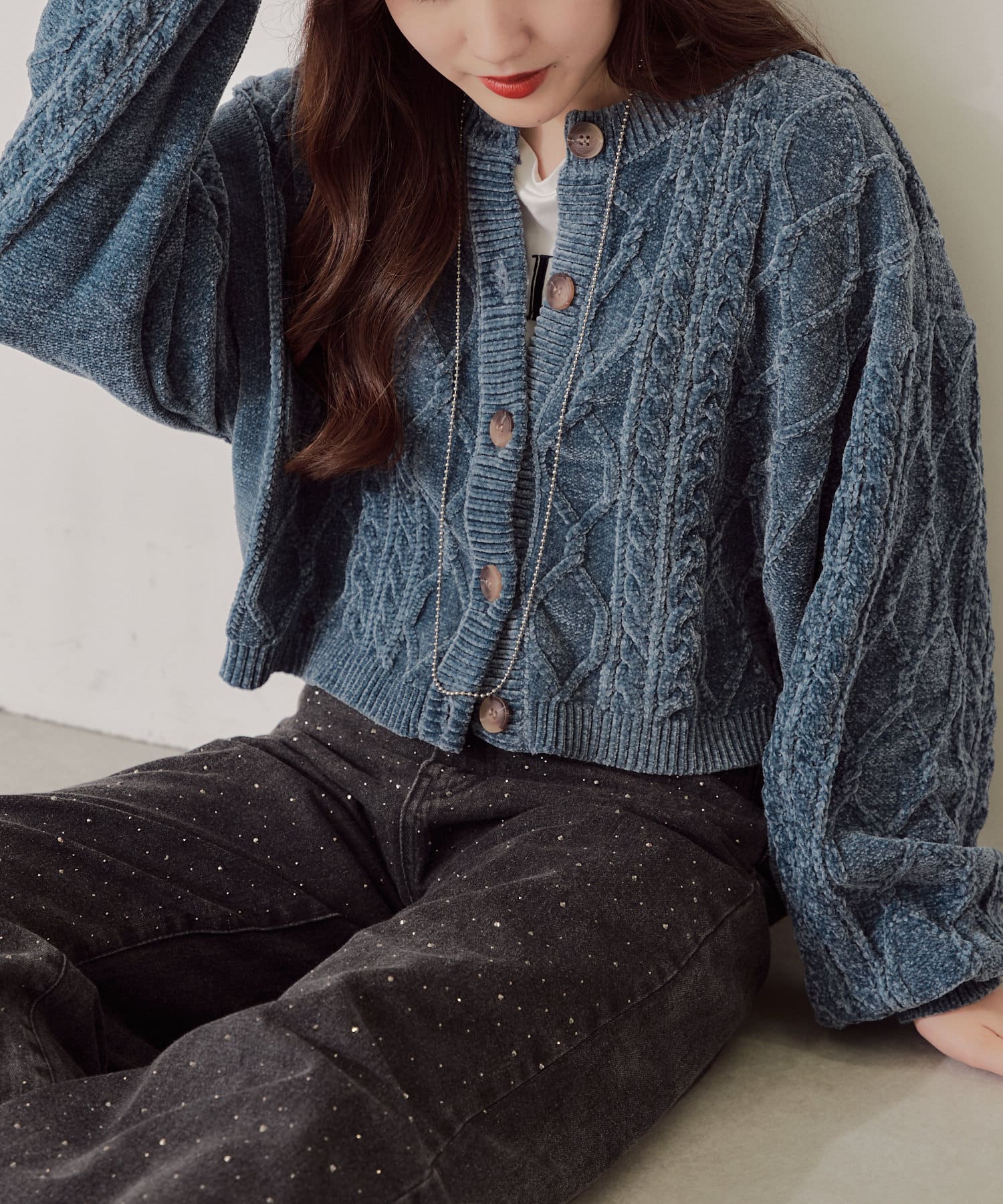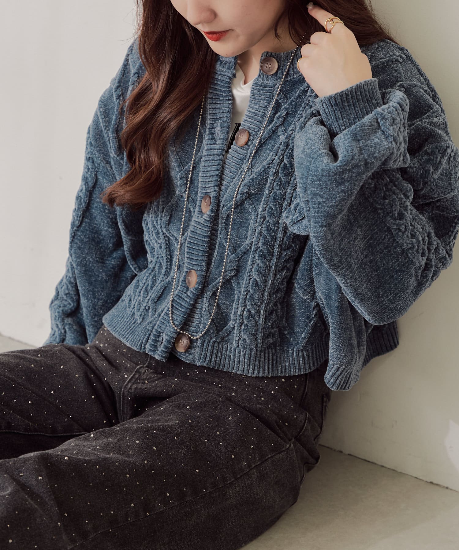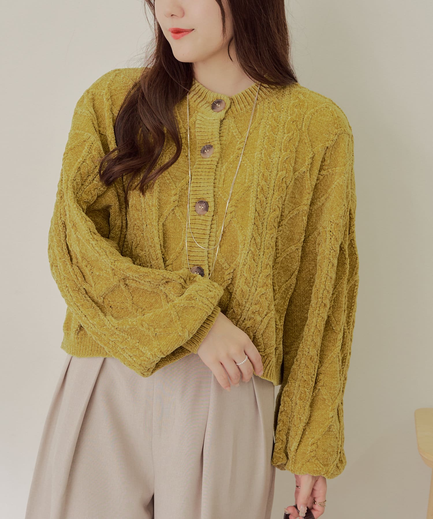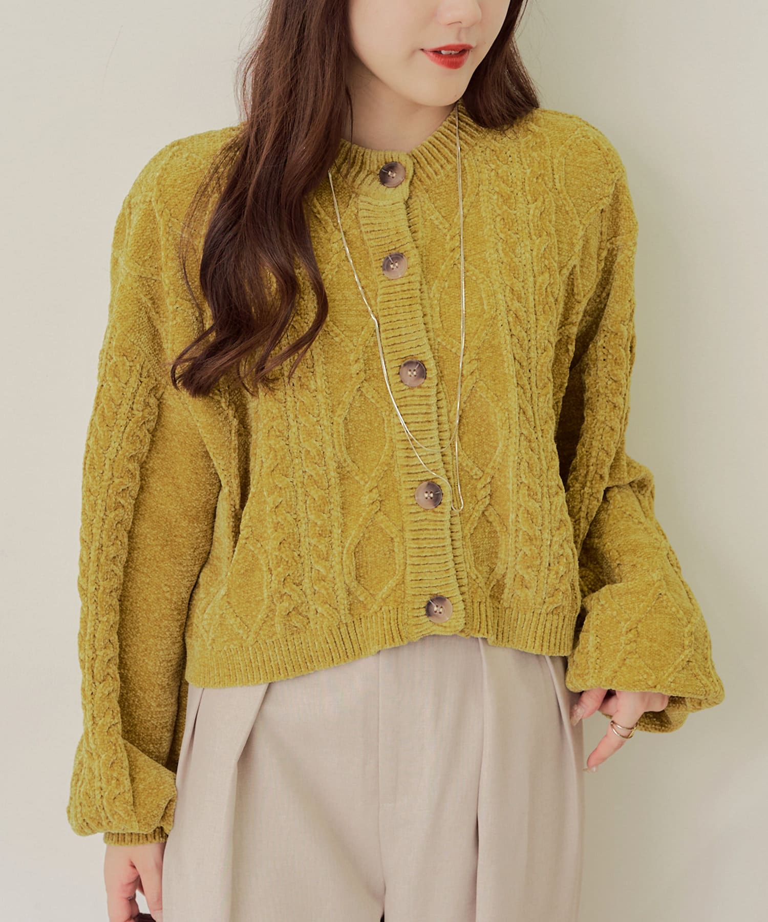 ・毛玉になりにくいモールニットのカーディガン。