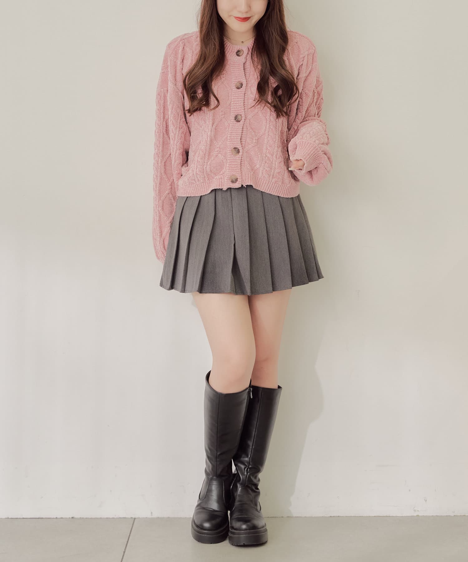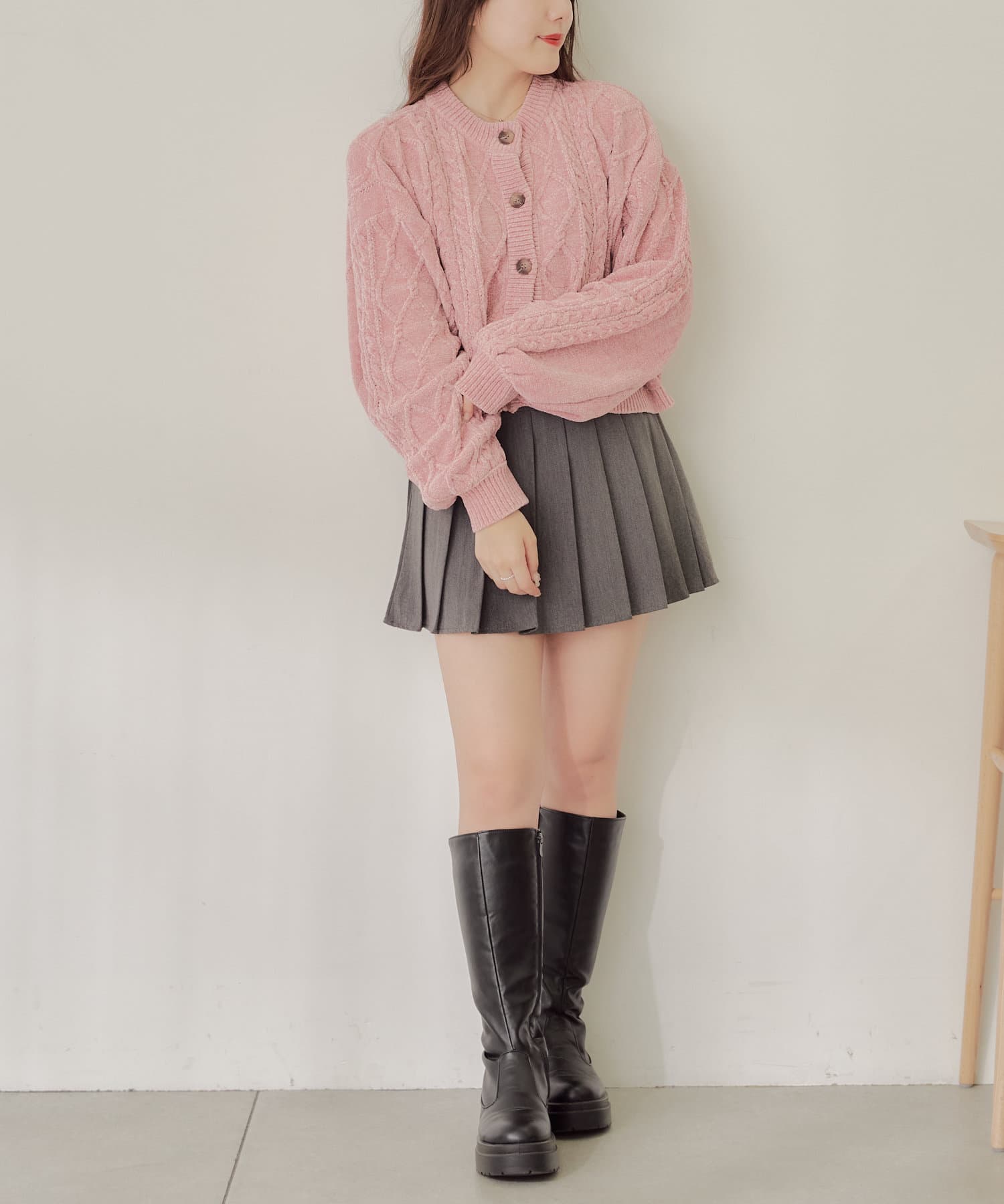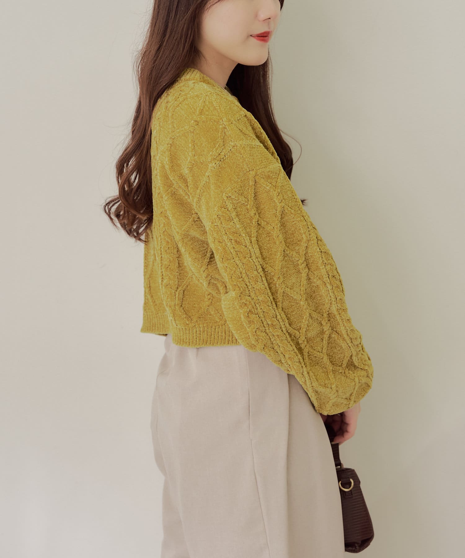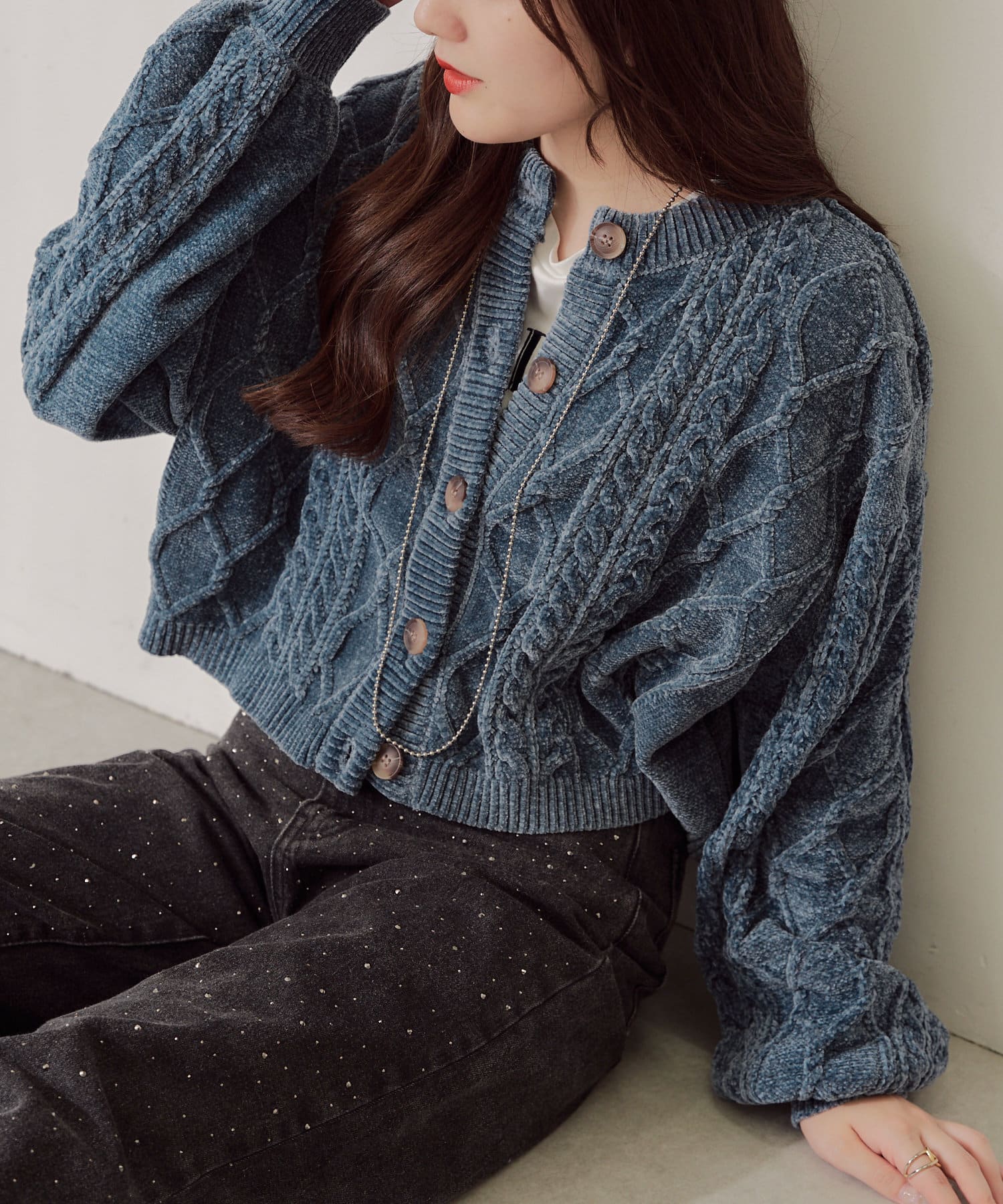 ・毛玉になりにくいモールニットのカーディガン。