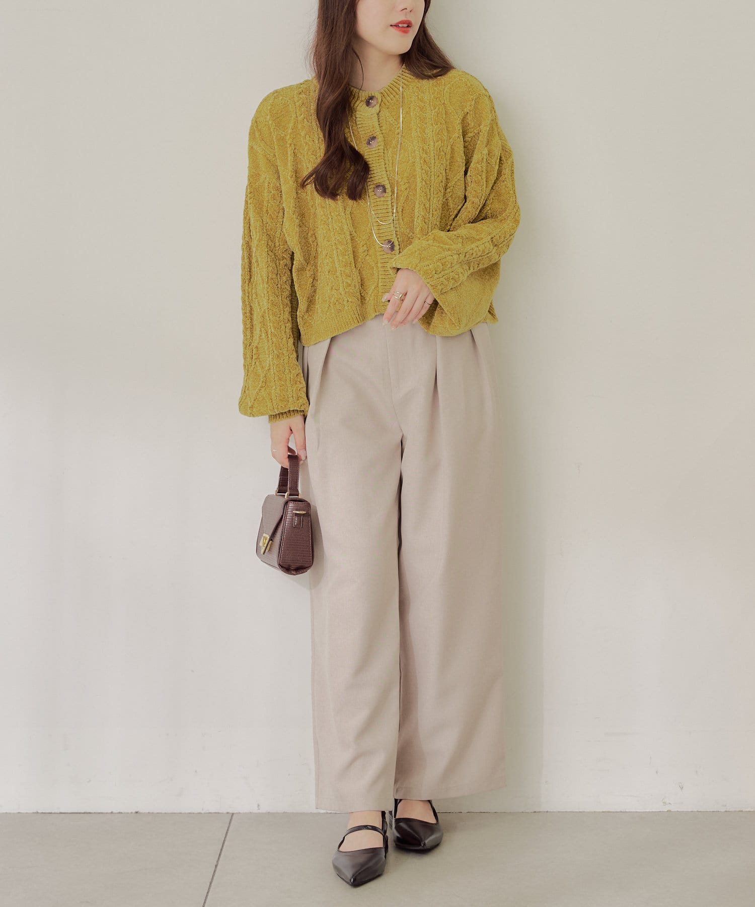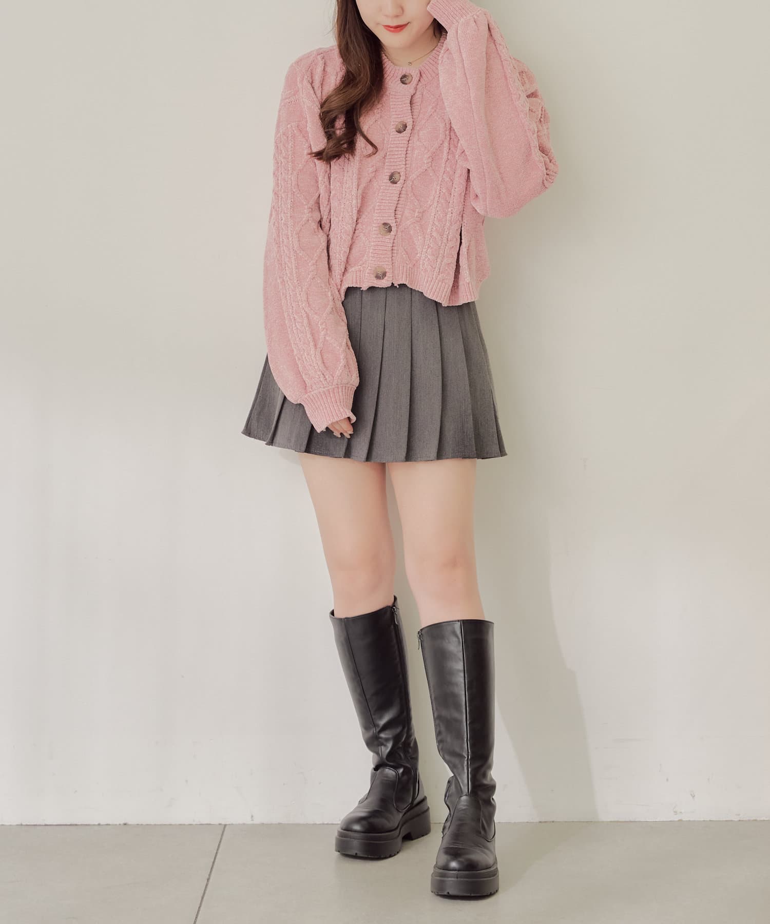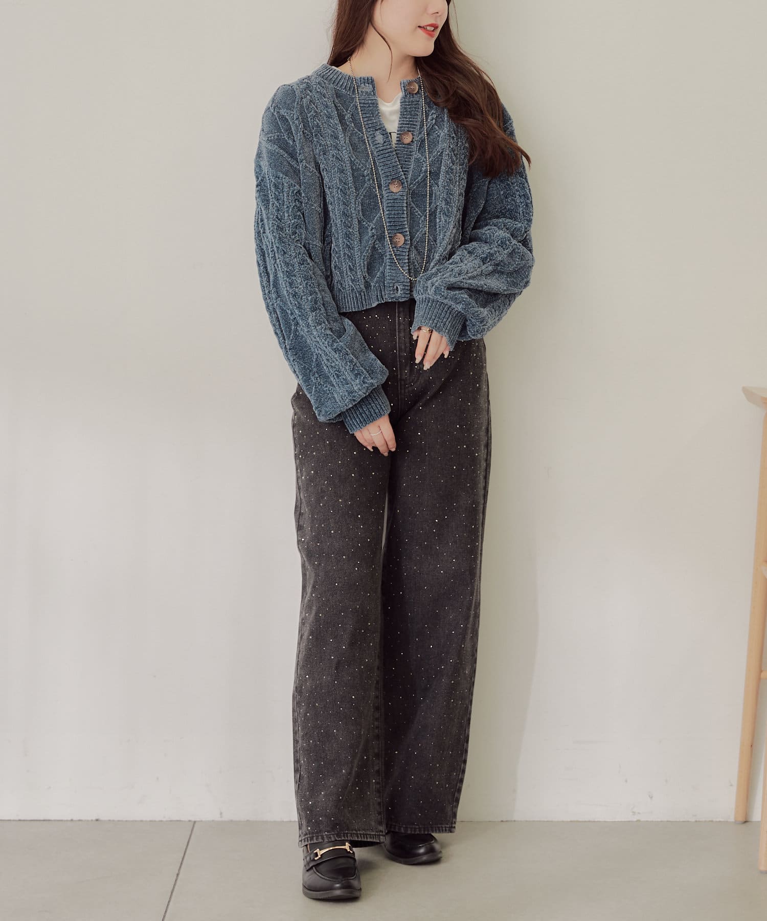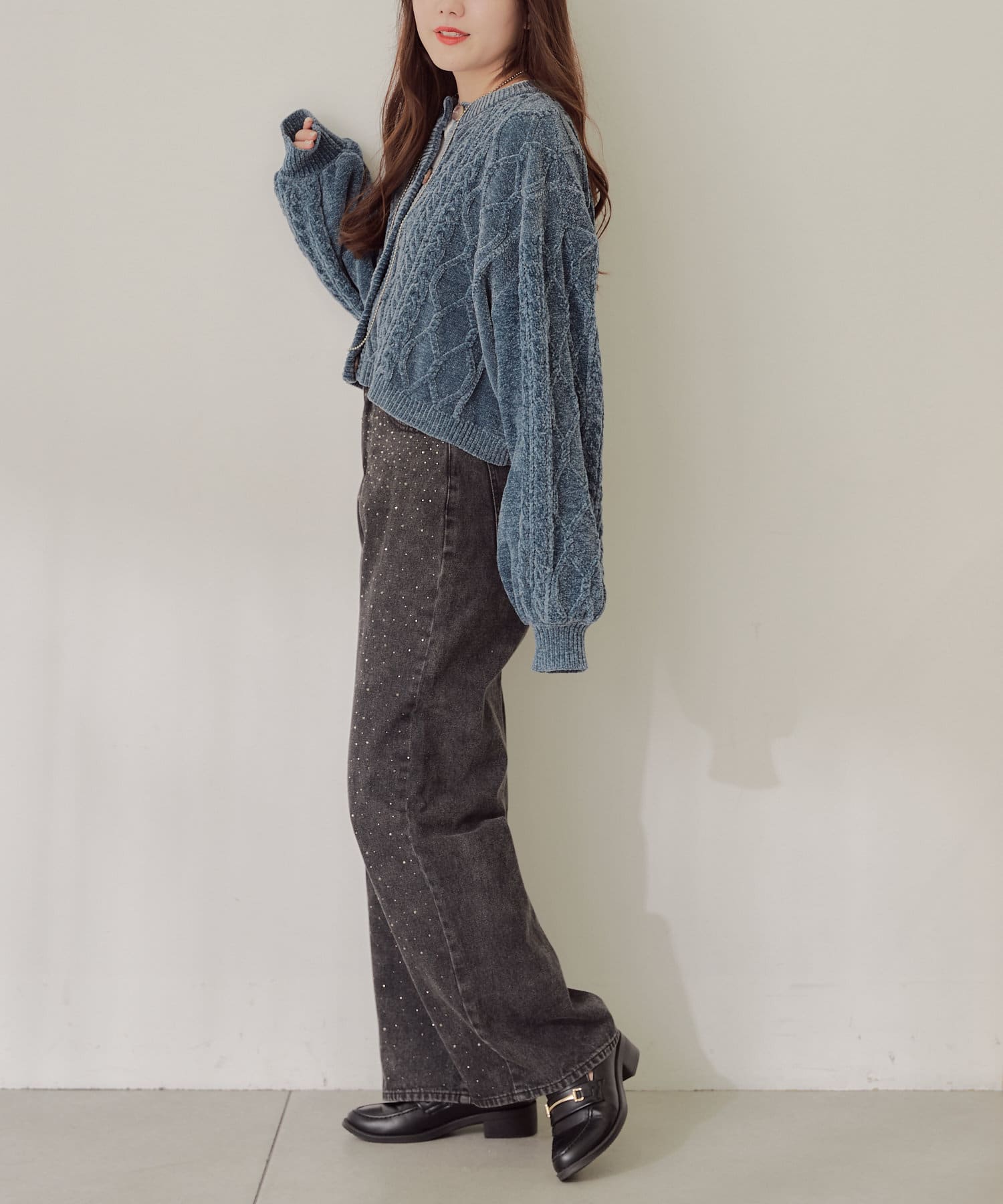 ・毛玉になりにくいモールニットのカーディガン。