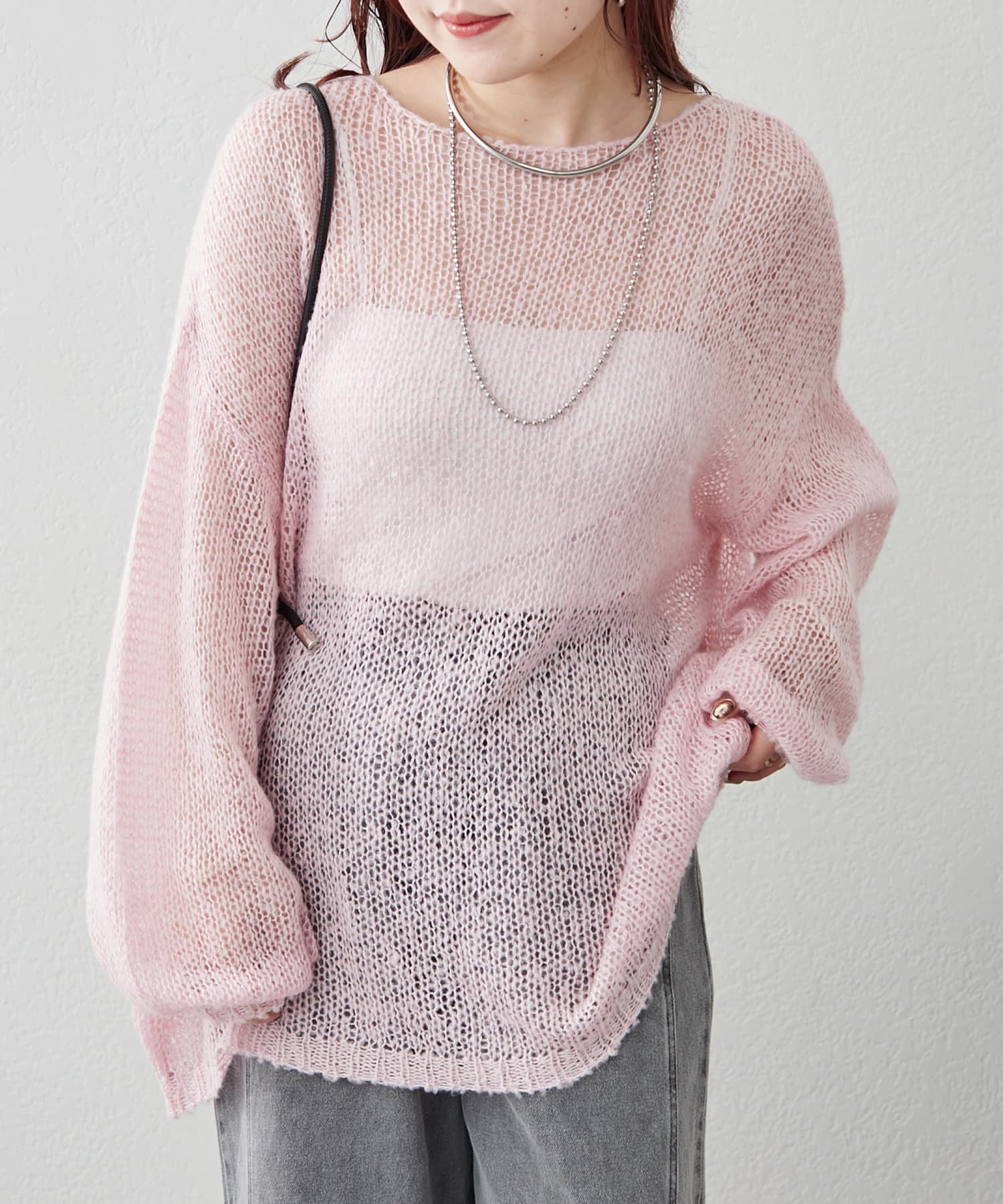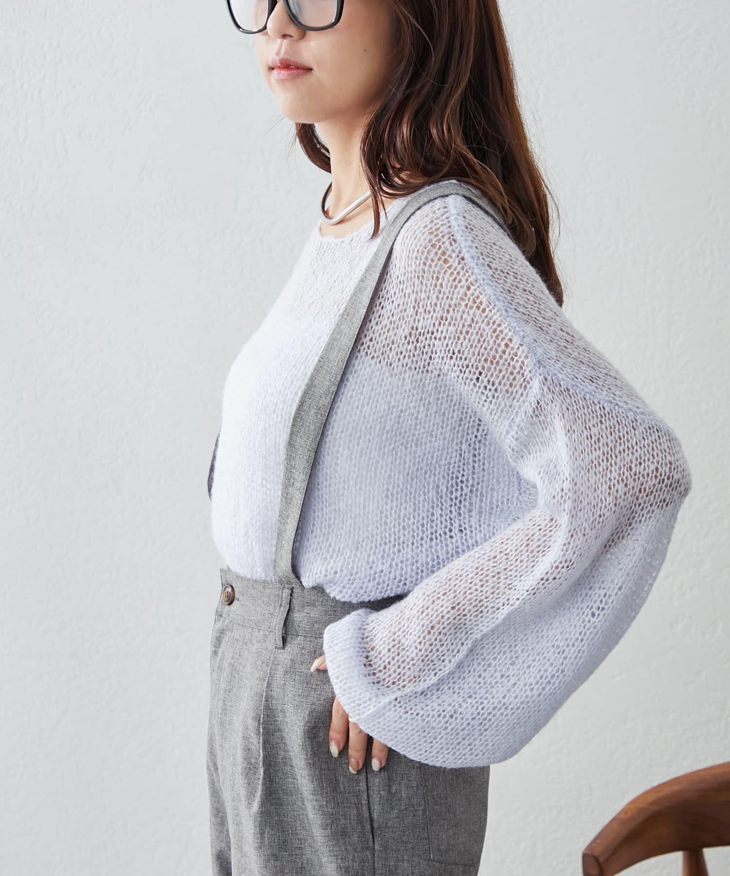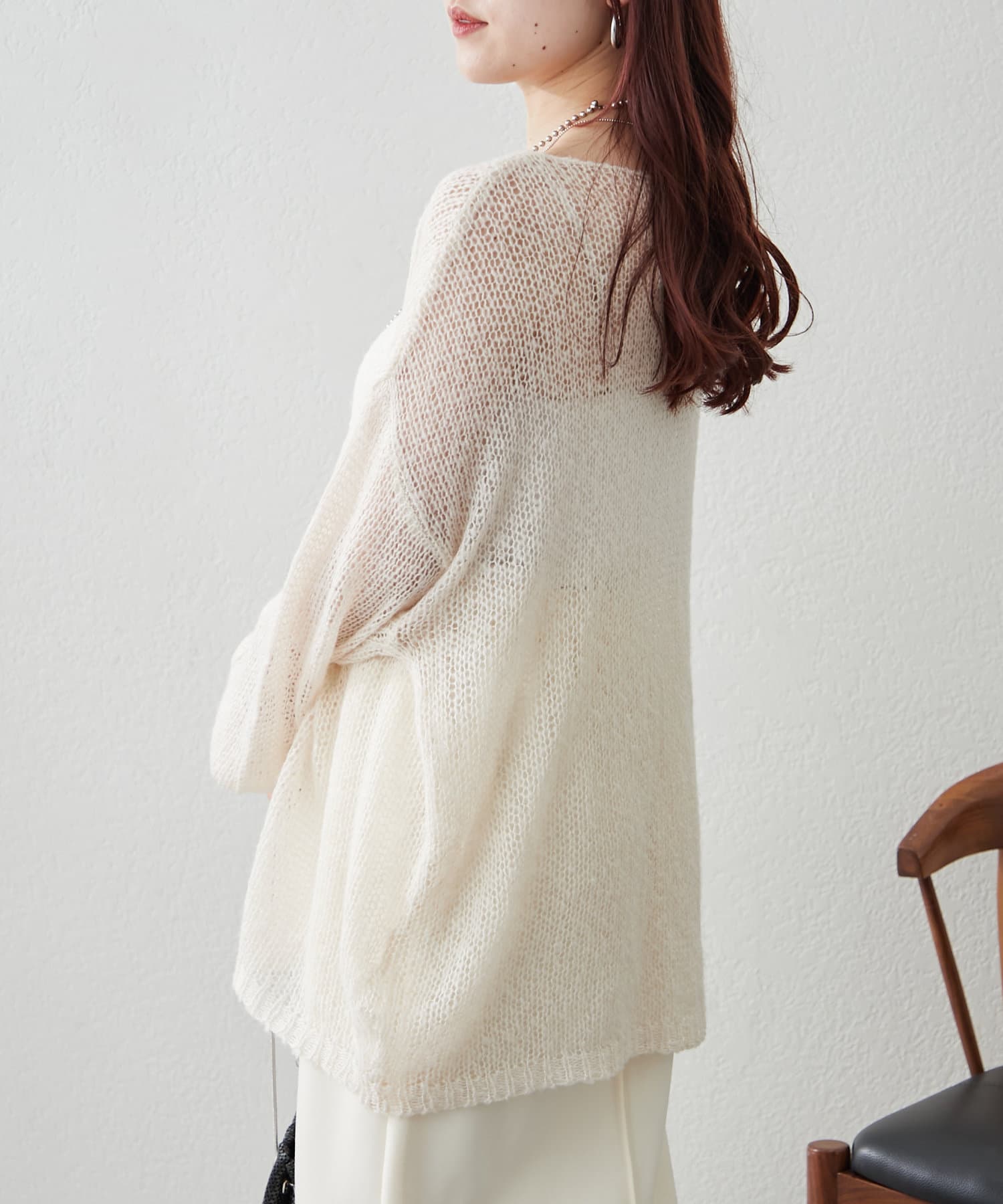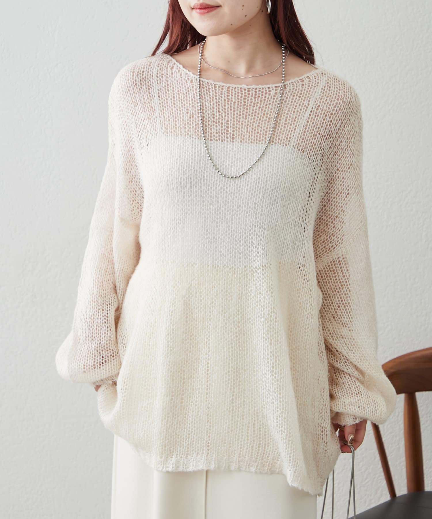 ・柔らかなモヘアタッチ素材で、チクチク感もなく着心地のよいニット。