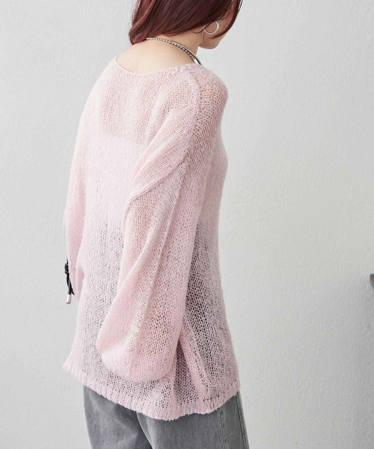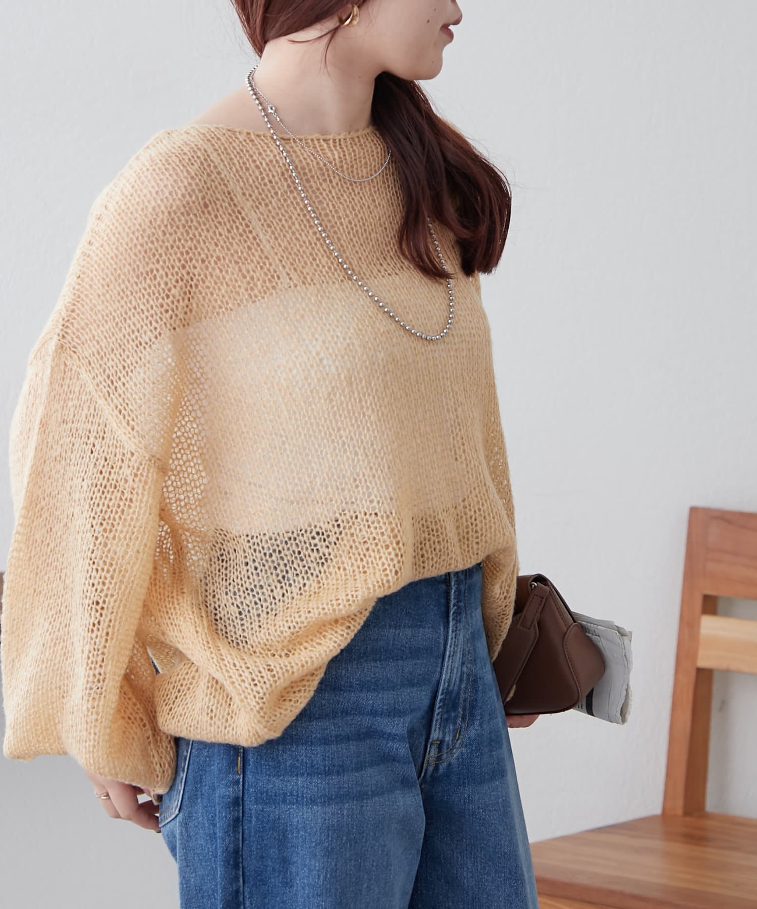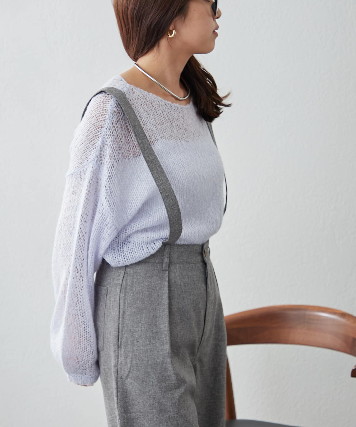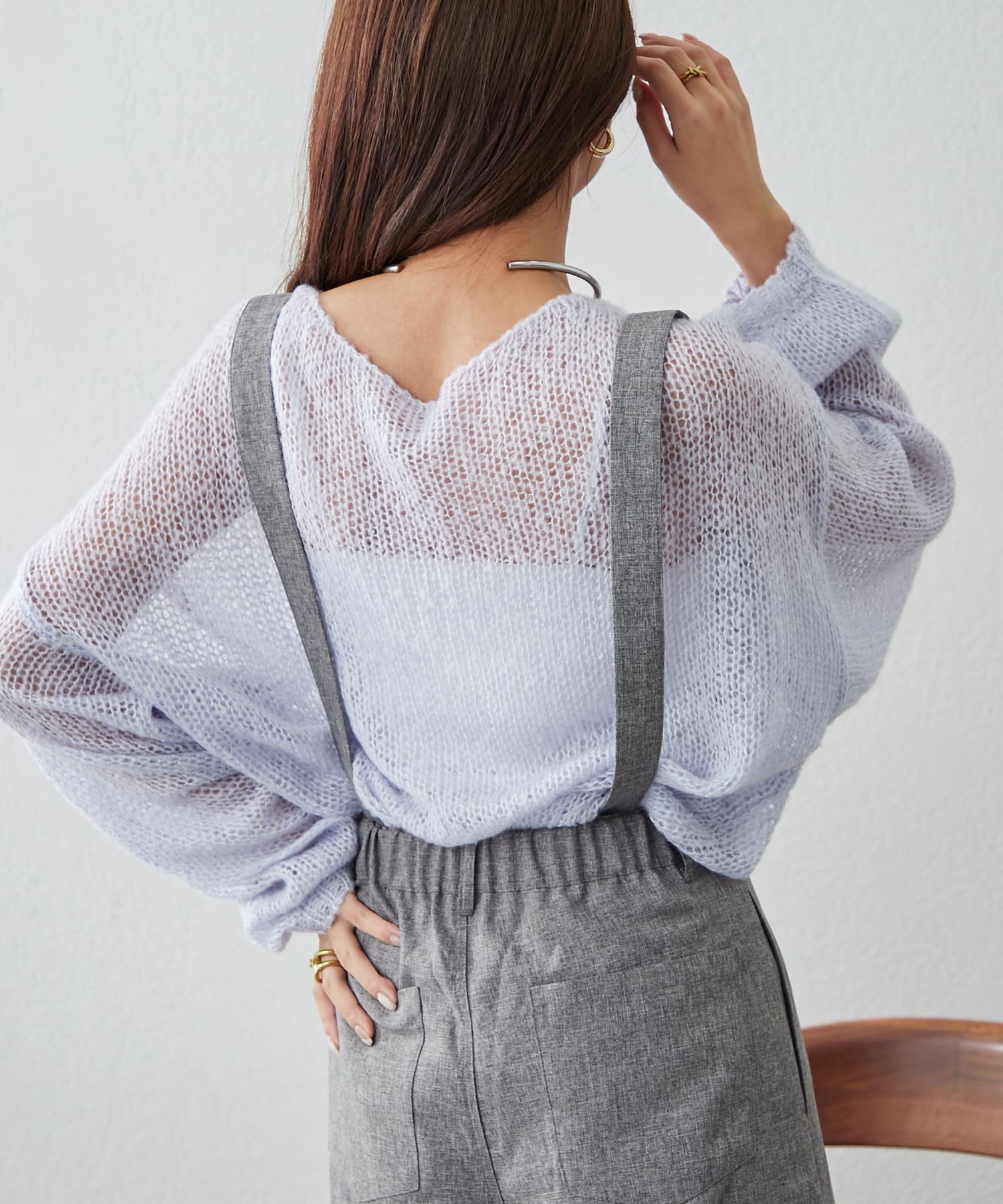 ・柔らかなモヘアタッチ素材で、チクチク感もなく着心地のよいニット。