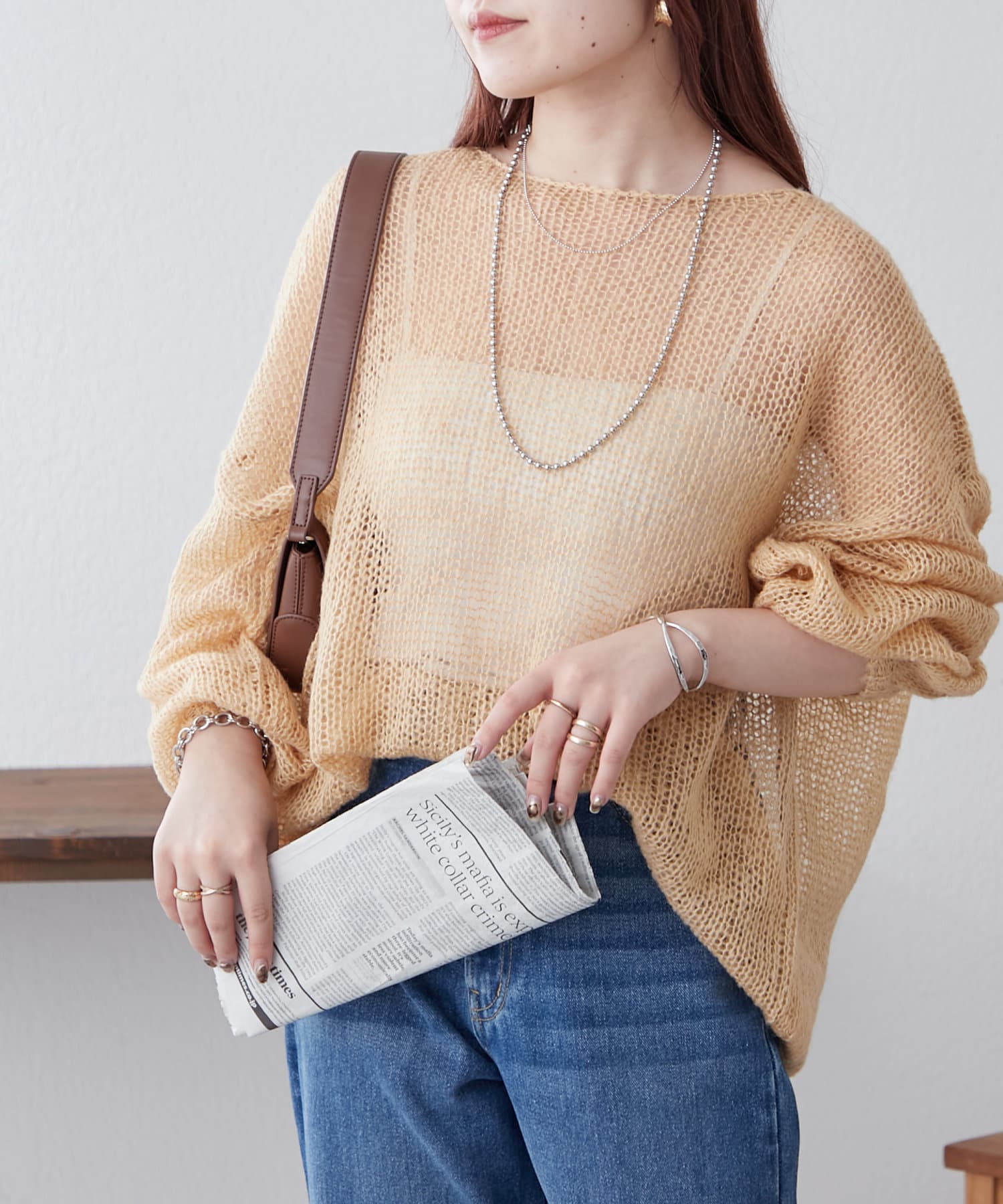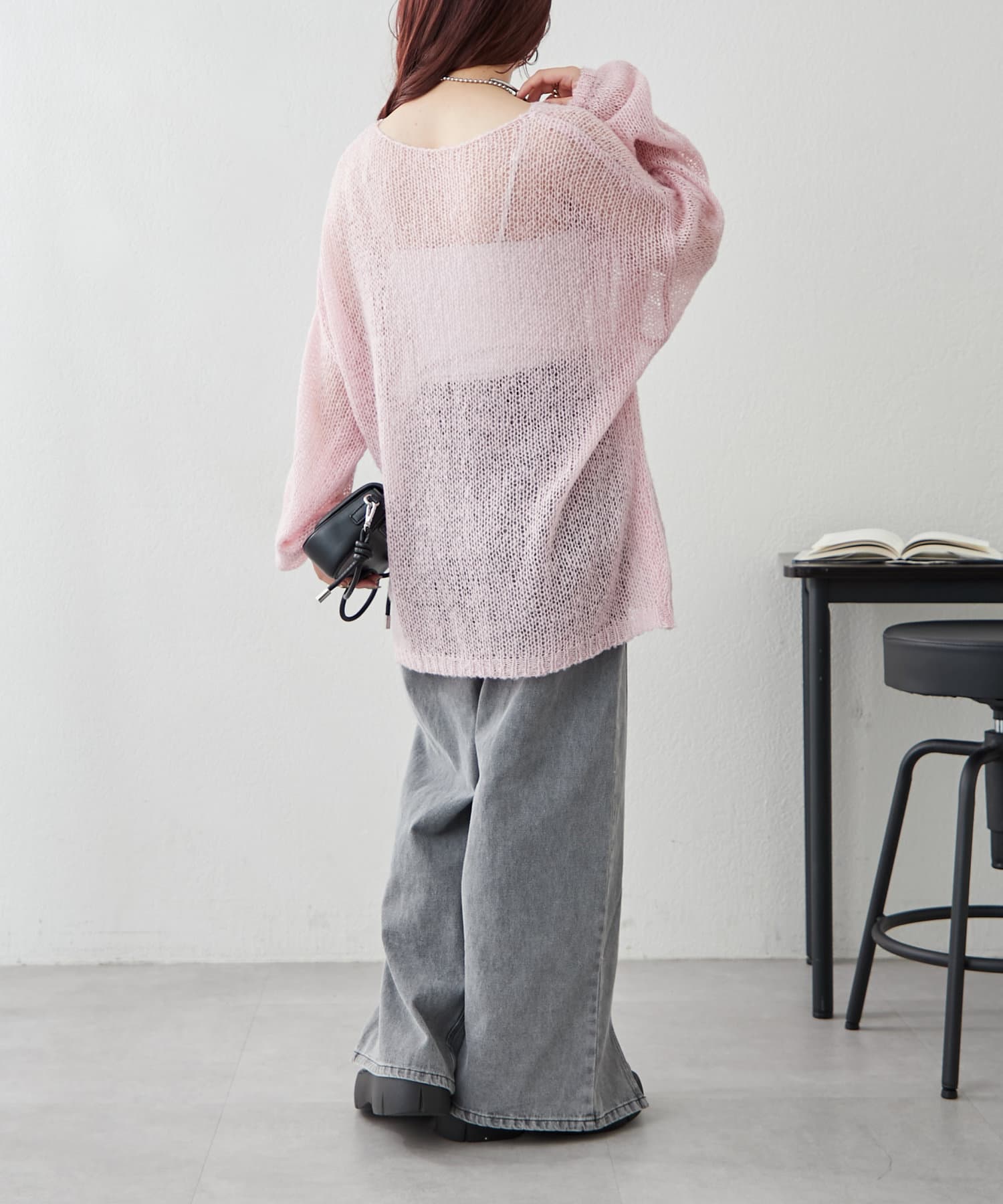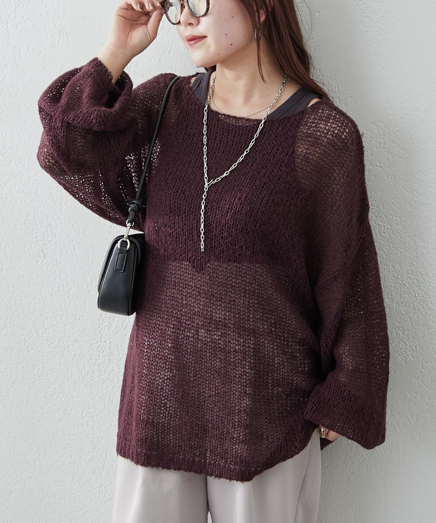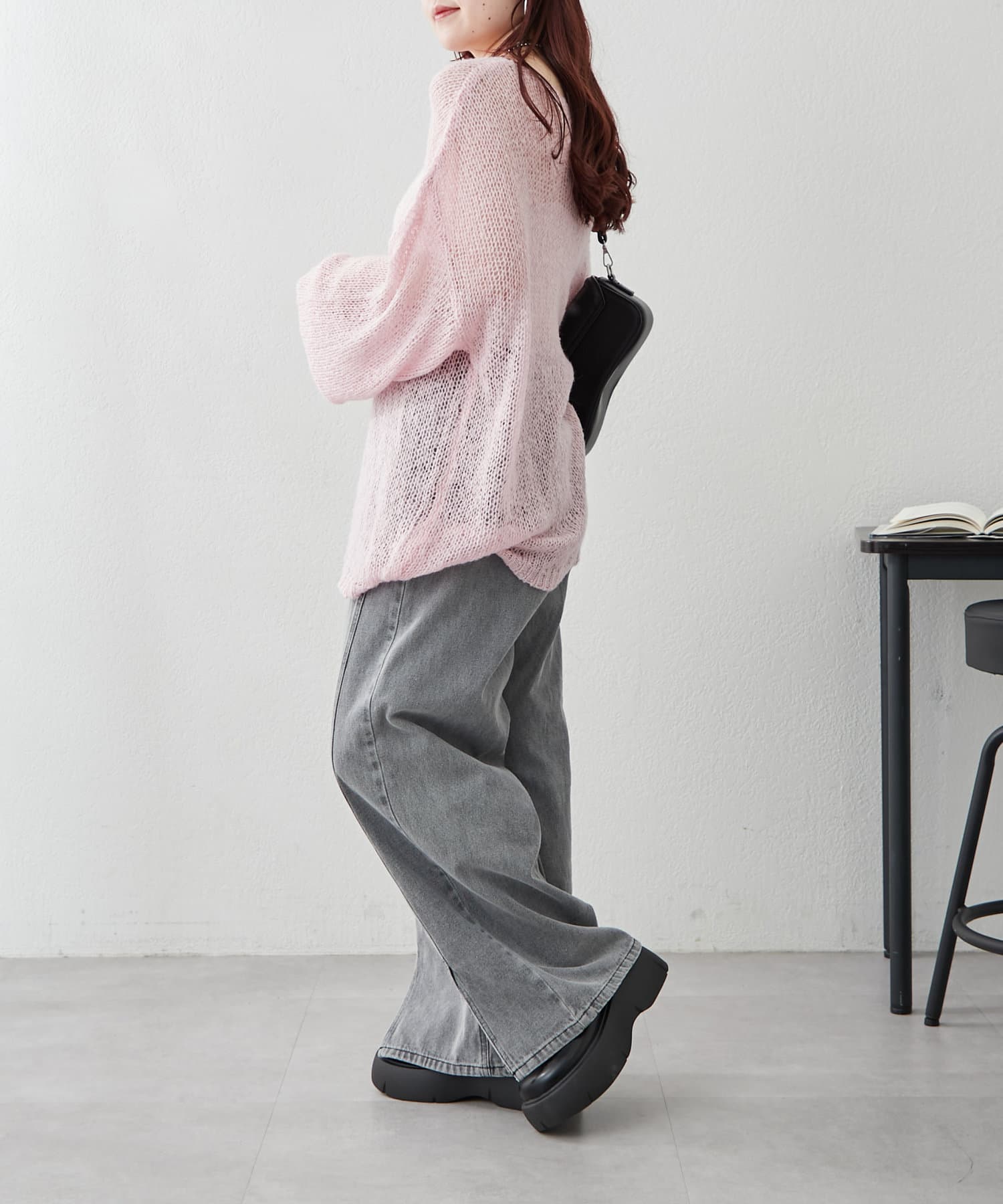 ・柔らかなモヘアタッチ素材で、チクチク感もなく着心地のよいニット。