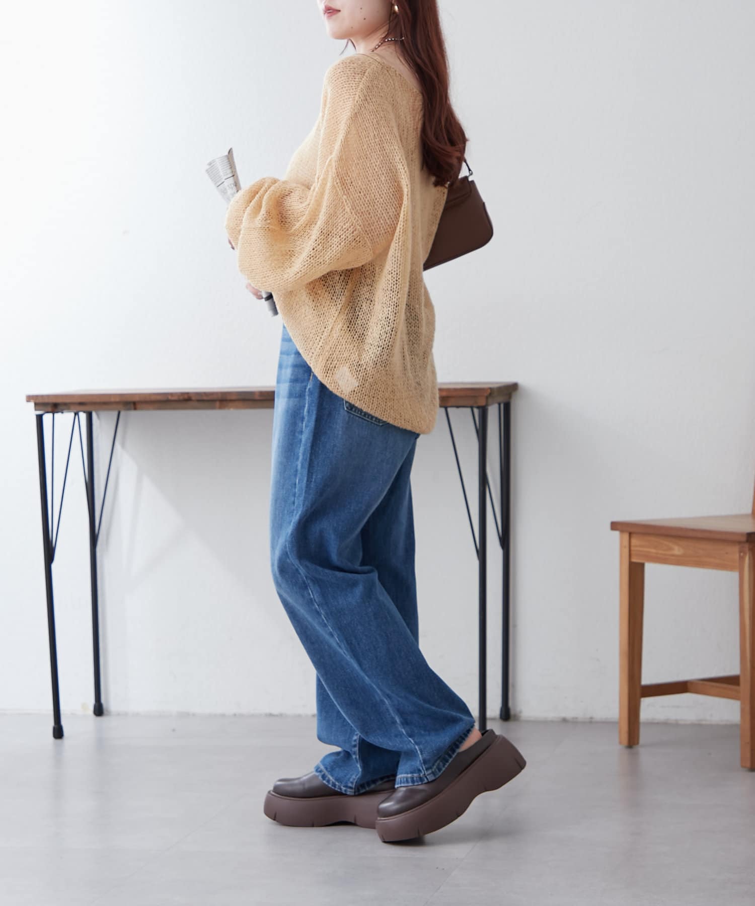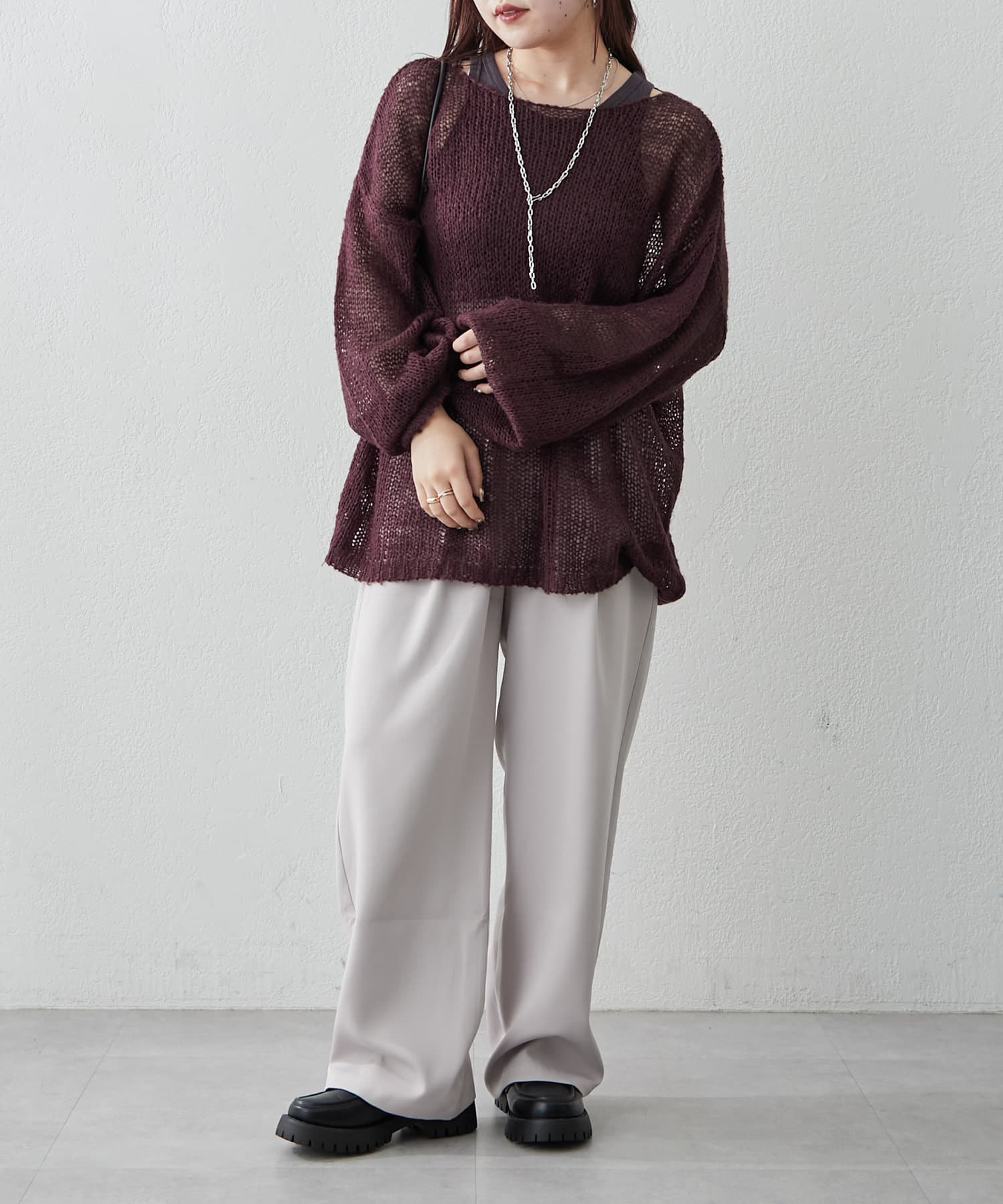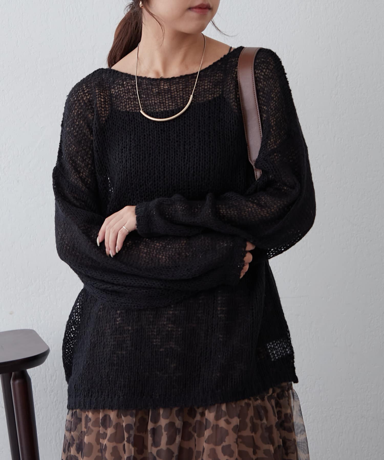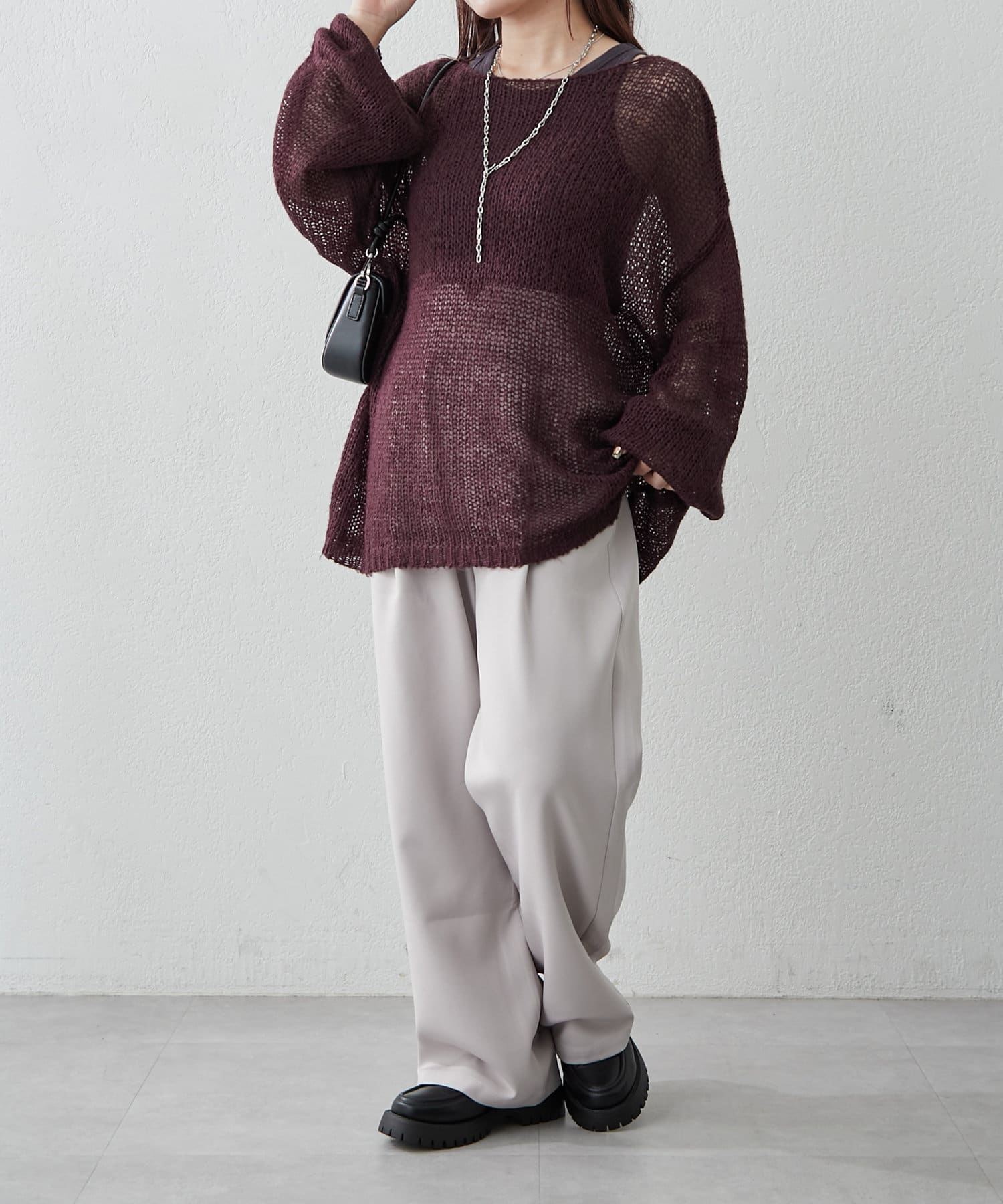 ・柔らかなモヘアタッチ素材で、チクチク感もなく着心地のよいニット。