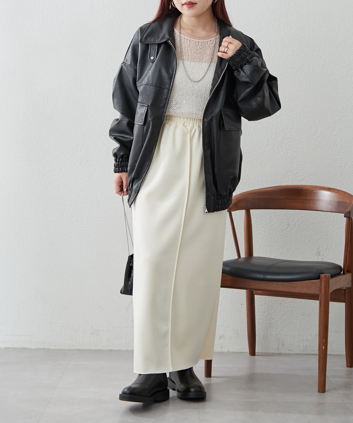 ボトムは鉄板のデニムで合わせたり、ミニボトムにロングブーツでミニワンピースっぽく着こなすのもオススメ。