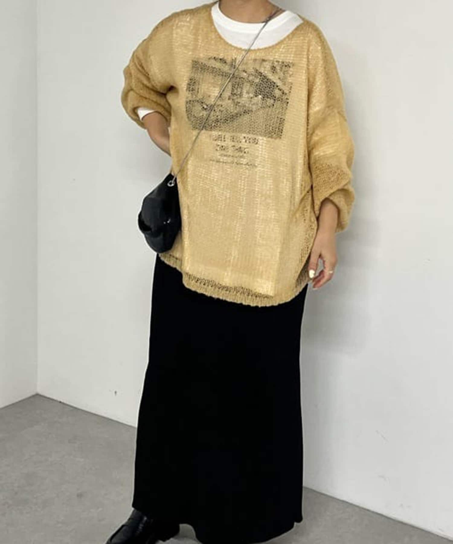 ハイネックニットやロンTeeのロゴを透けさせていつものコーデにトレンド感をプラスするのがオススメです。