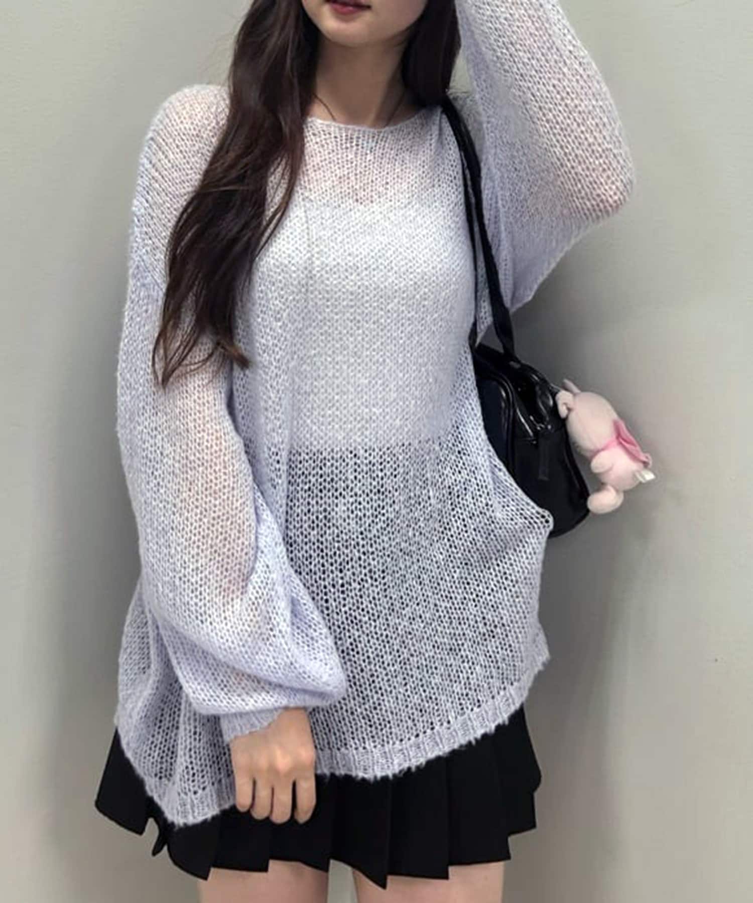 ・柔らかなモヘアタッチ素材で、チクチク感もなく着心地のよいニット。