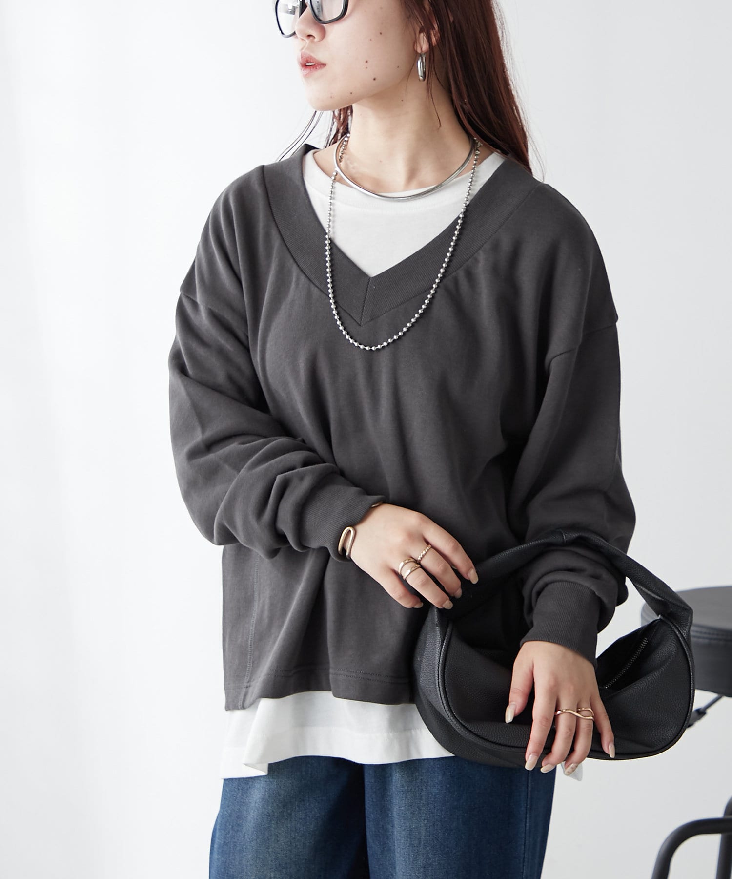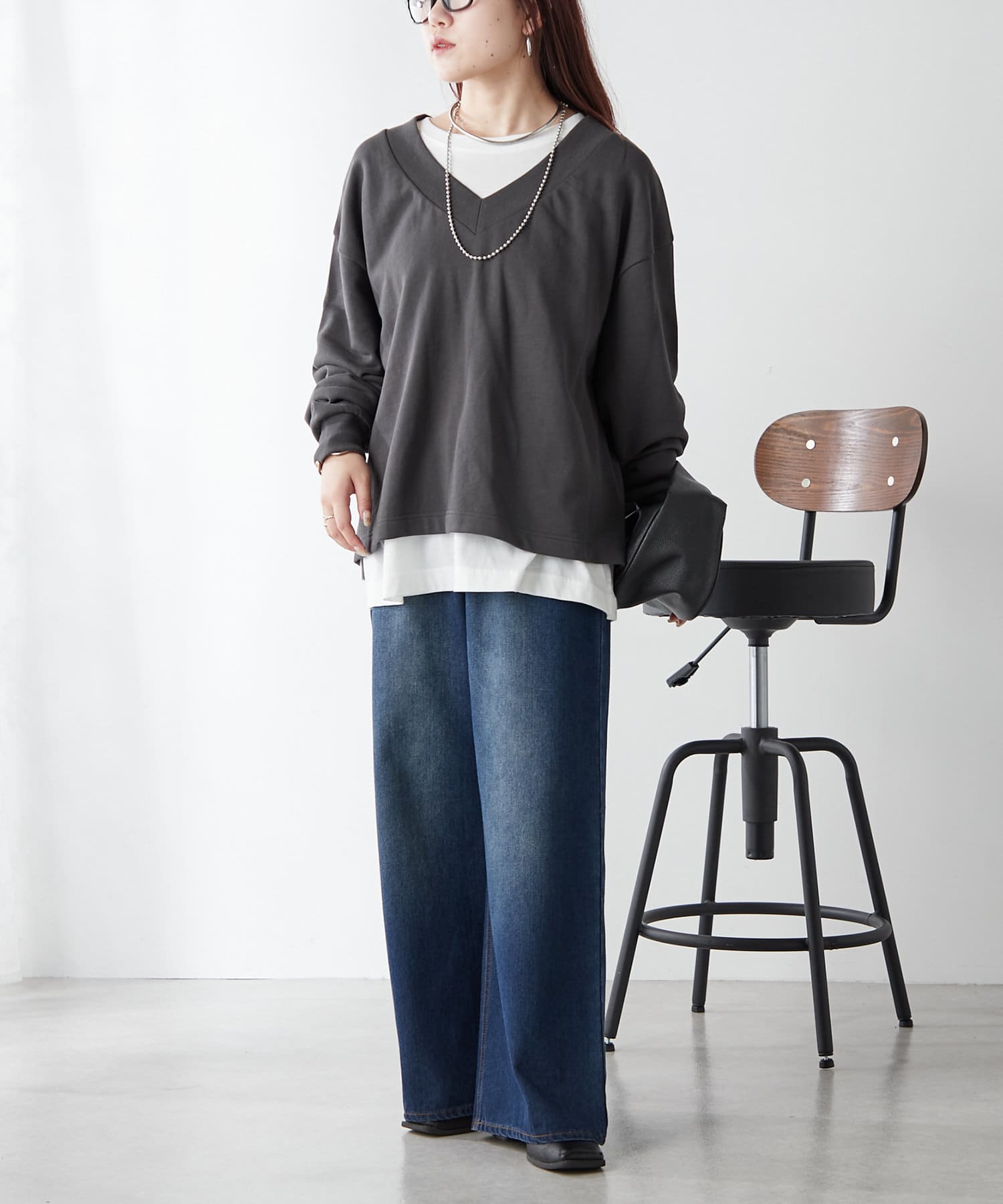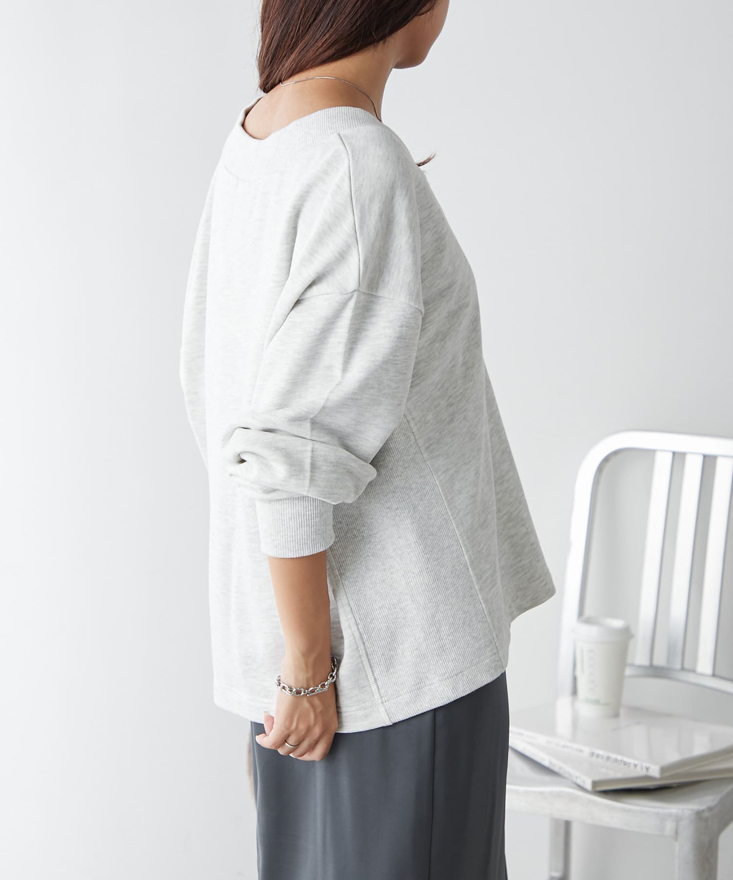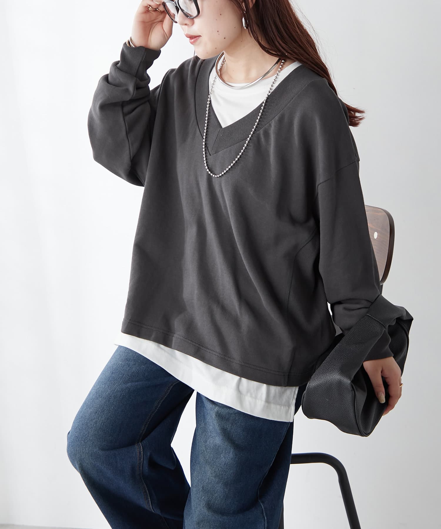 ・Vネックデザインが首周りをすっきりとした印象に見せてくれるプルオーバー