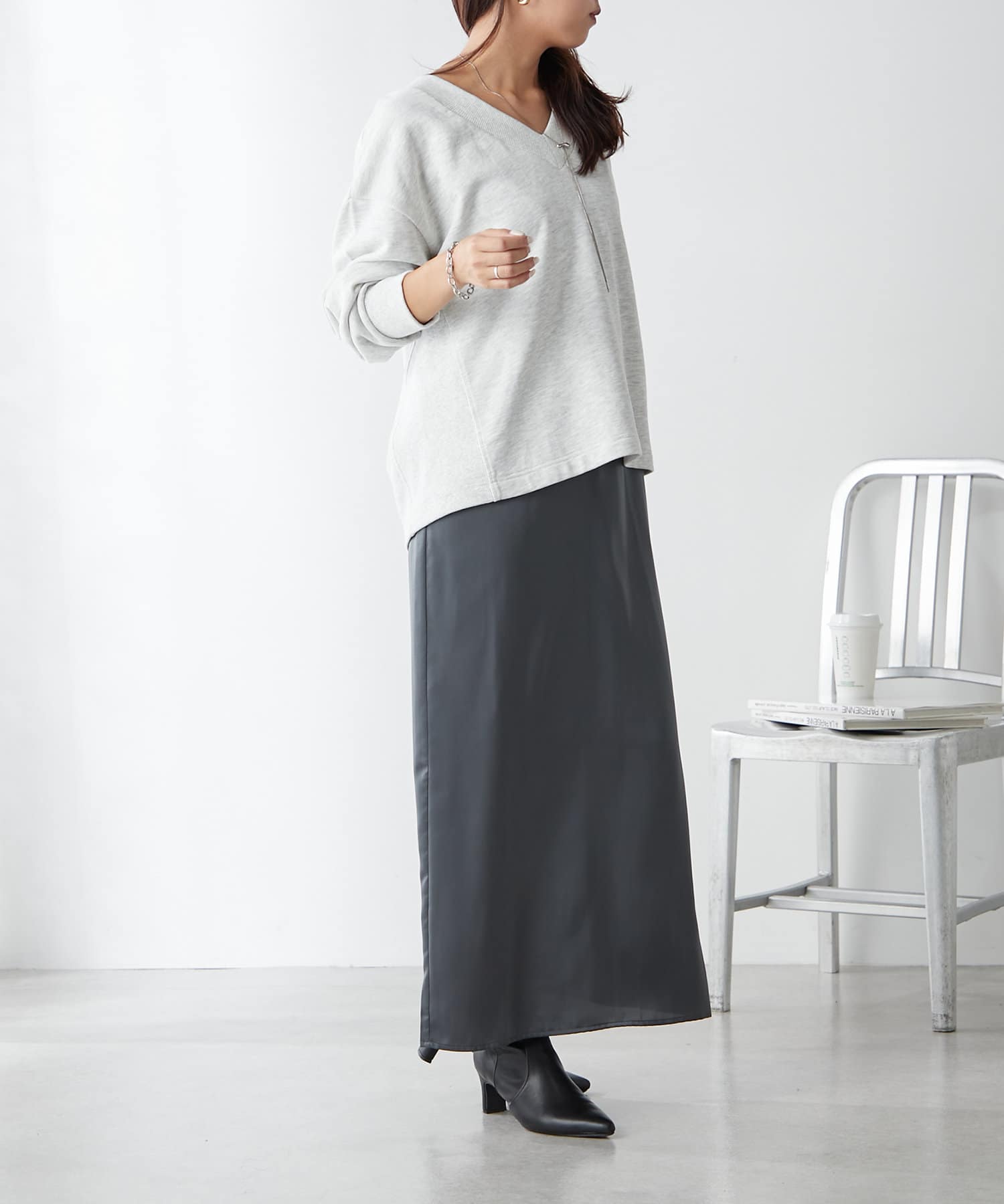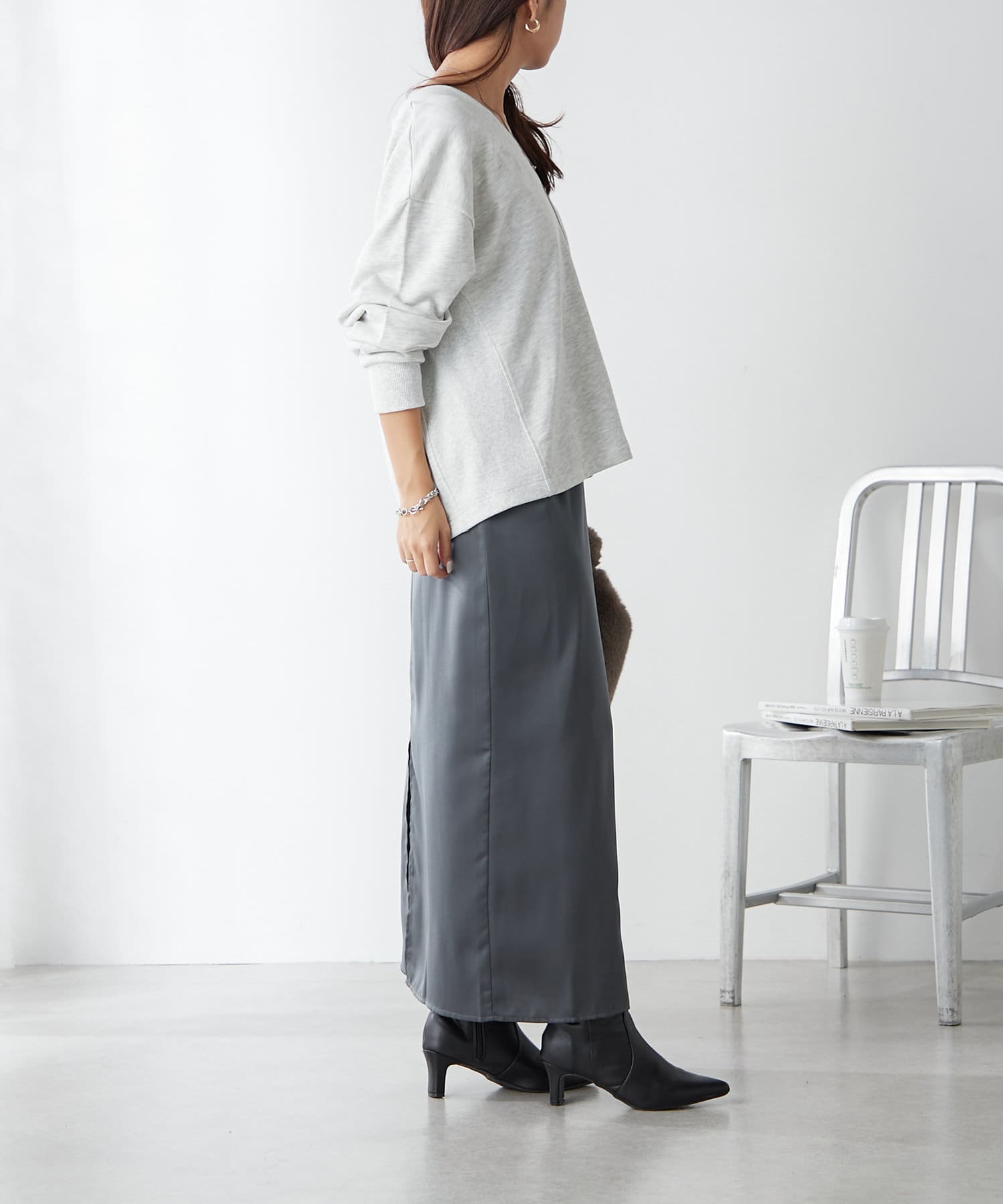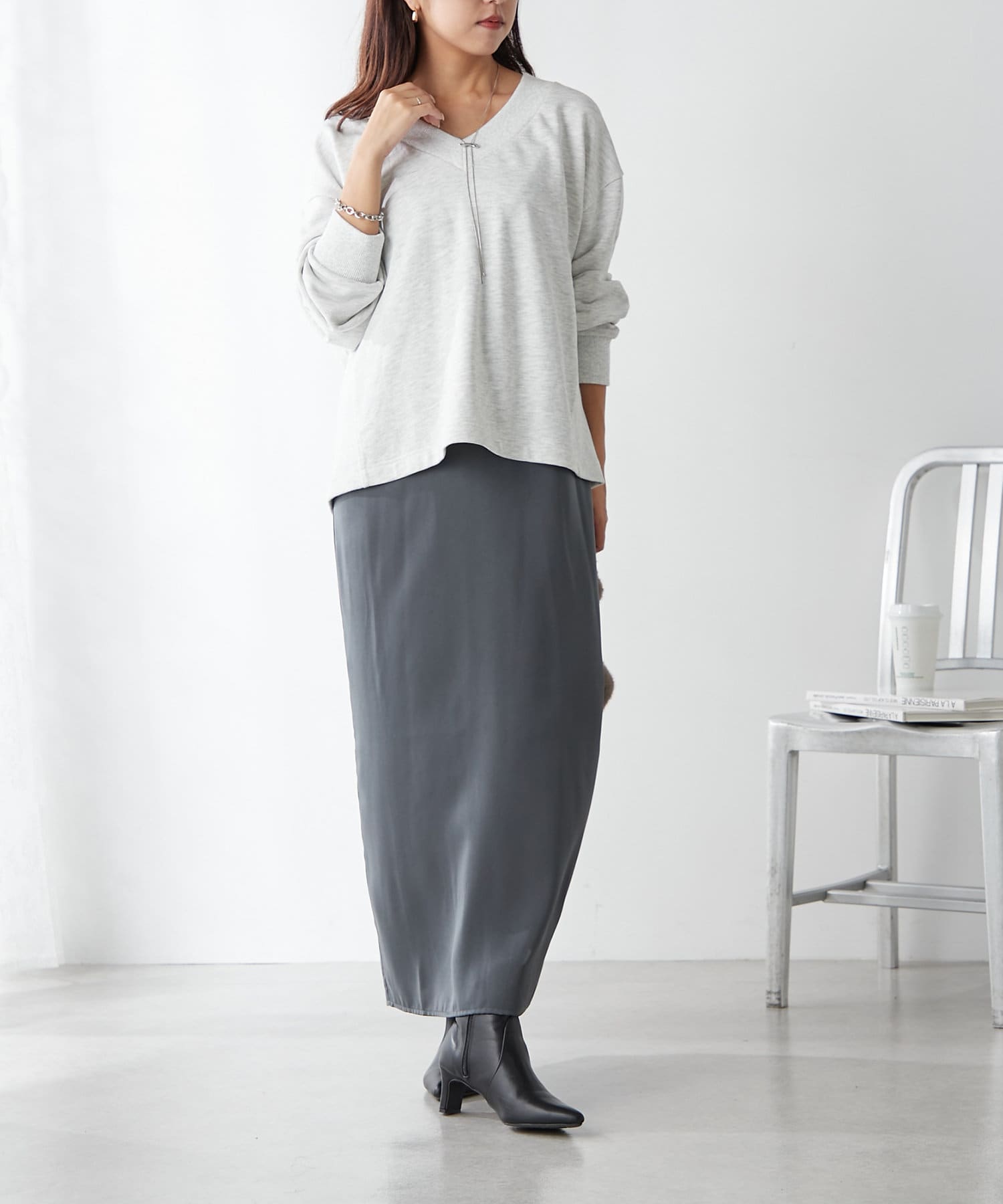 ・ヒップまでかかるインナーを中に選んで体型カバーできるスタイリングがオススメ