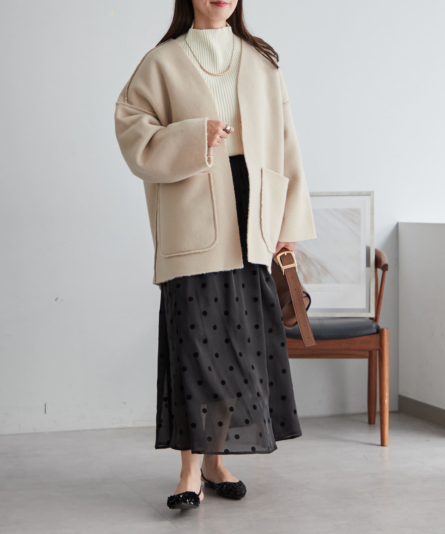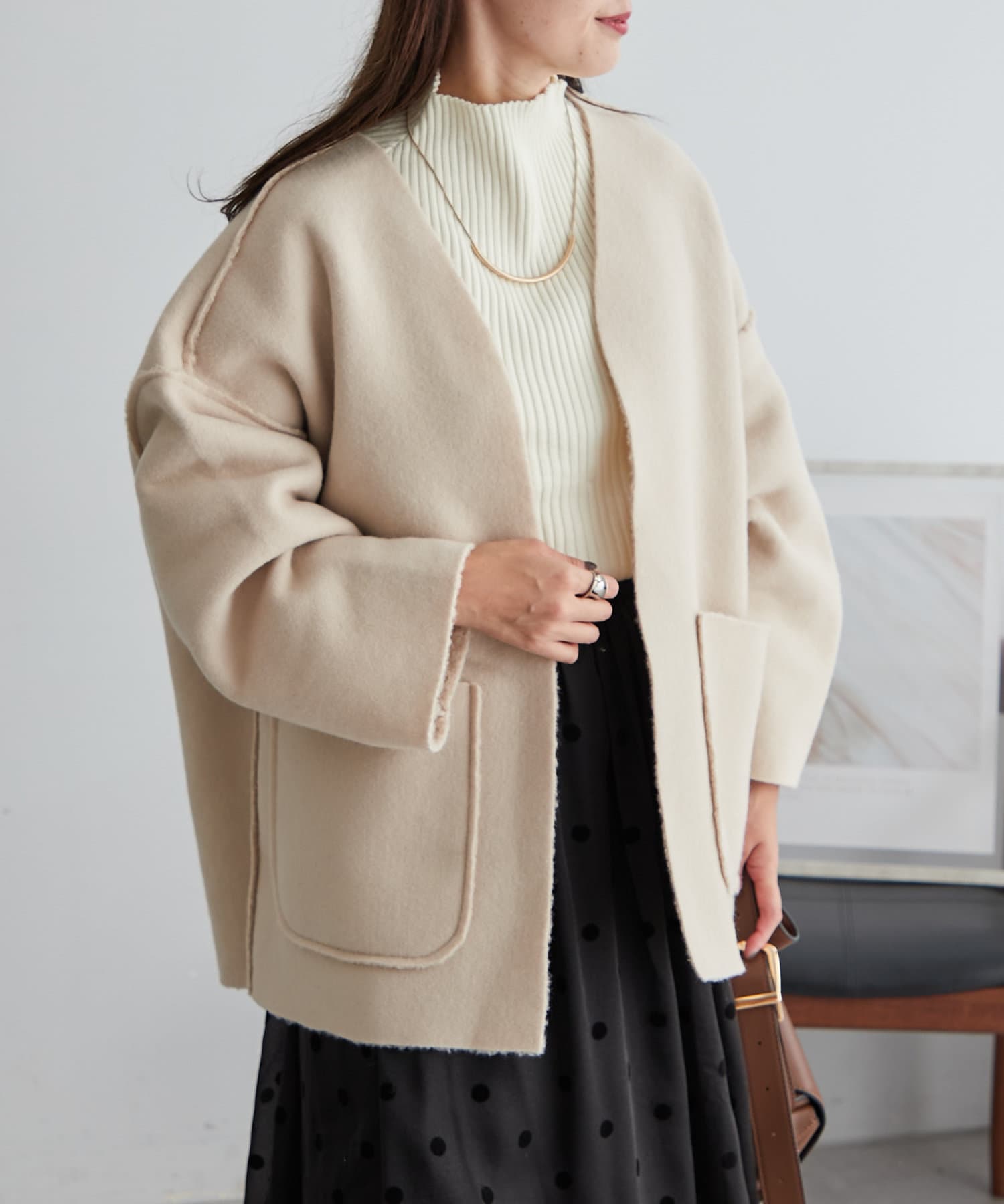 ・ボタンやジップのないふわっと羽織れるトッパータイプで軽い着心地。
