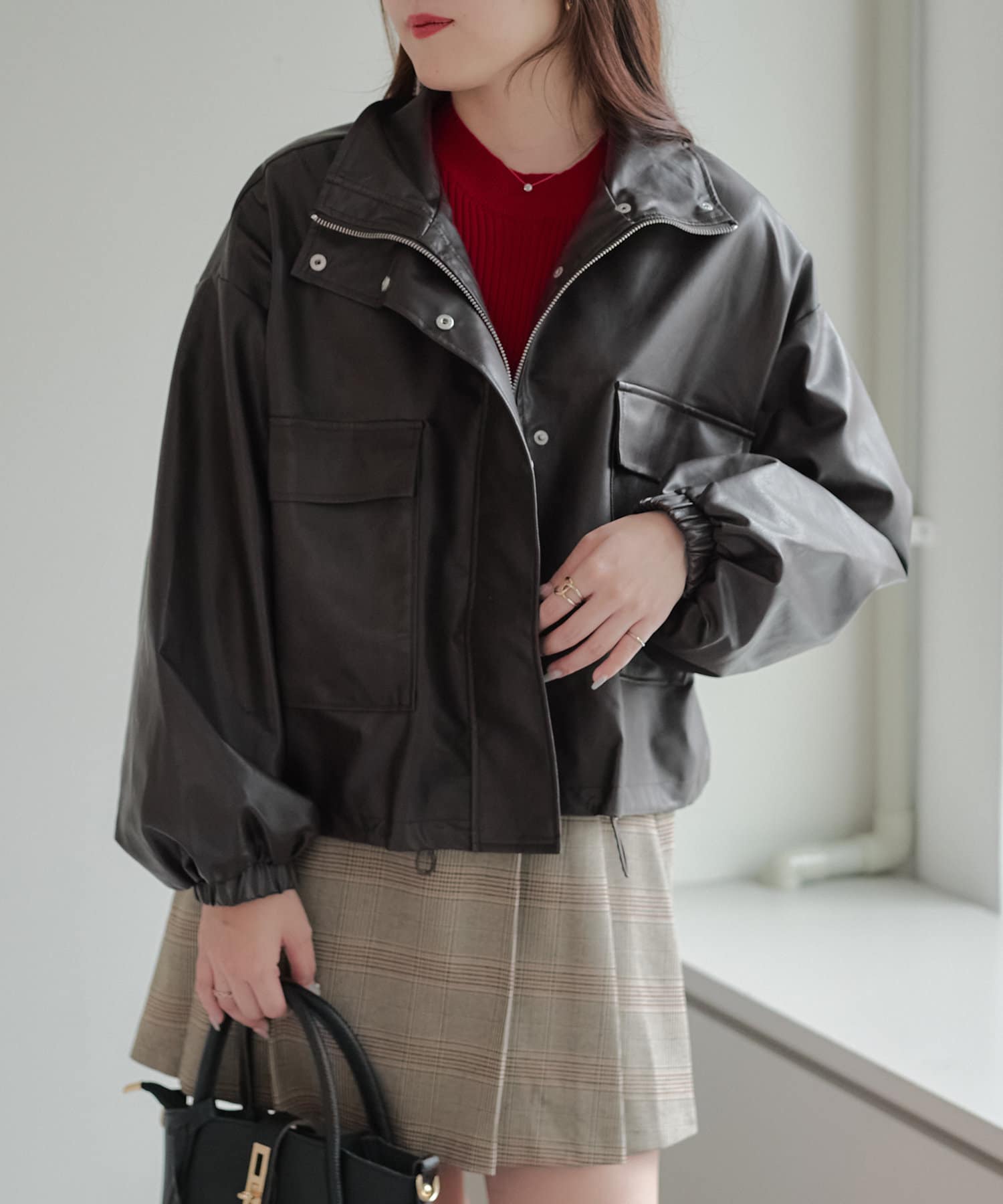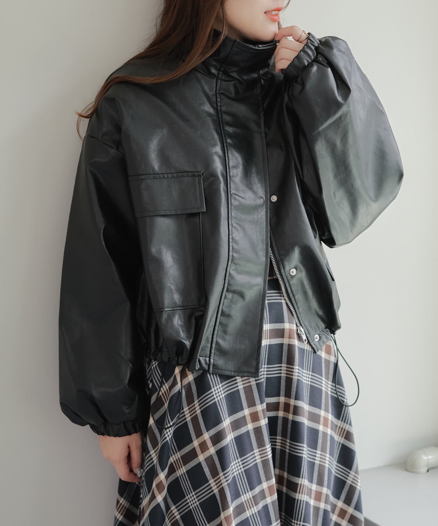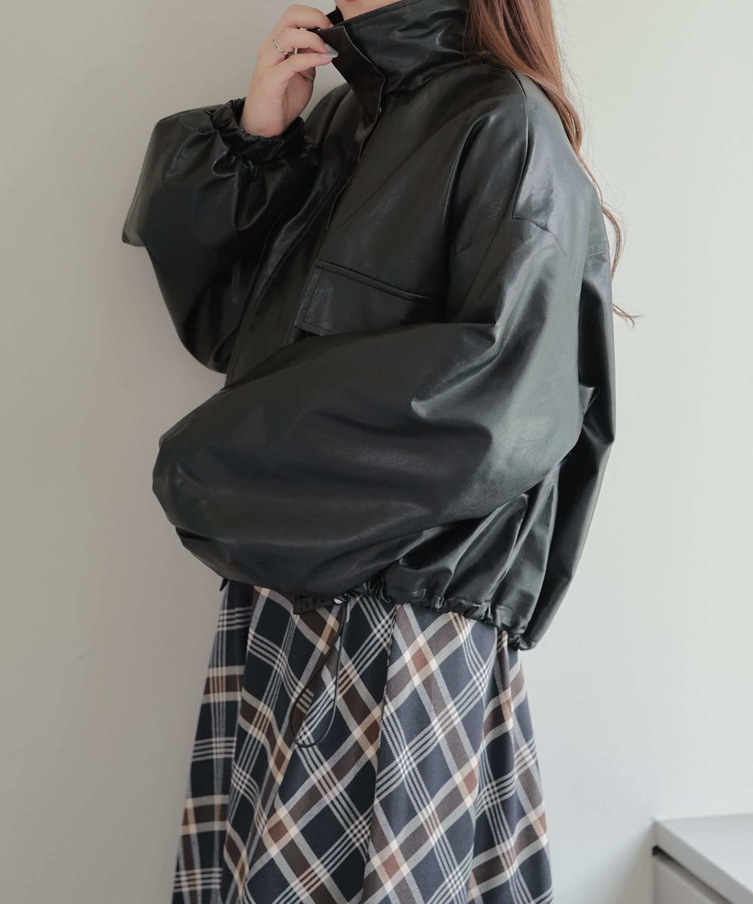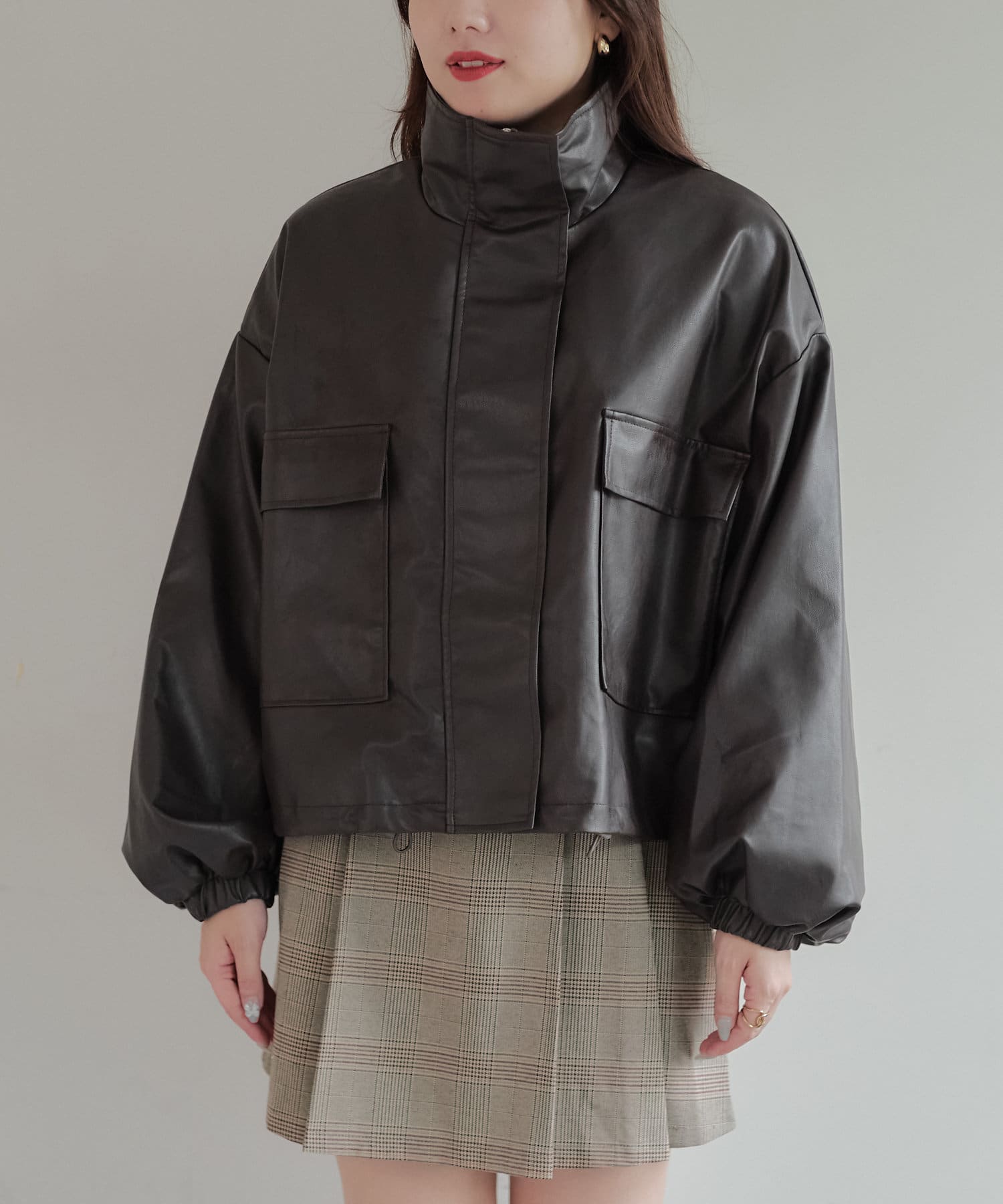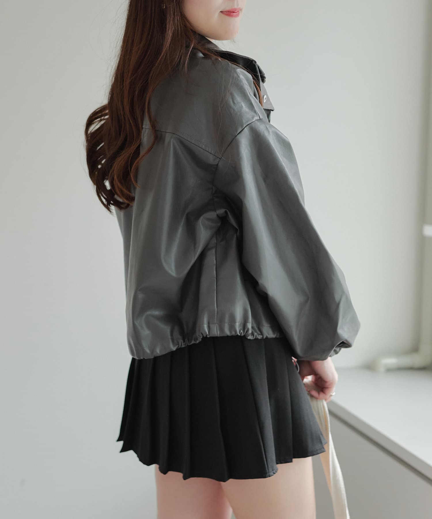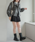 合皮ショートブルゾン