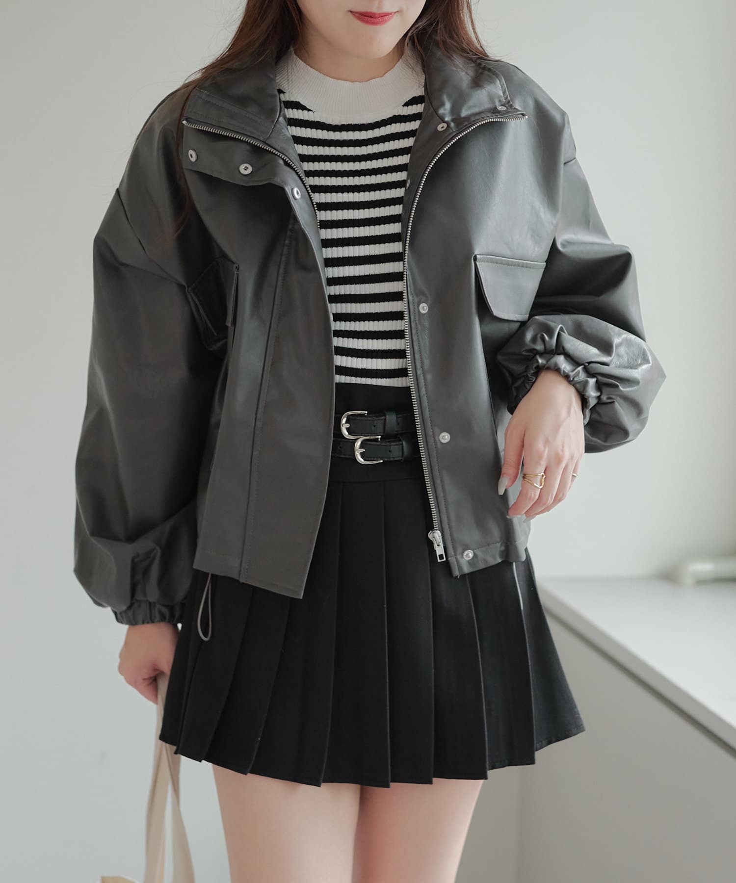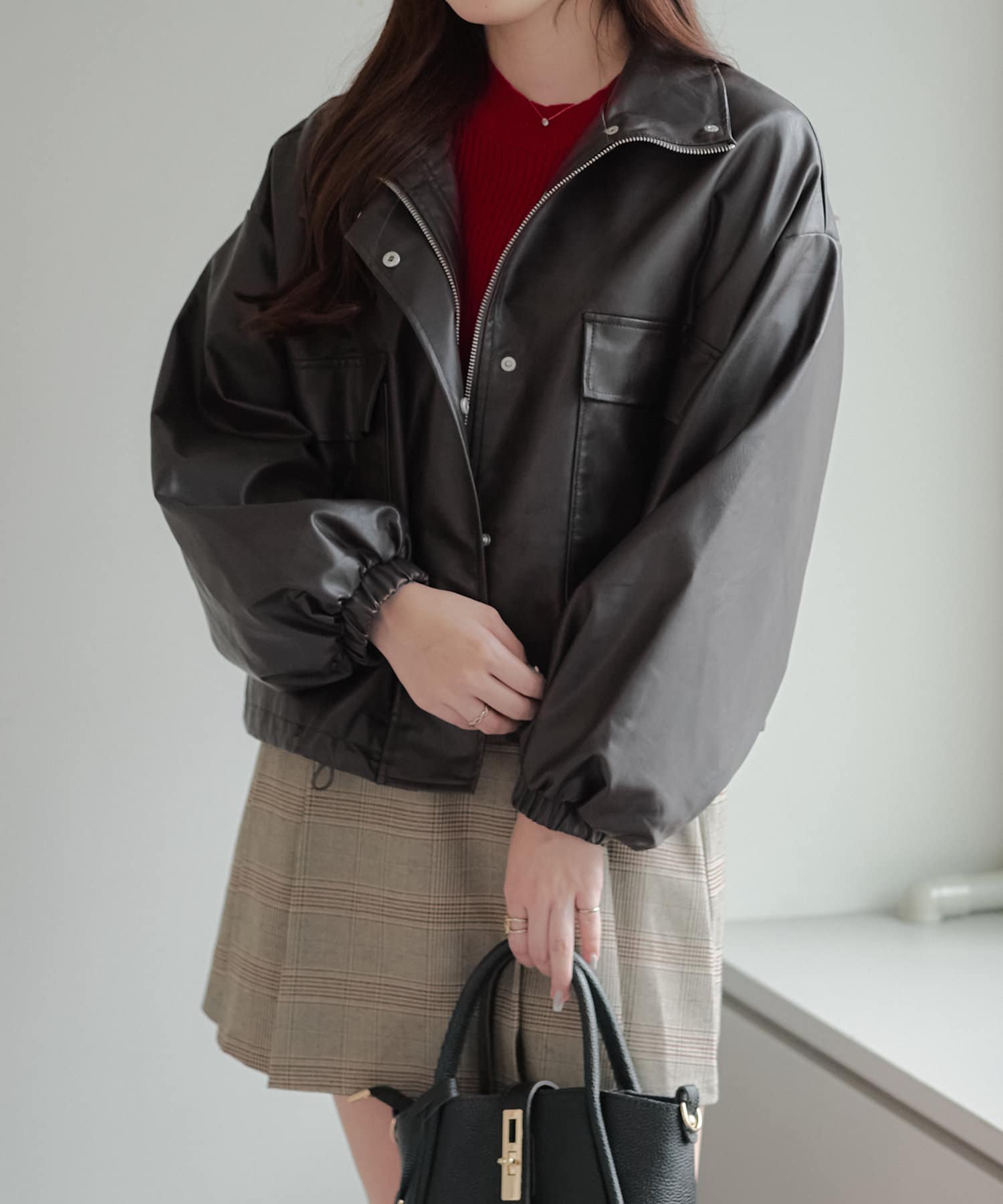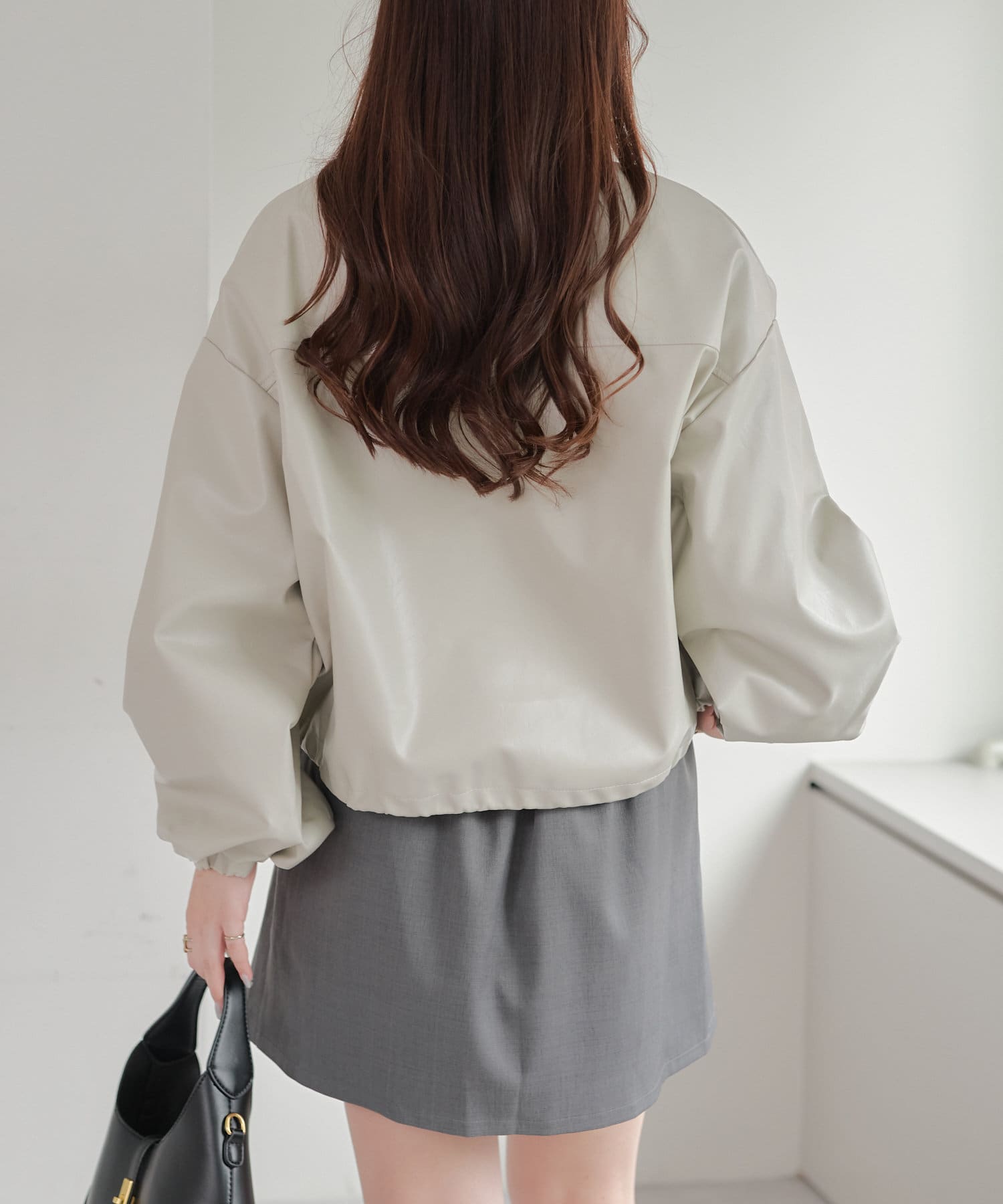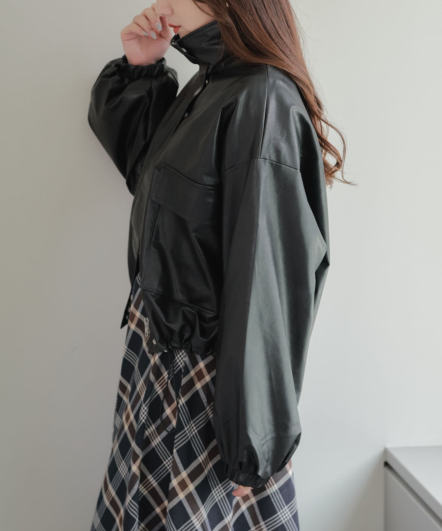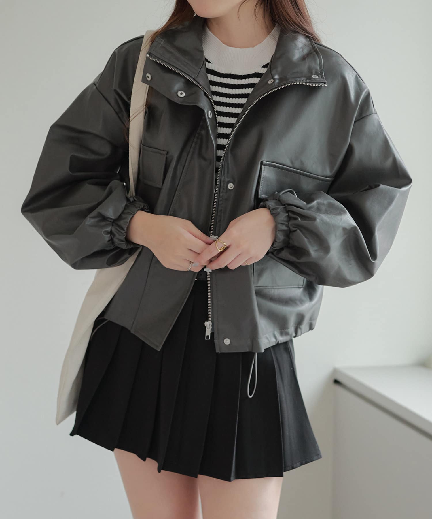 合皮ショートブルゾン