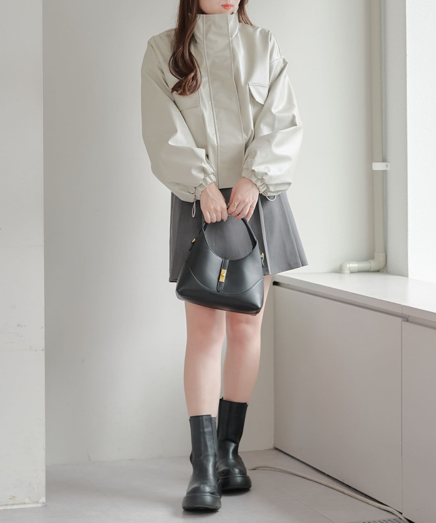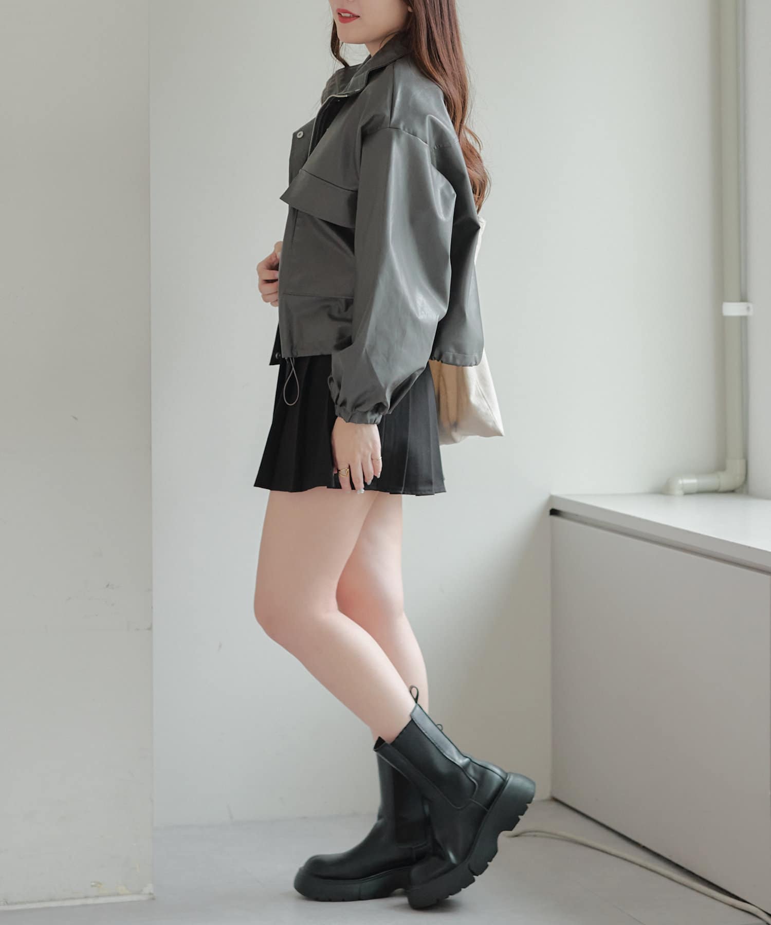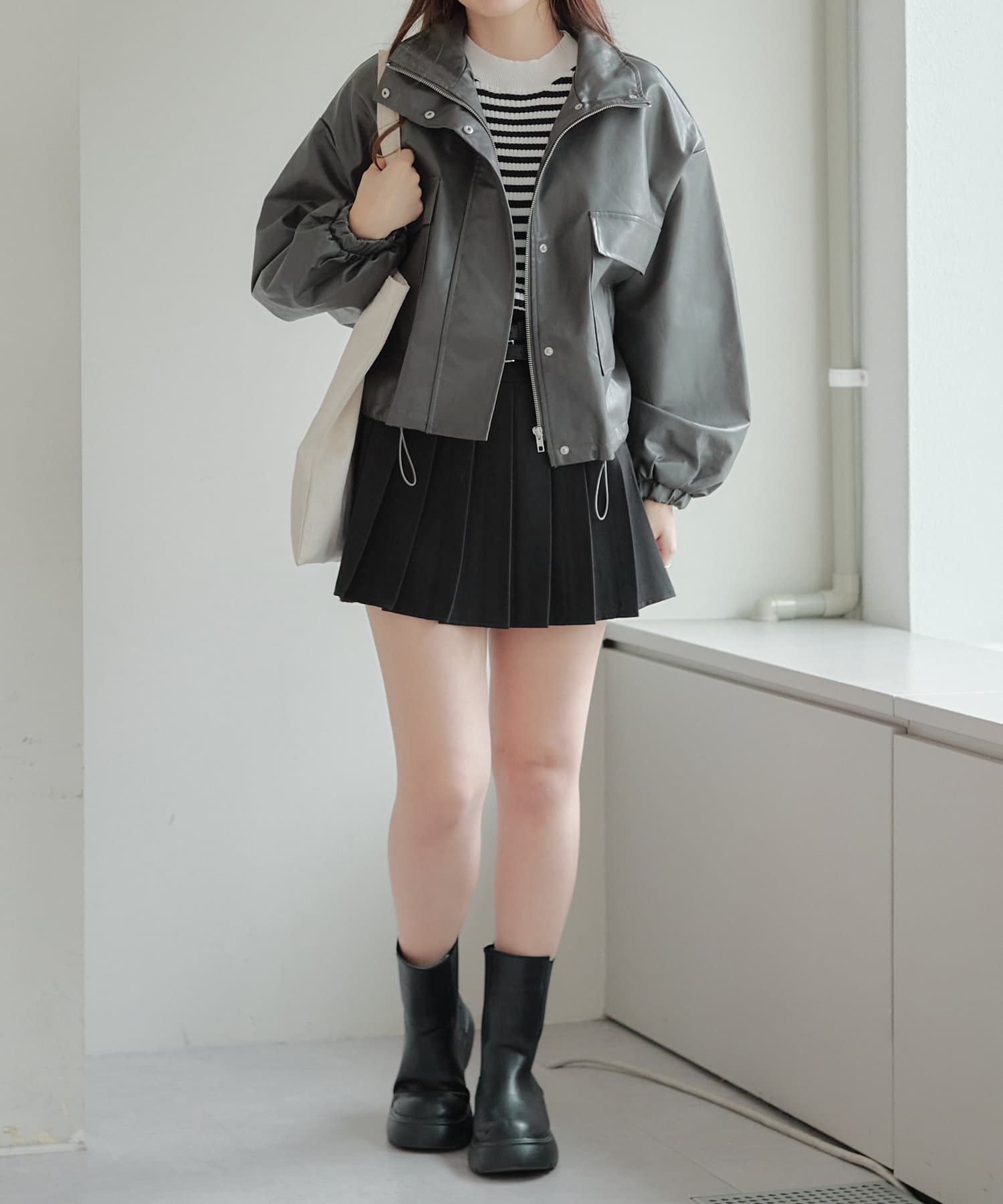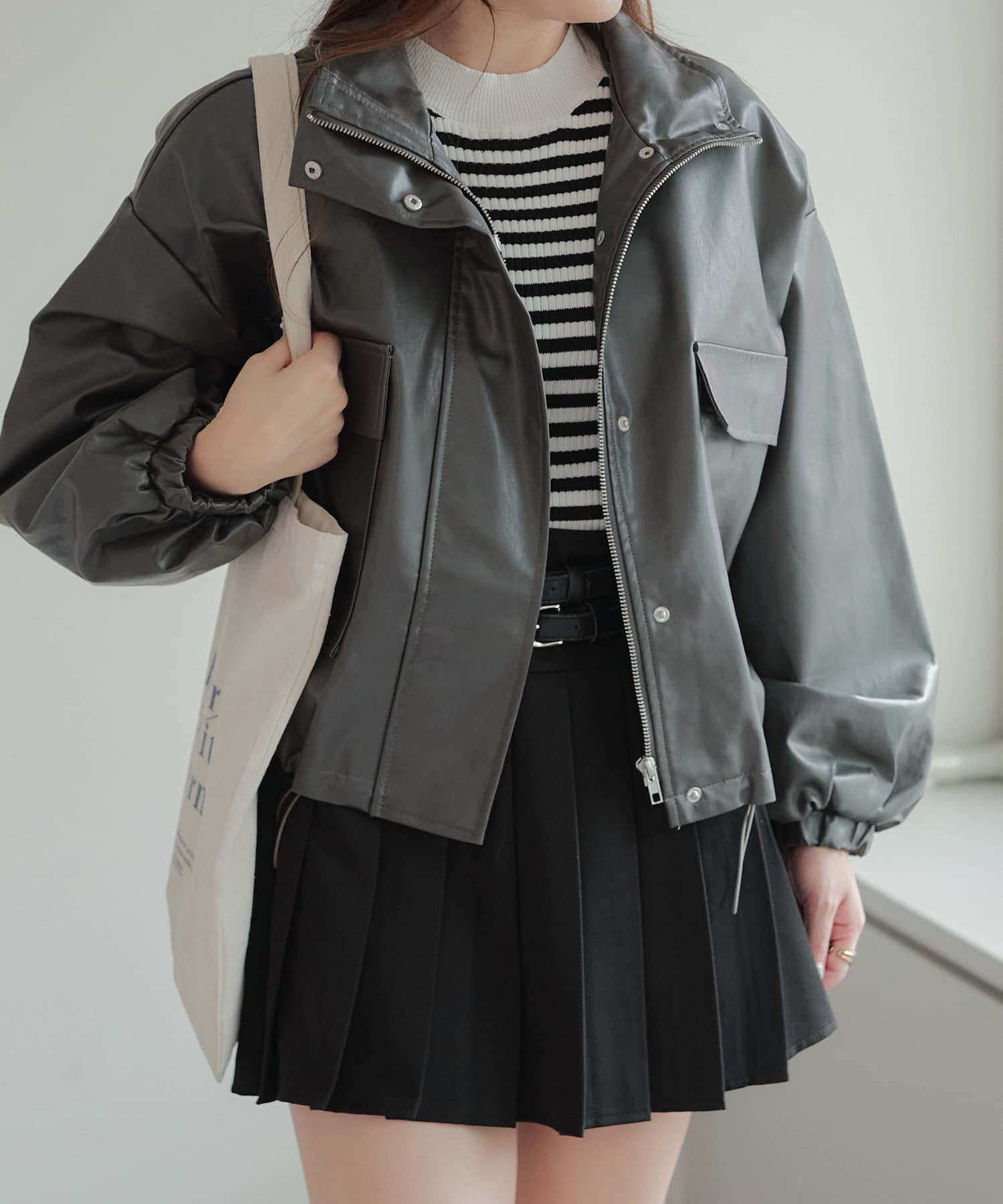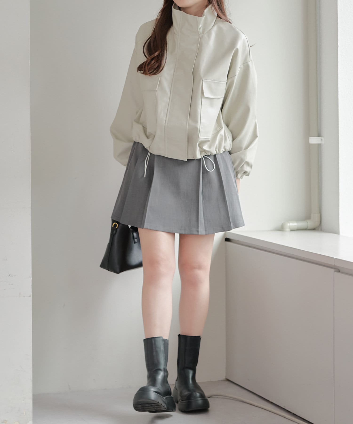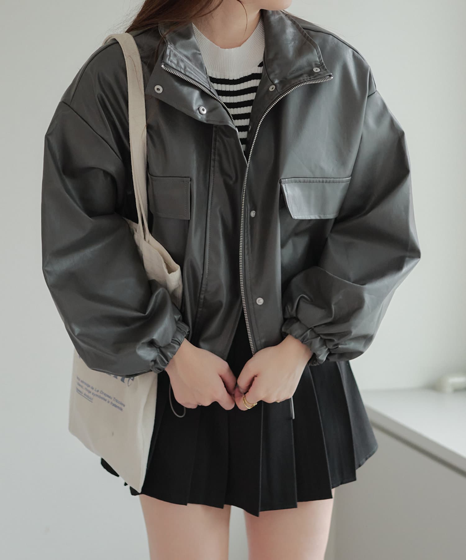 合皮ショートブルゾン