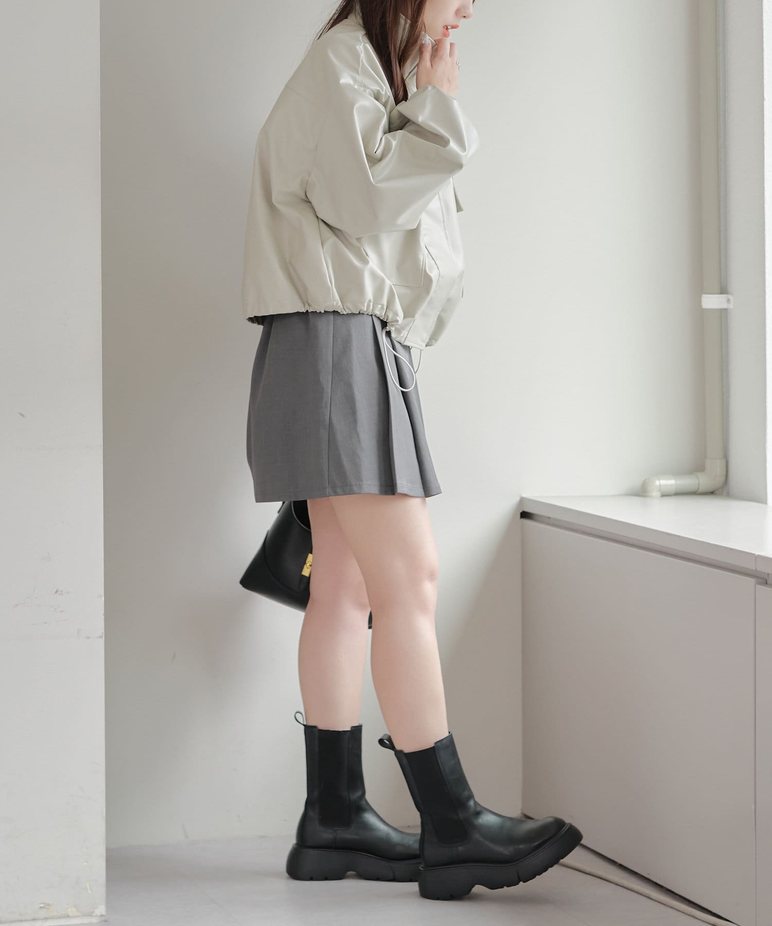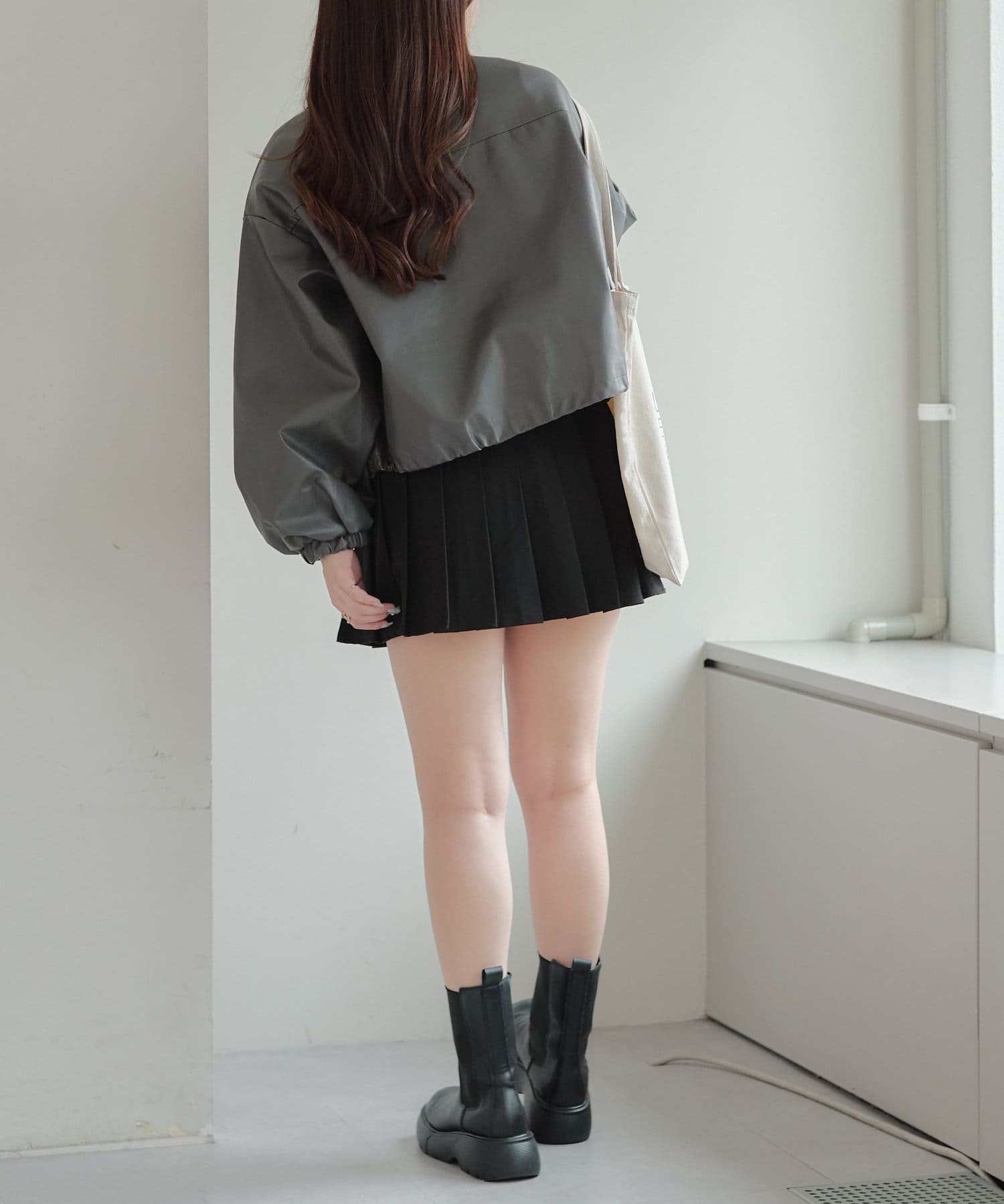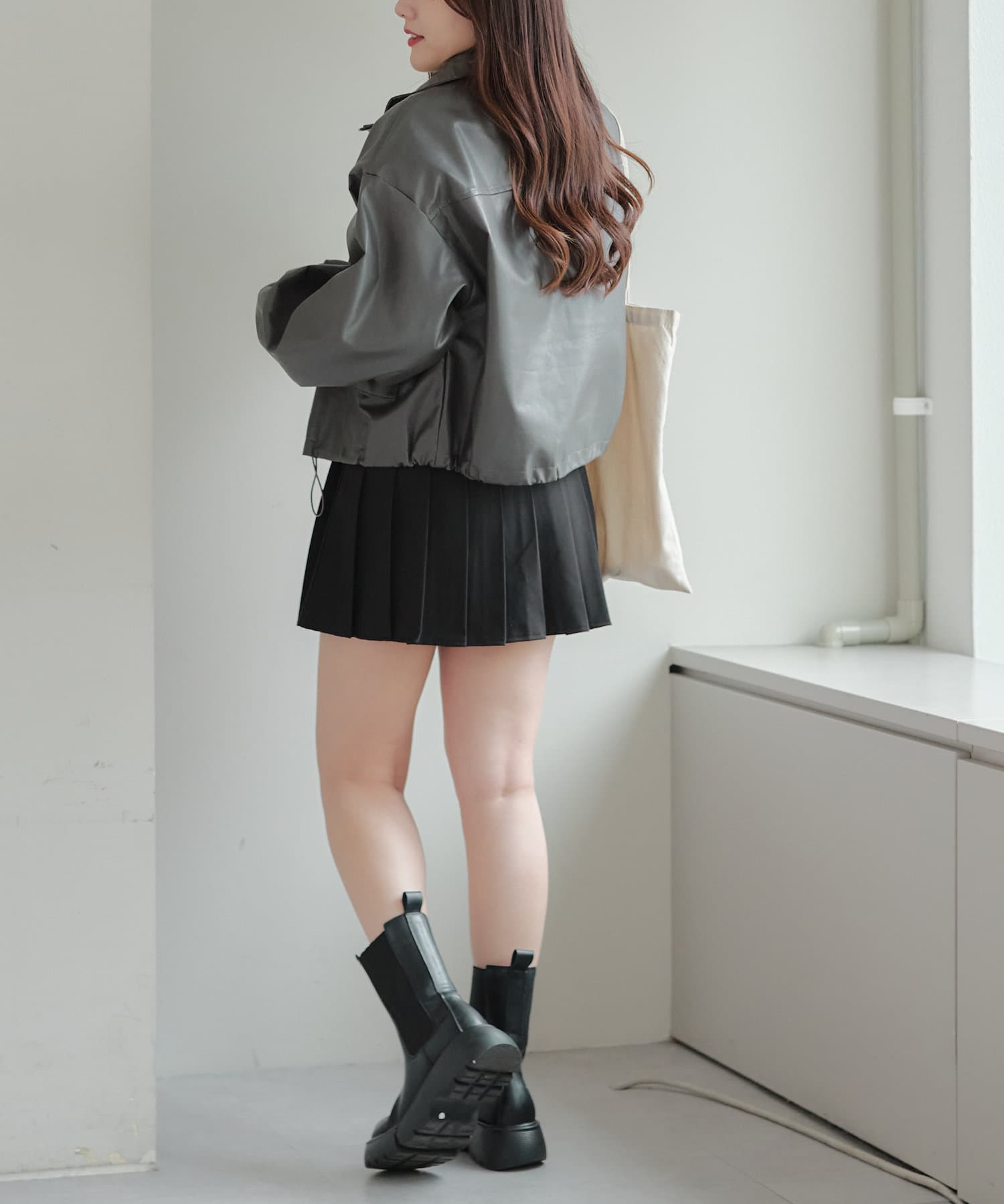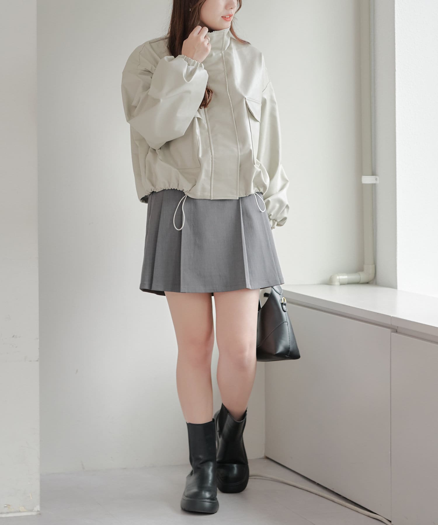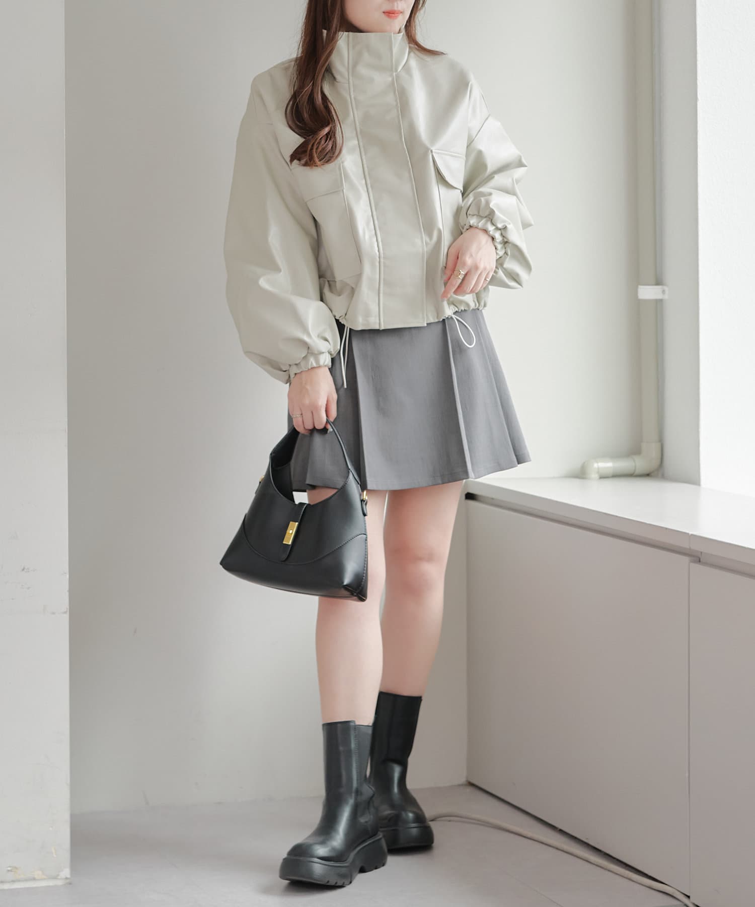 合皮ショートブルゾン