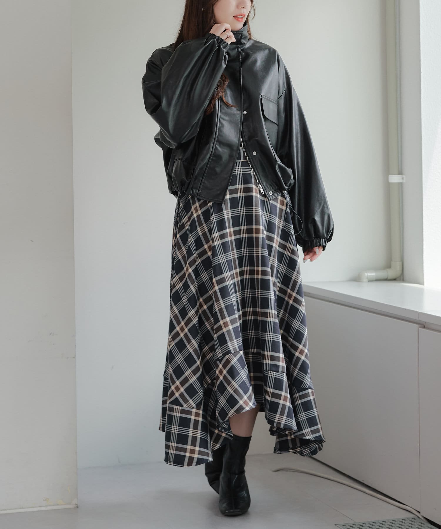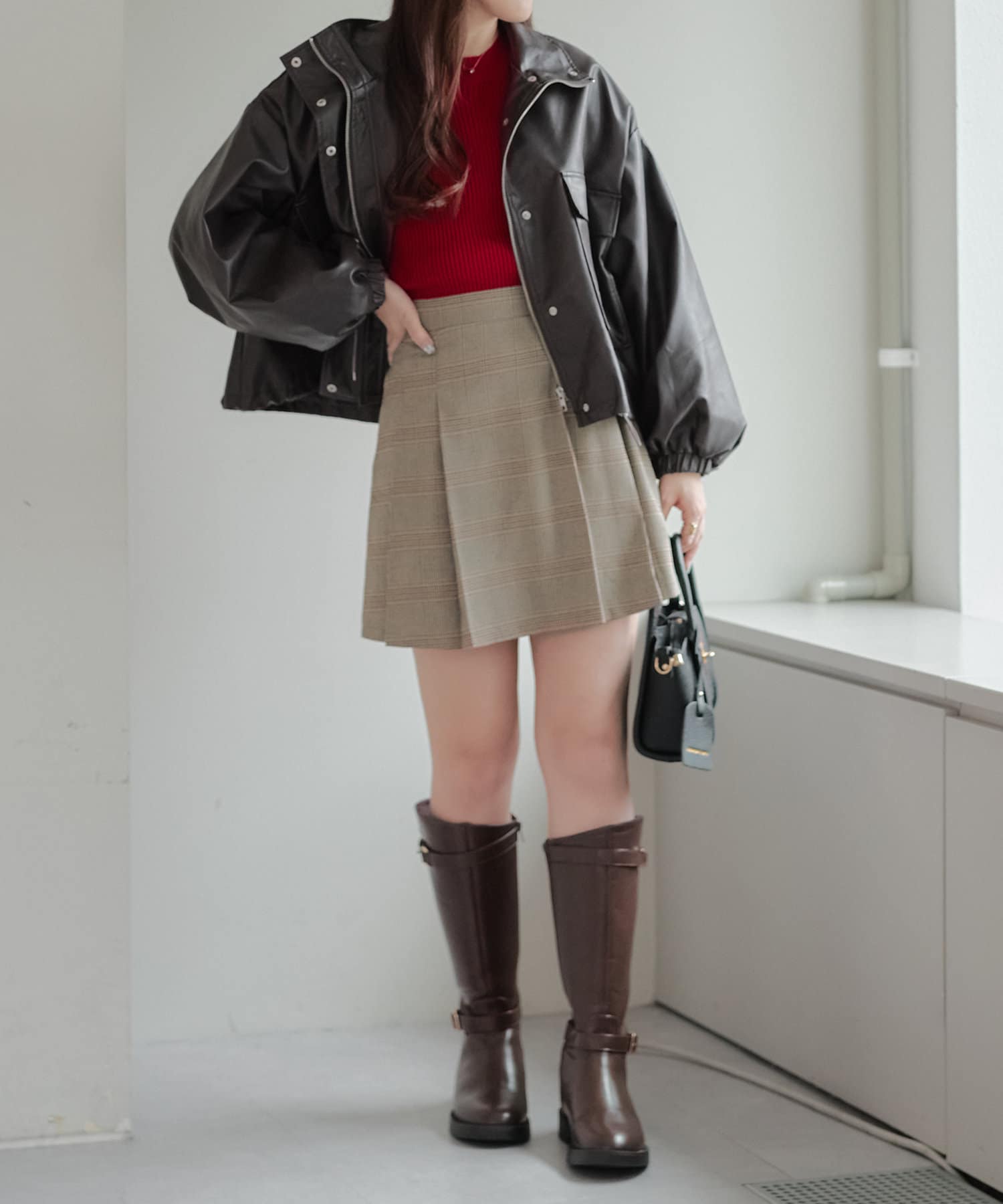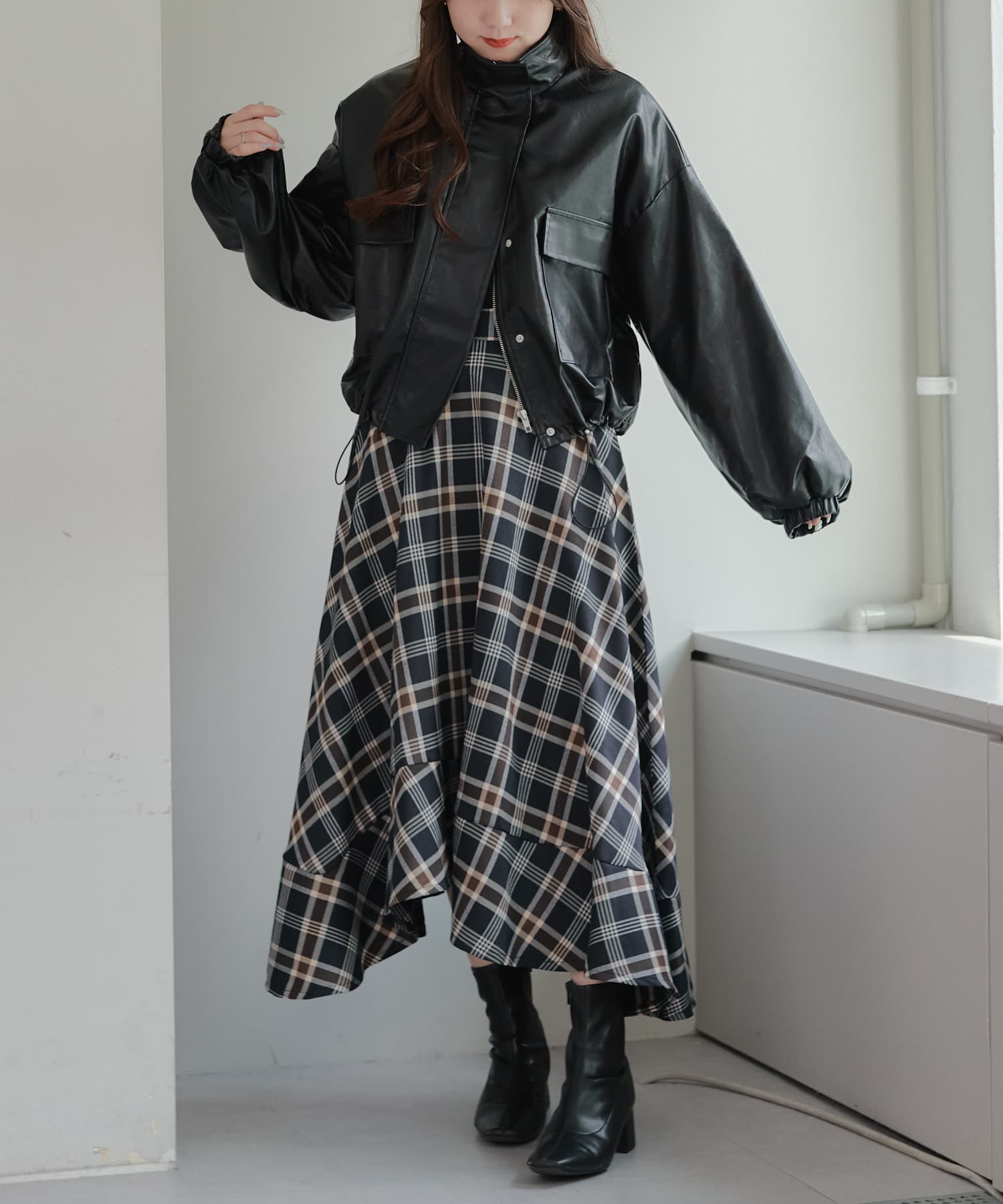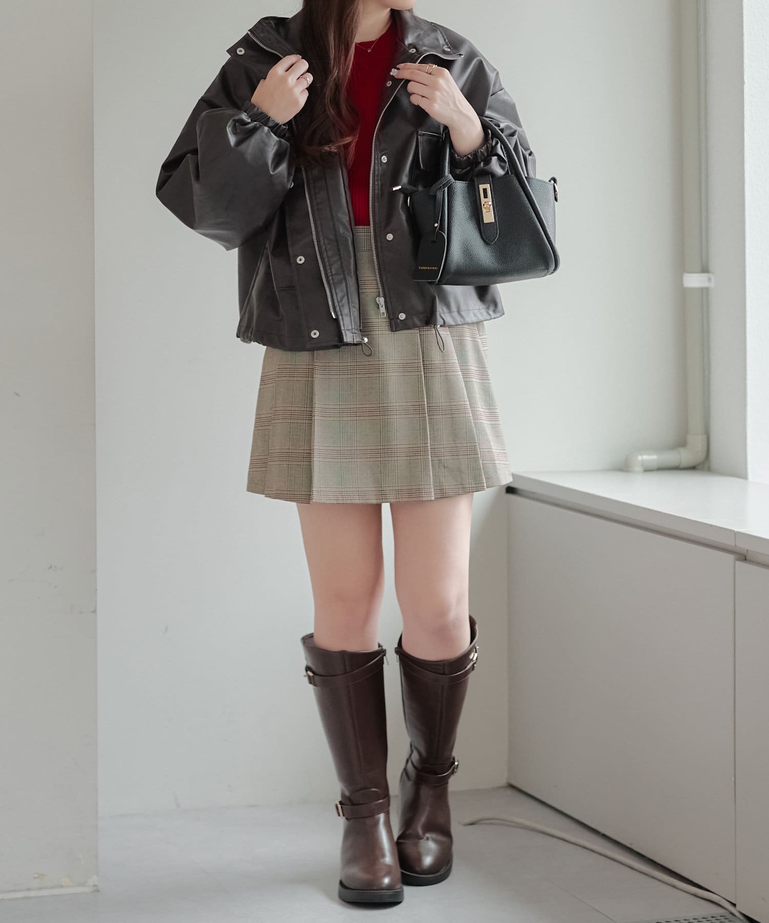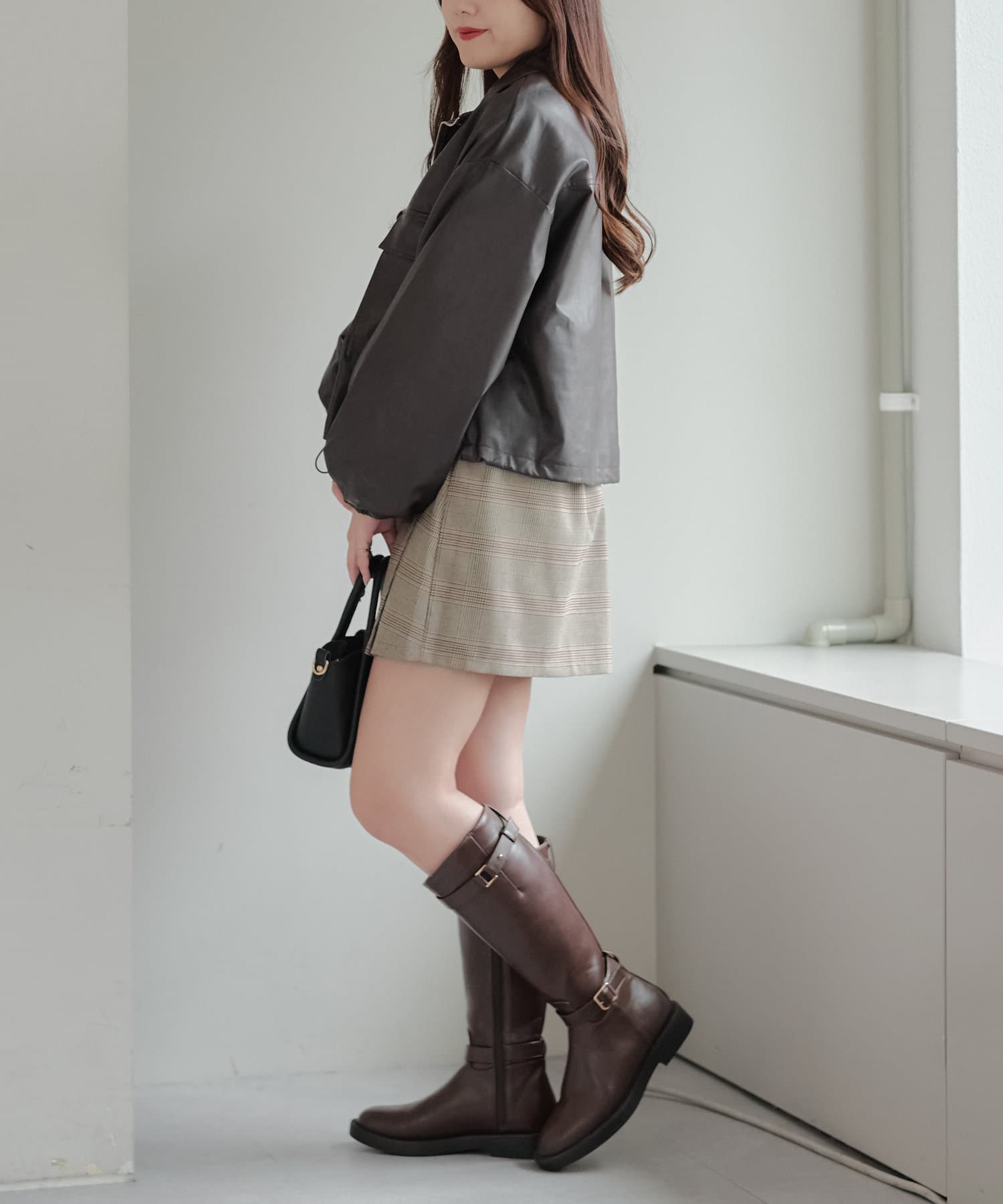 合皮ショートブルゾン