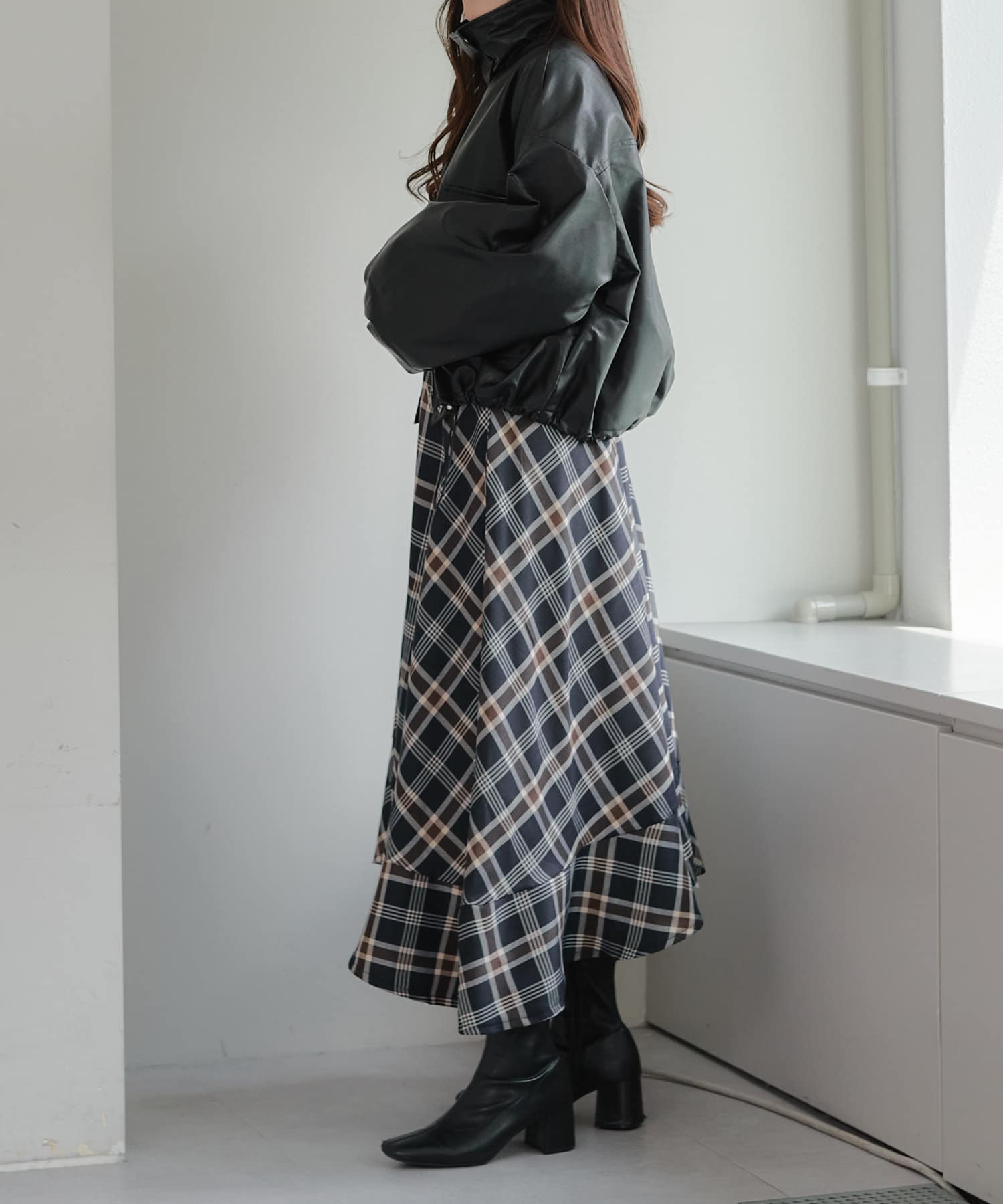 ・パンツスタイルでもスカートやワンピースでも、羽織るだけでバランスが取れ、スタイルアップした印象にまとまります。