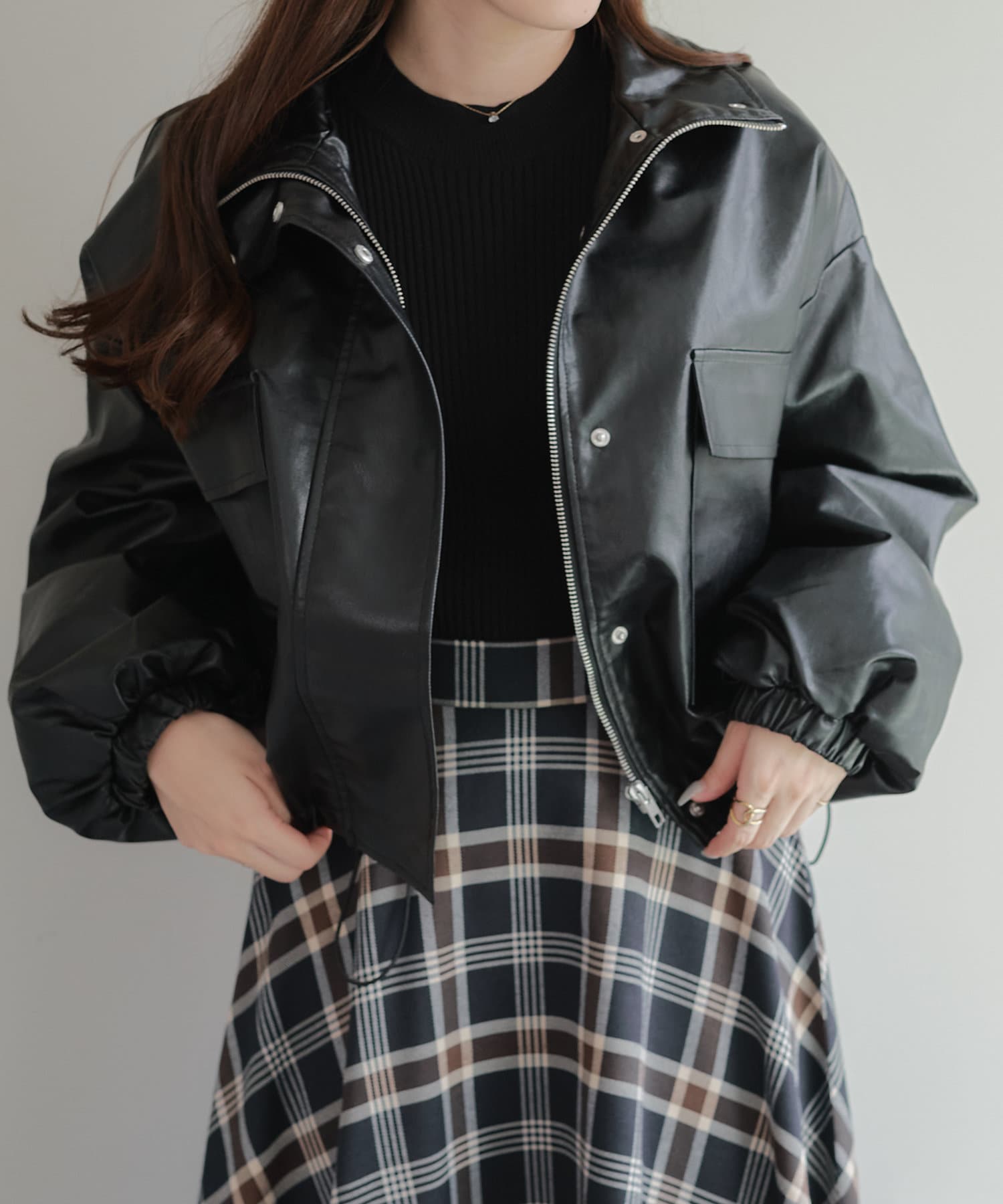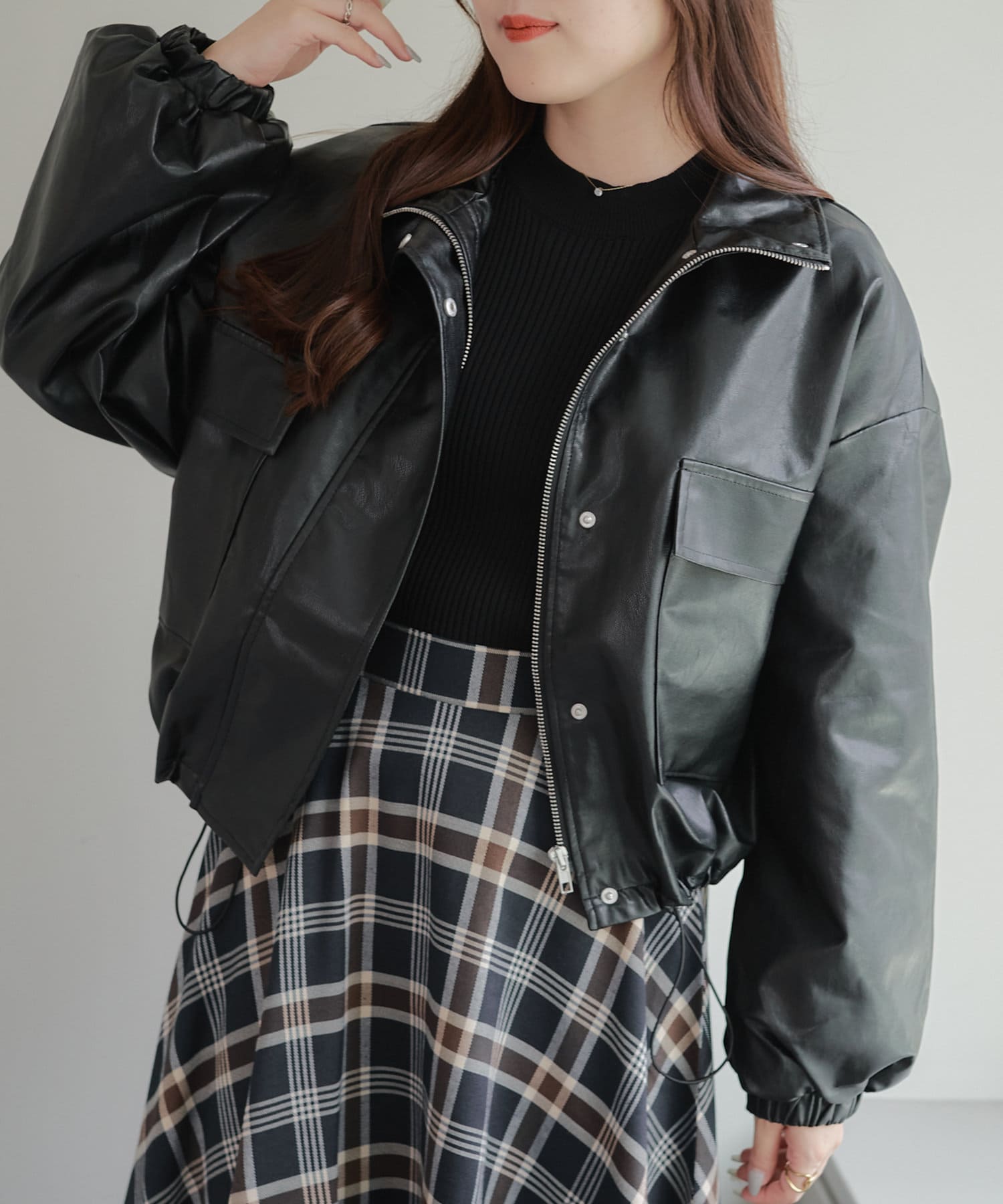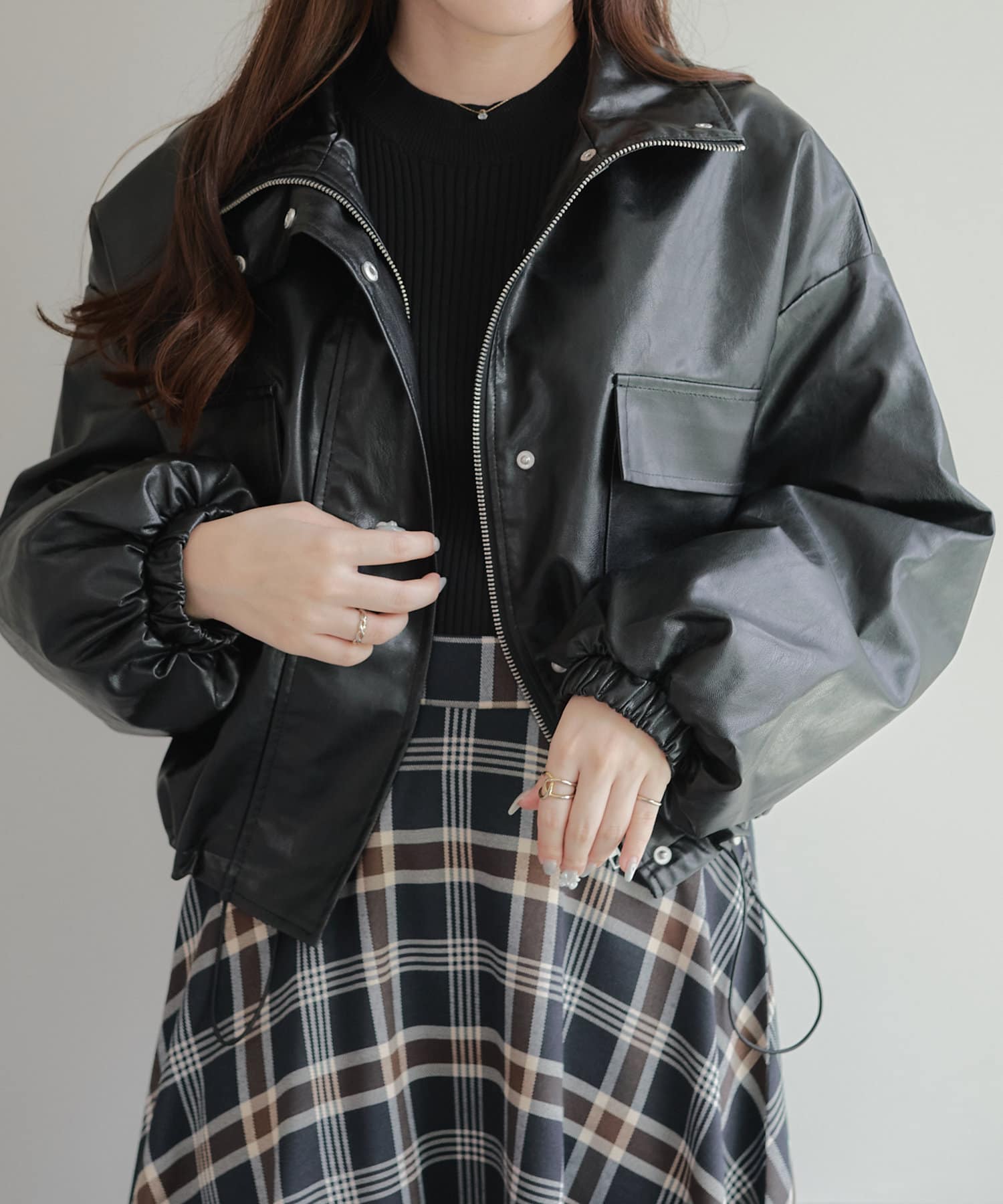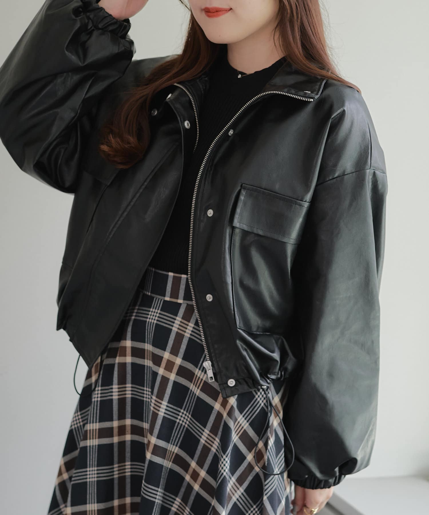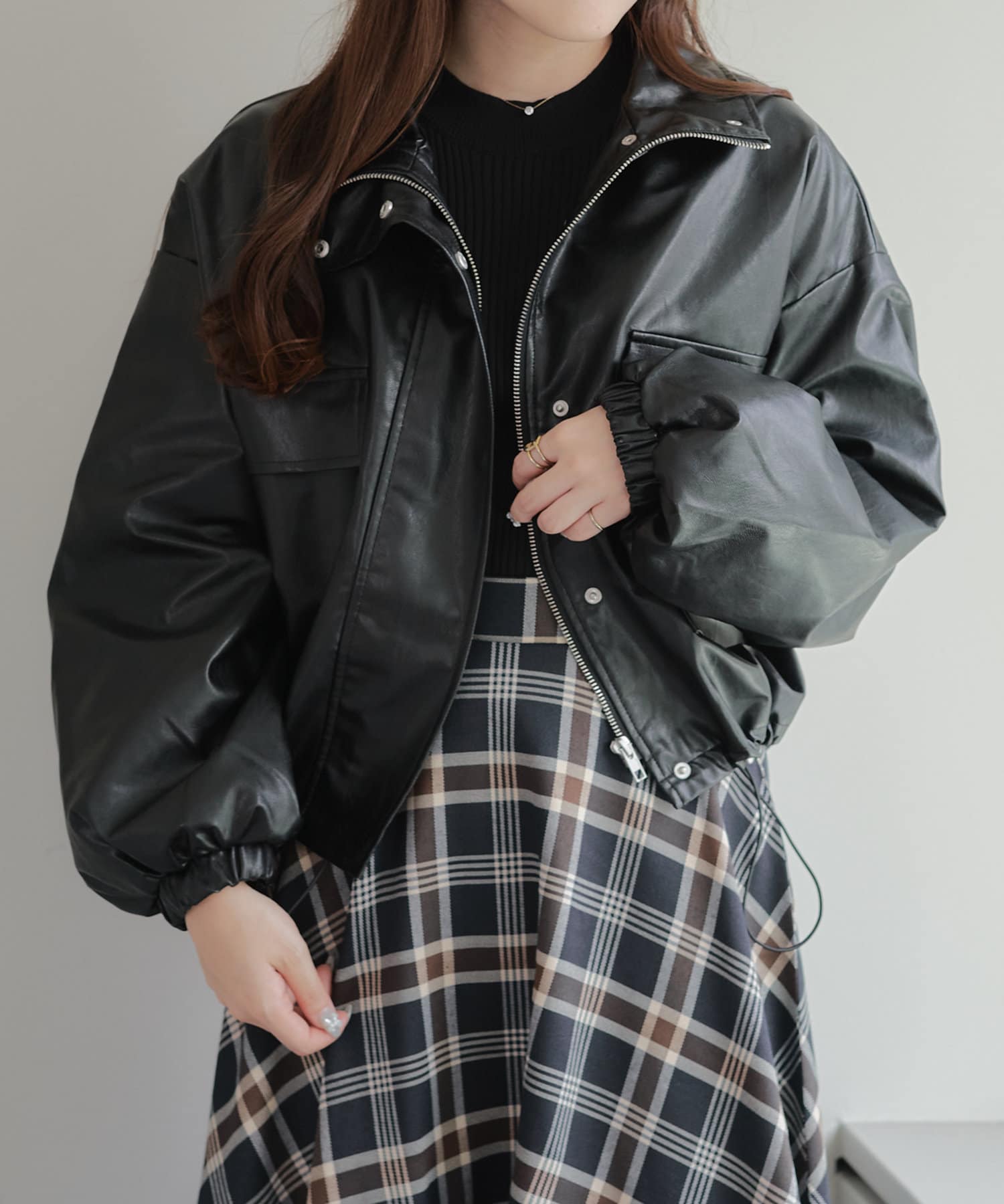古着ライクなトレンド感あるショート丈の合皮レザーブルゾン