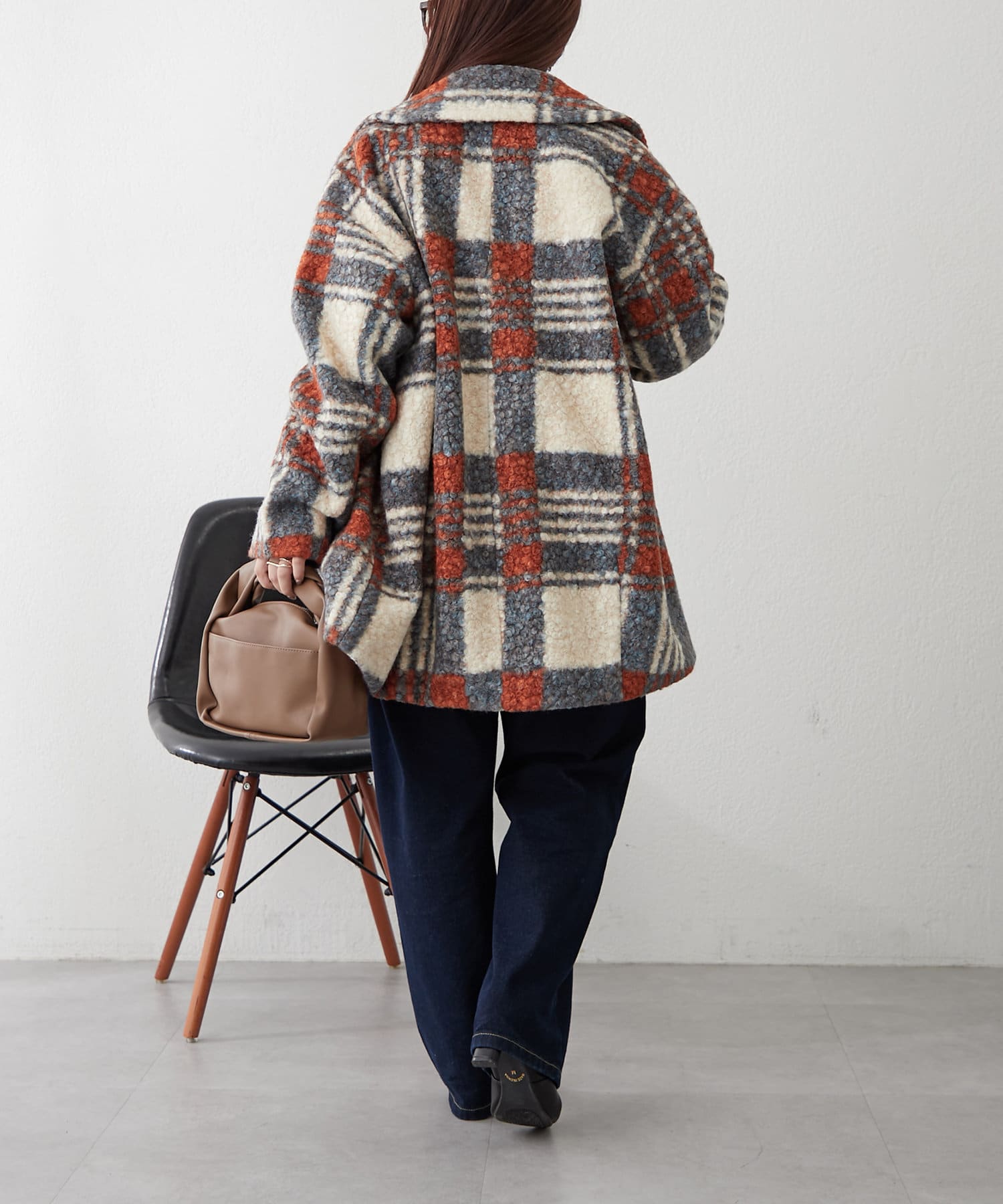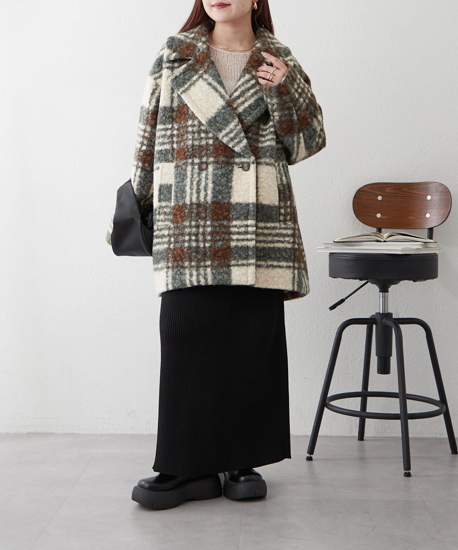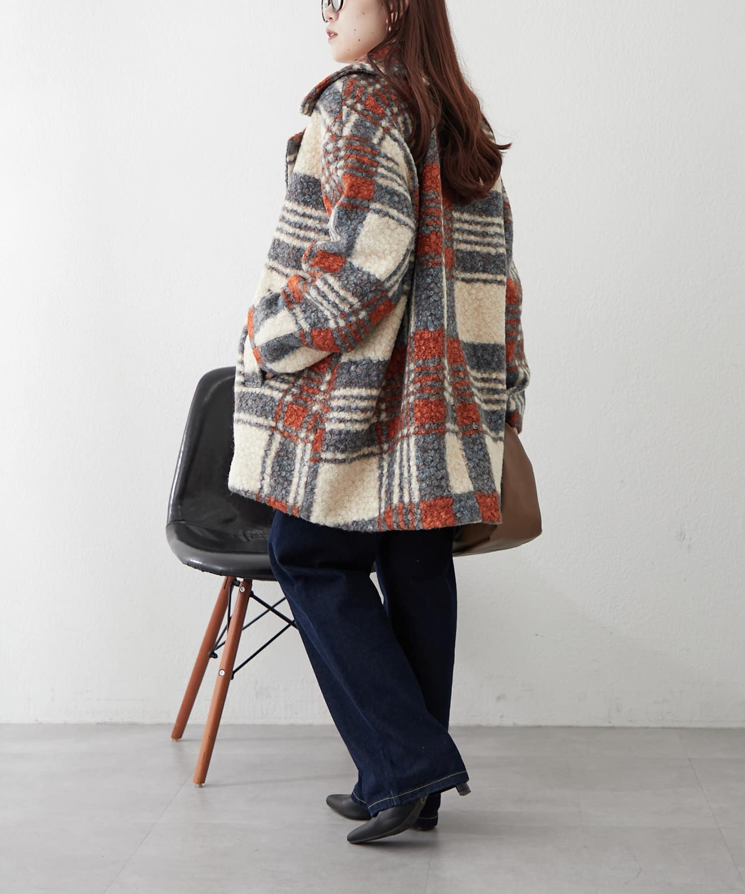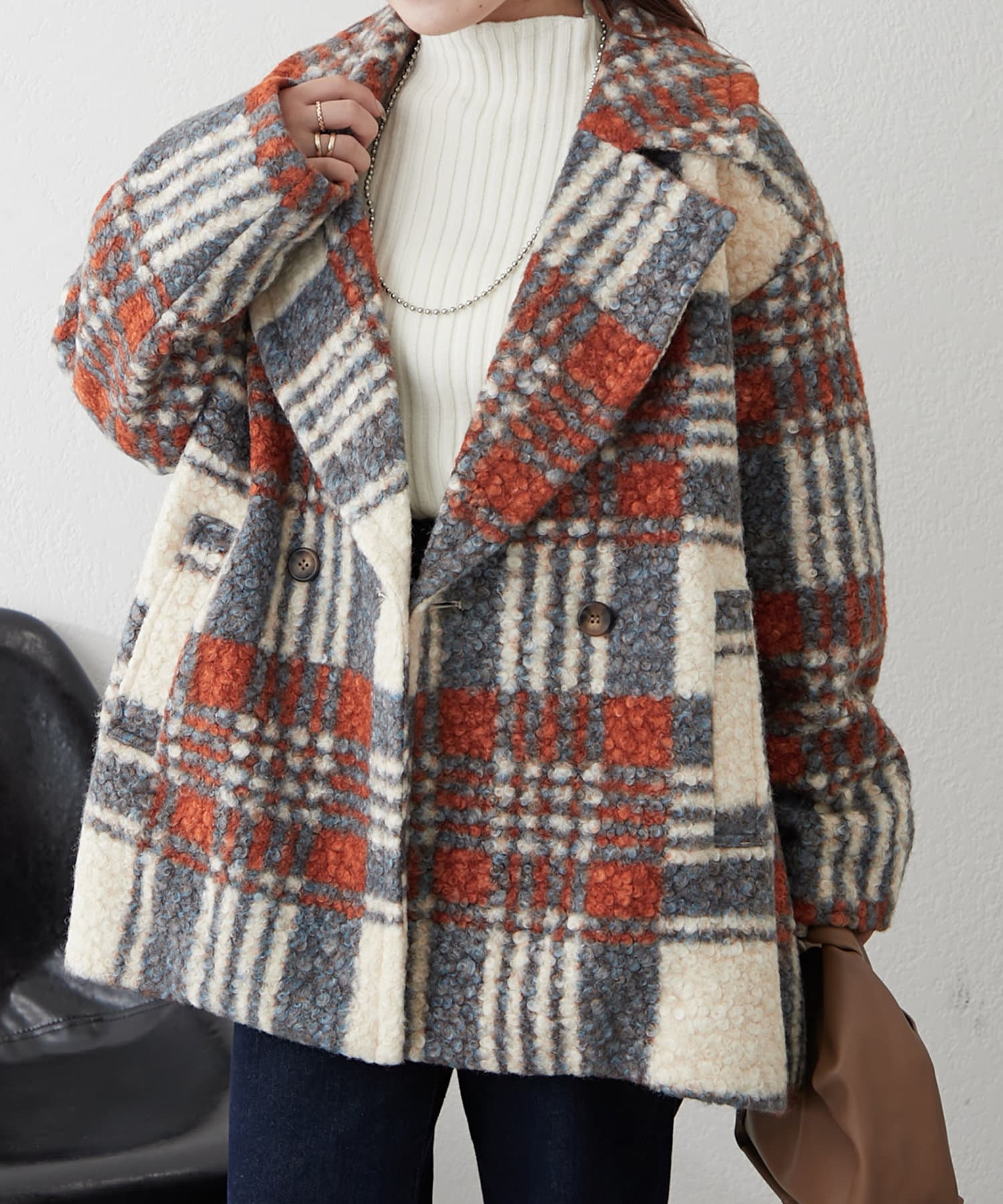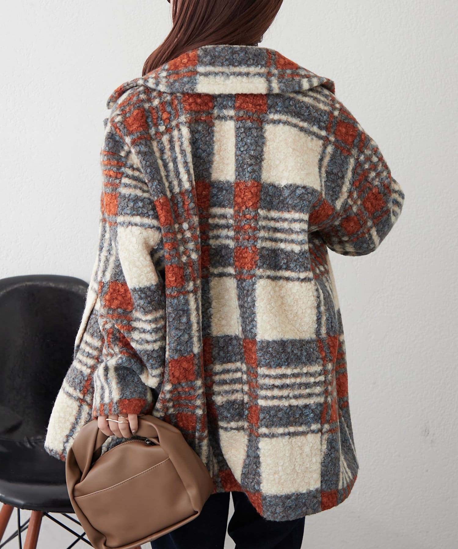 ・ブークレ生地と大きめなチェック柄がコーデの主役になるジャケット。