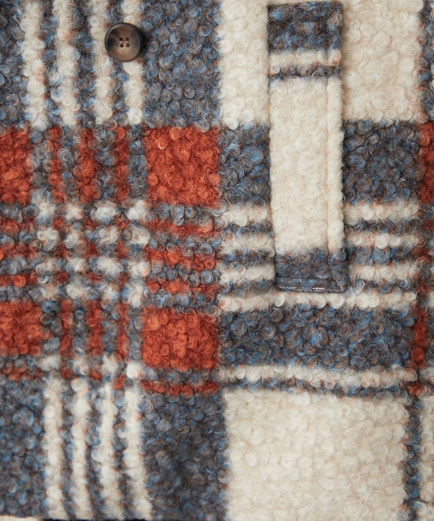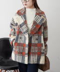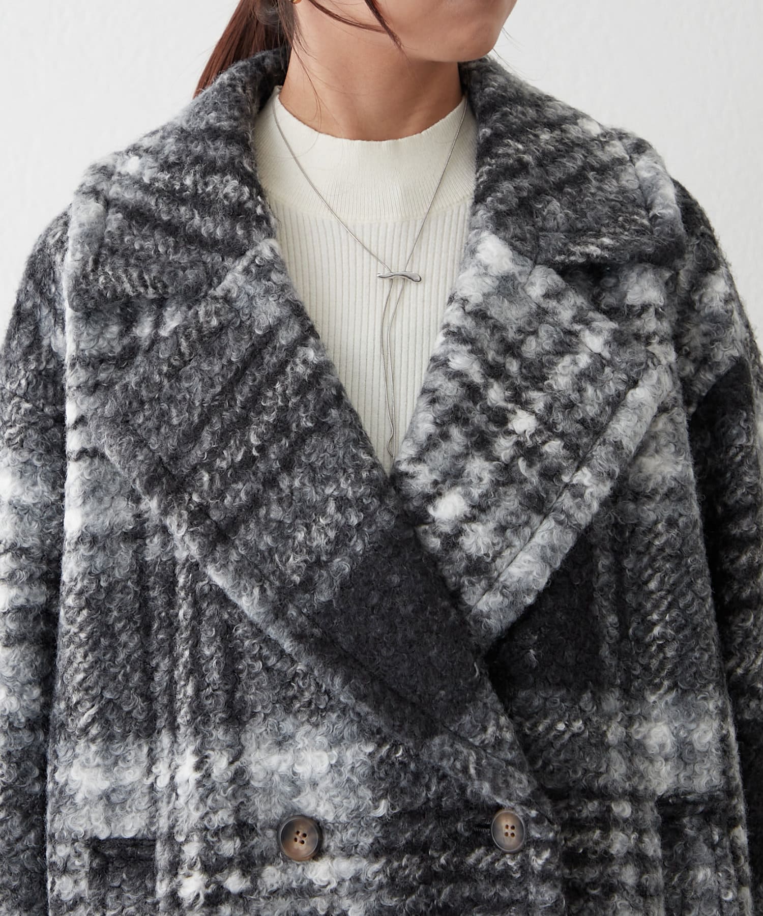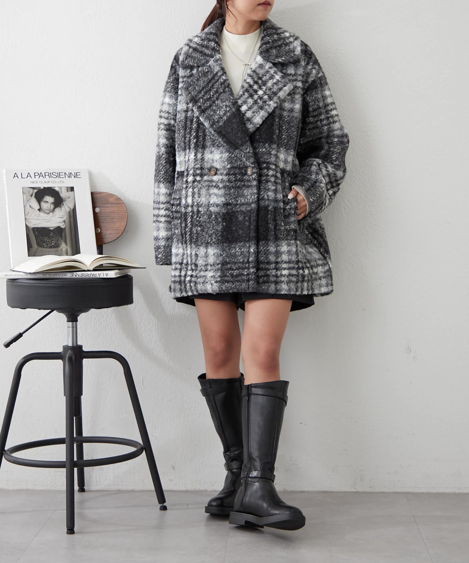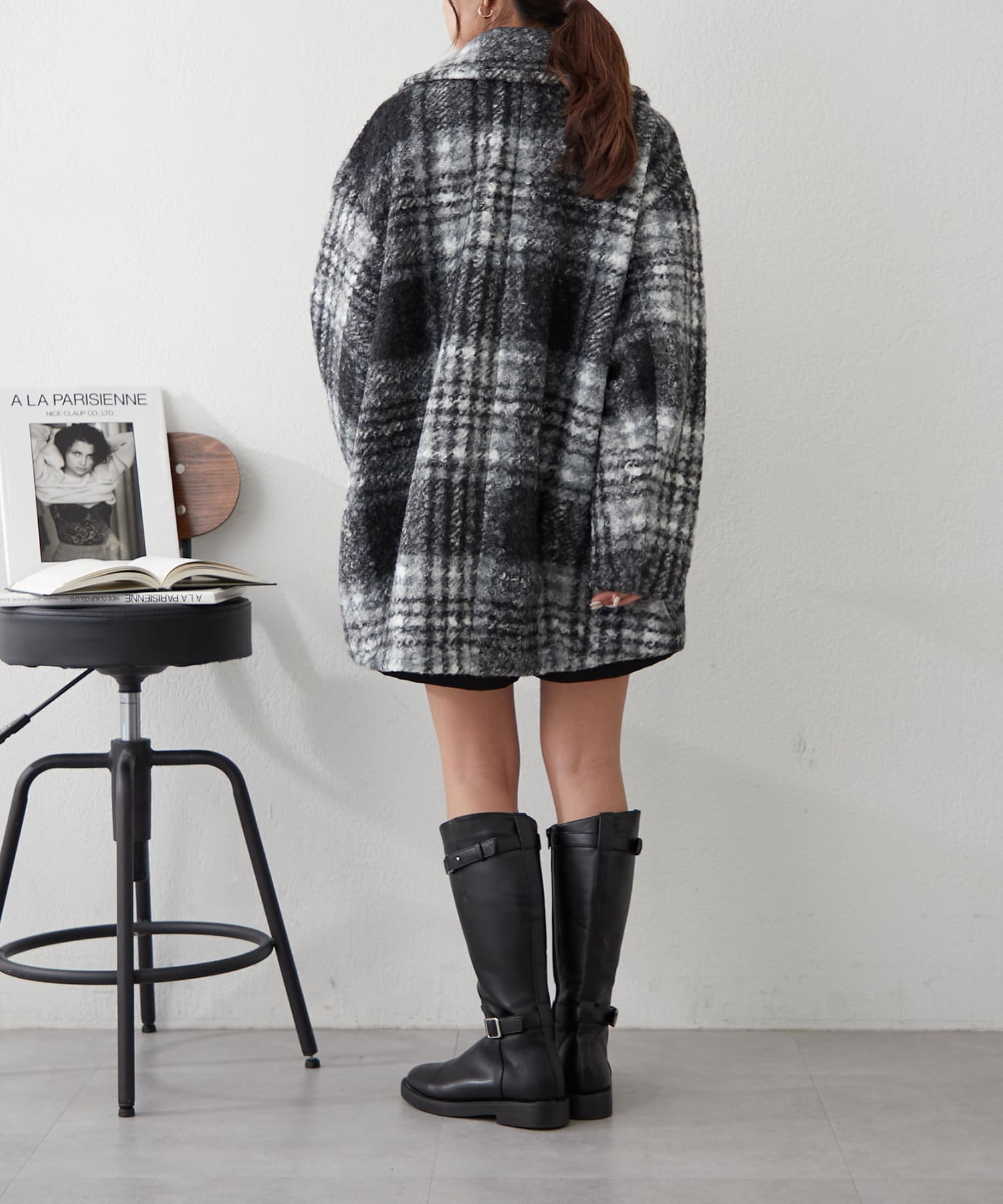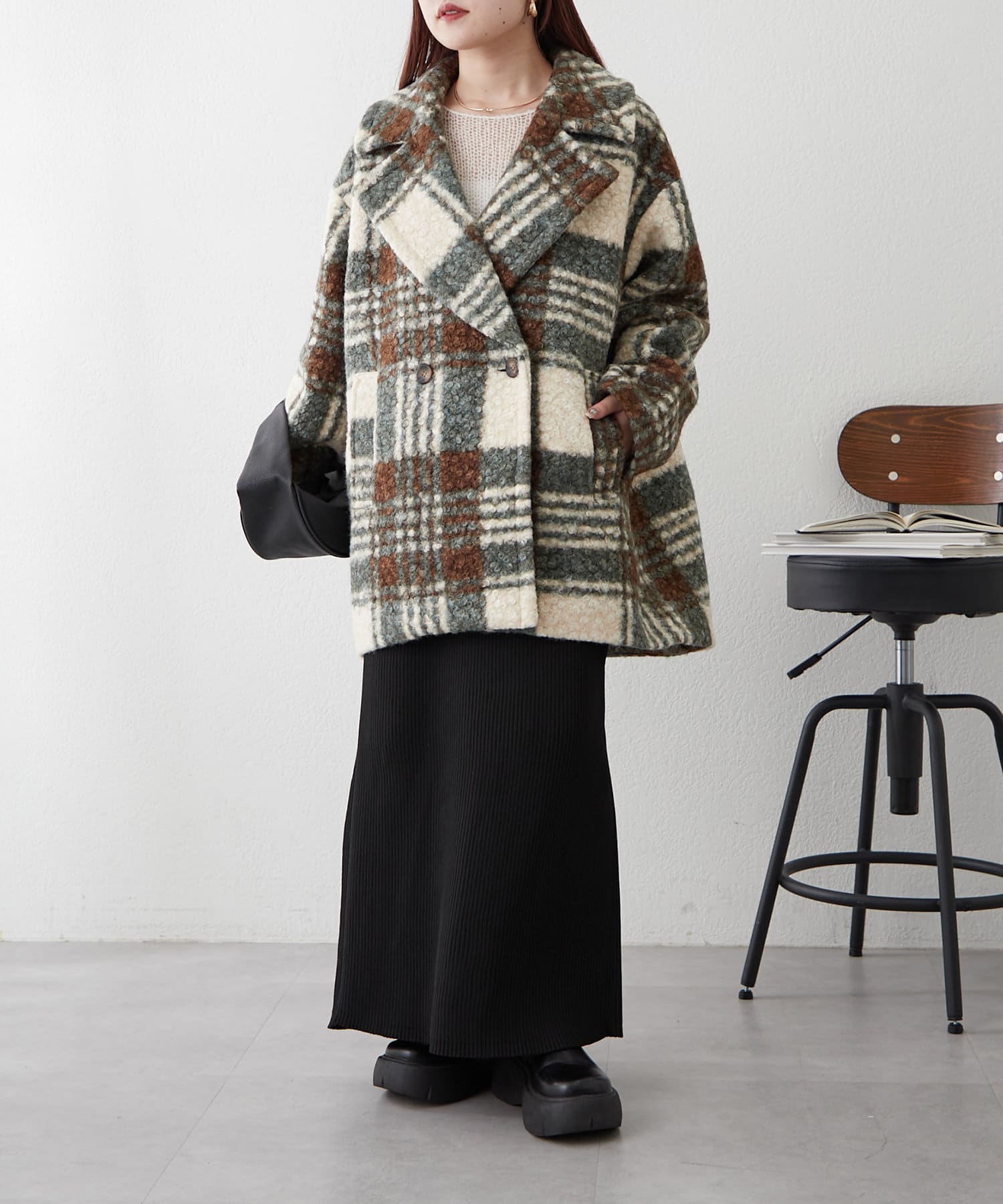 ・ブークレ生地と大きめなチェック柄がコーデの主役になるジャケット。