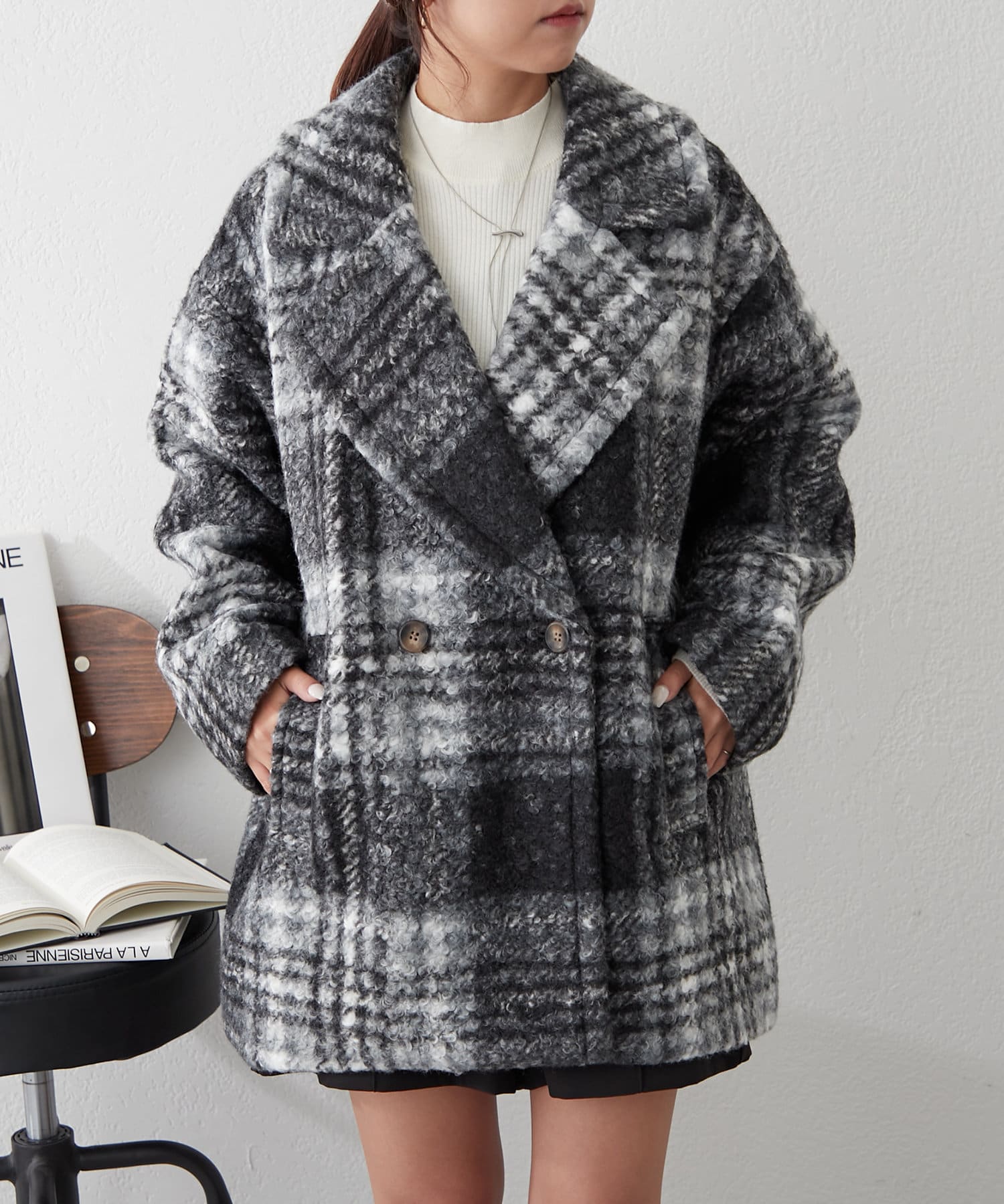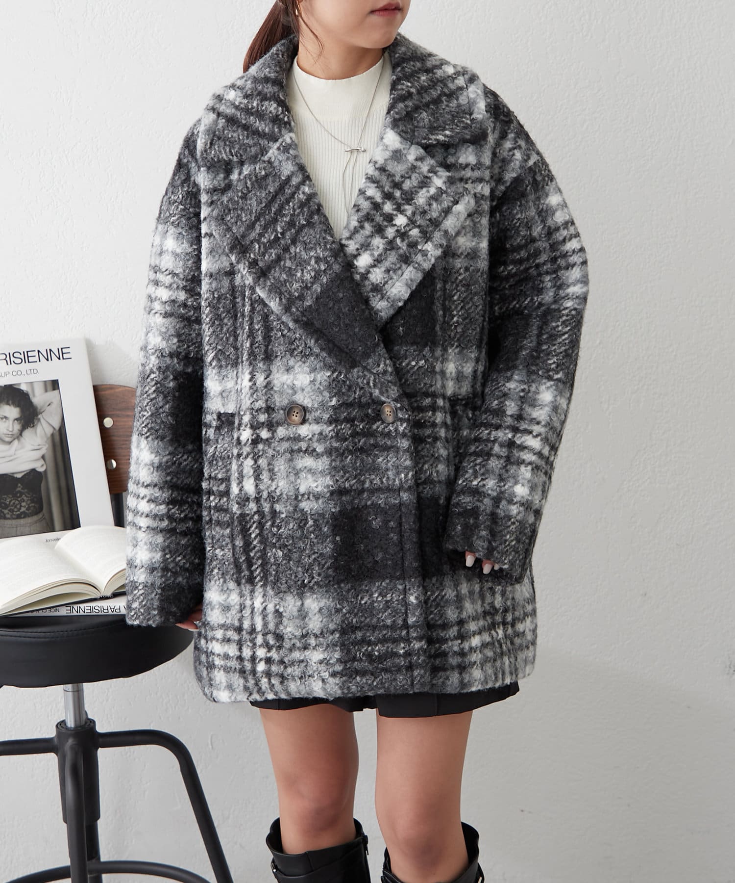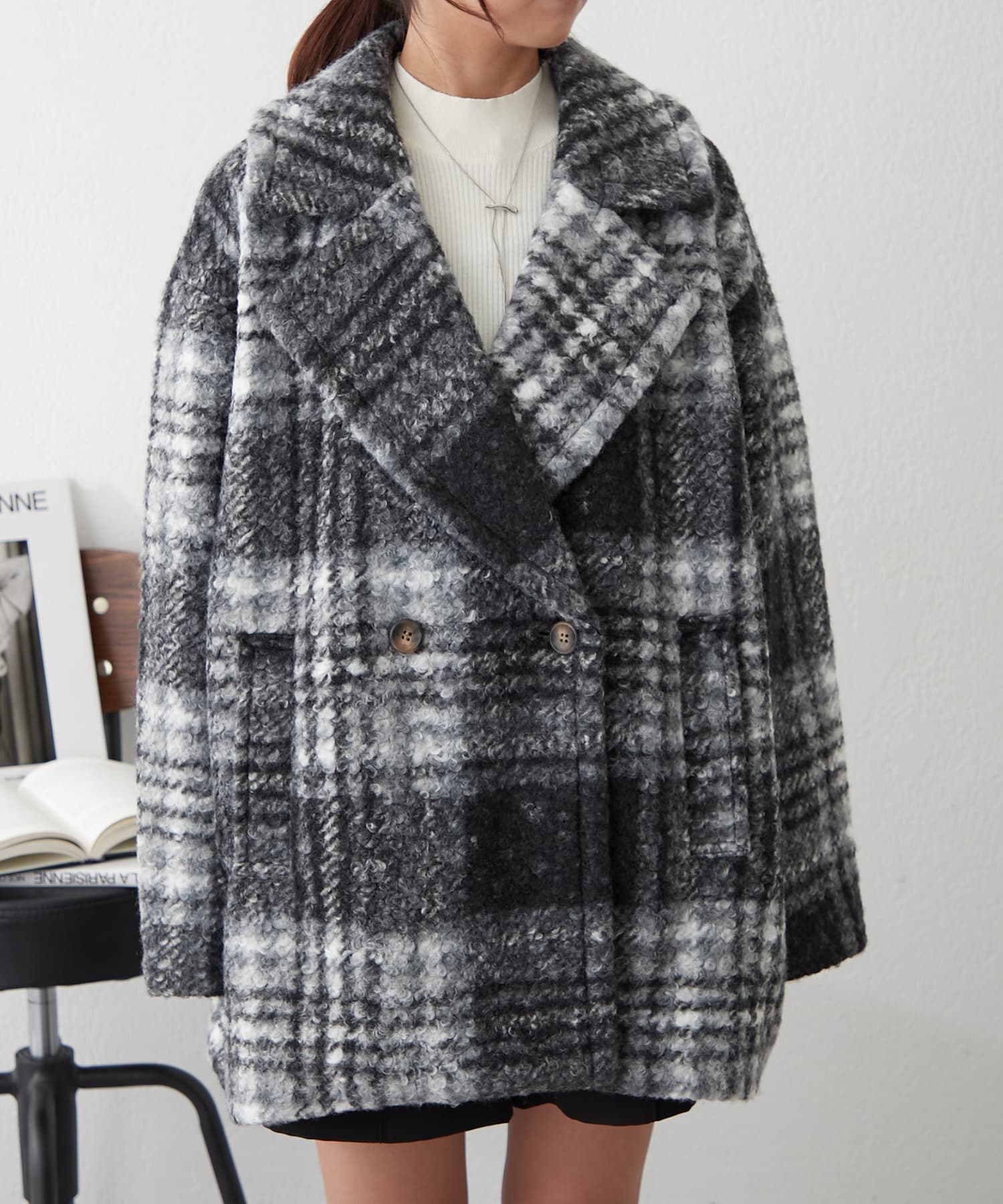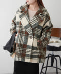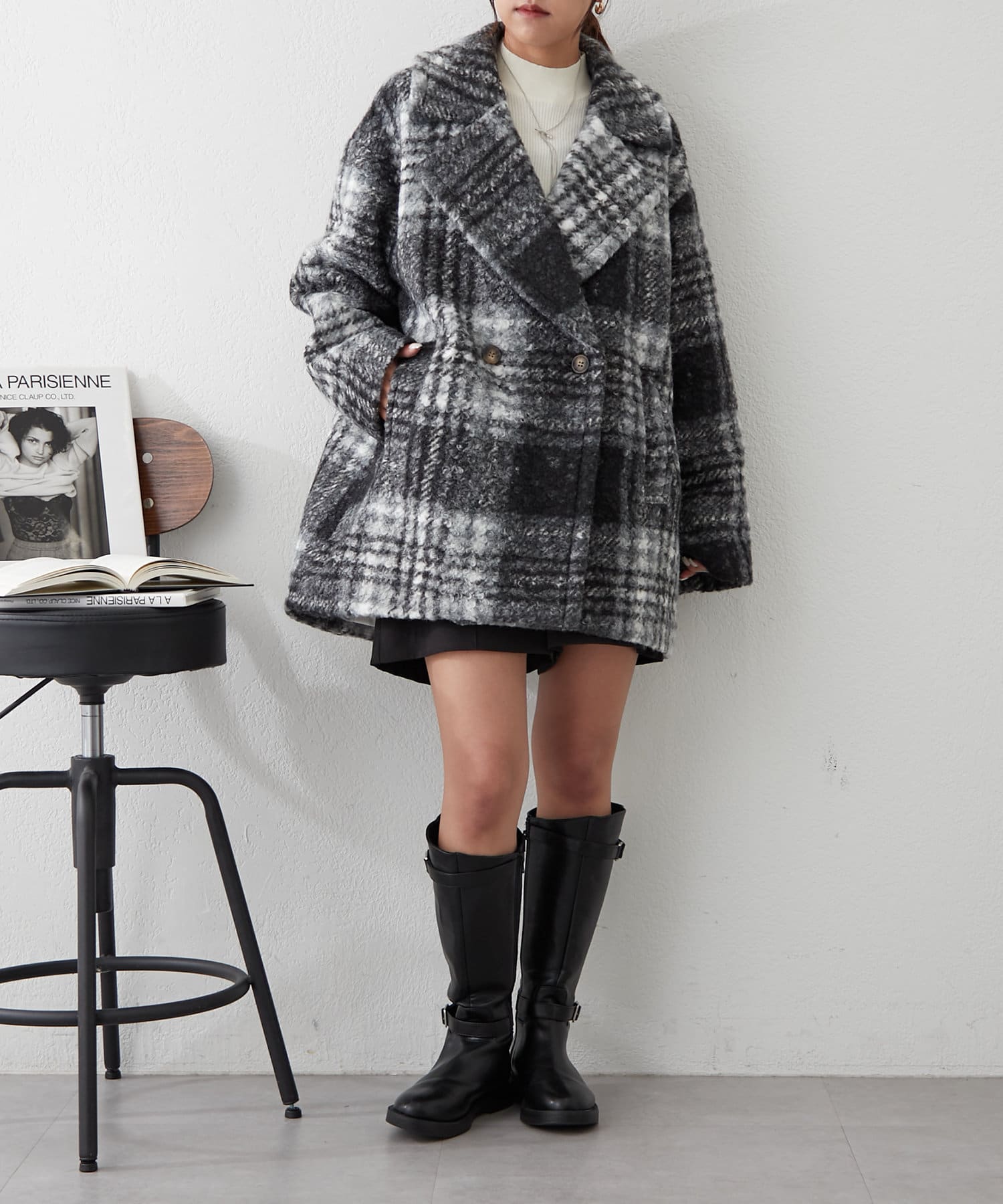・ブークレ生地と大きめなチェック柄がコーデの主役になるジャケット。