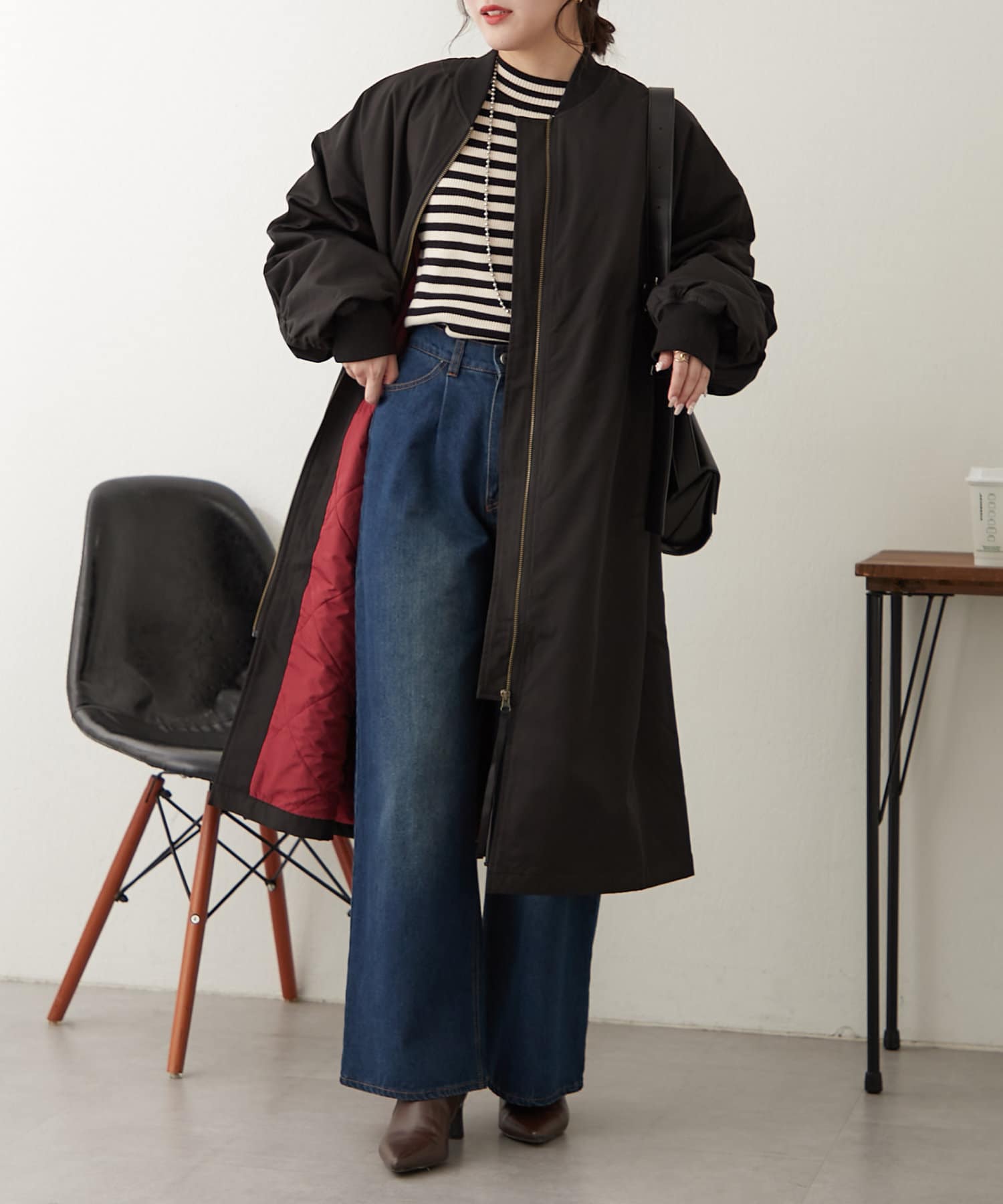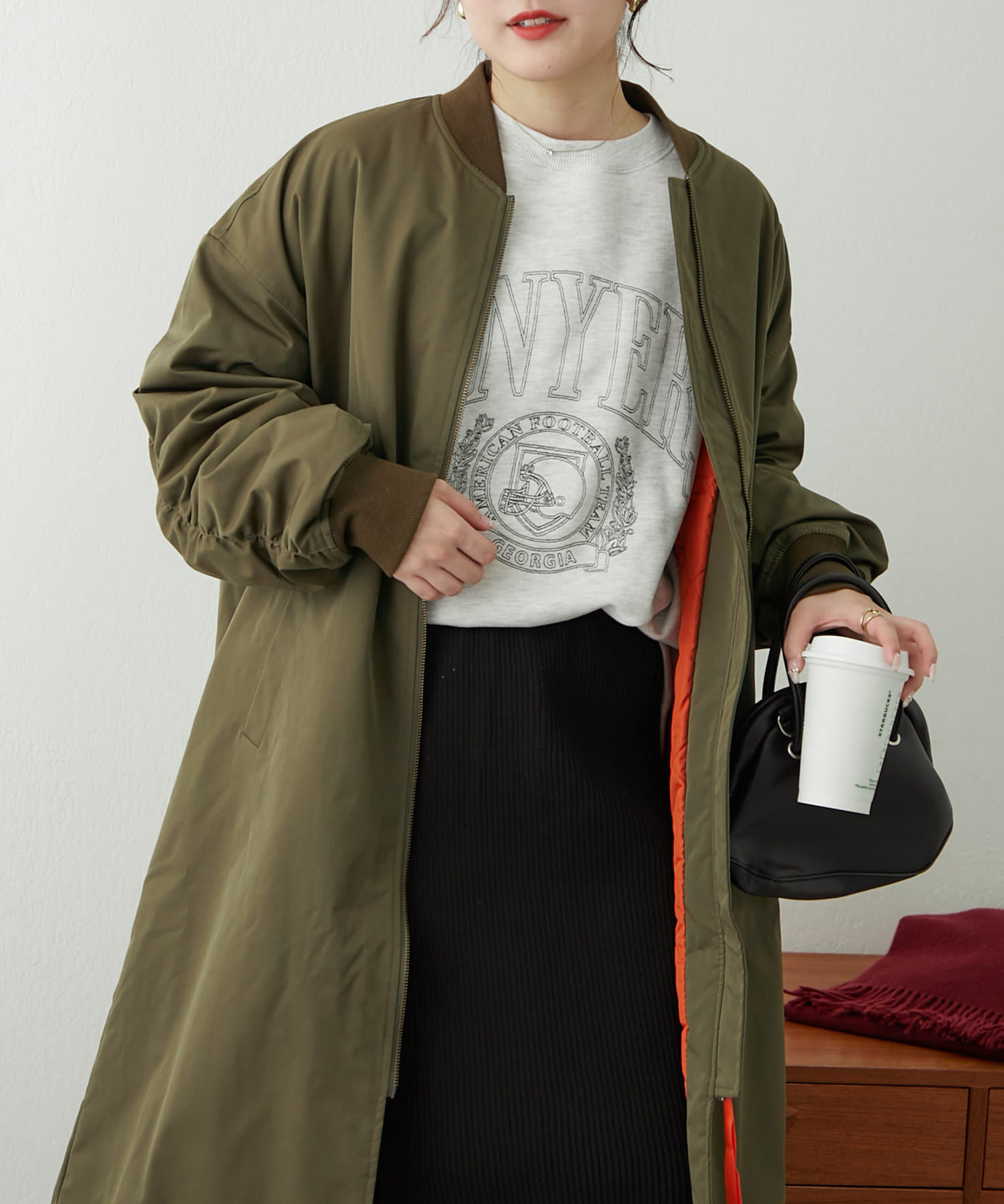 TOP > Remind me and forever > レディース > ジャケット/アウター > その他ジャケット/ブルゾン > 【NAO】裏地配色ロングMA-1