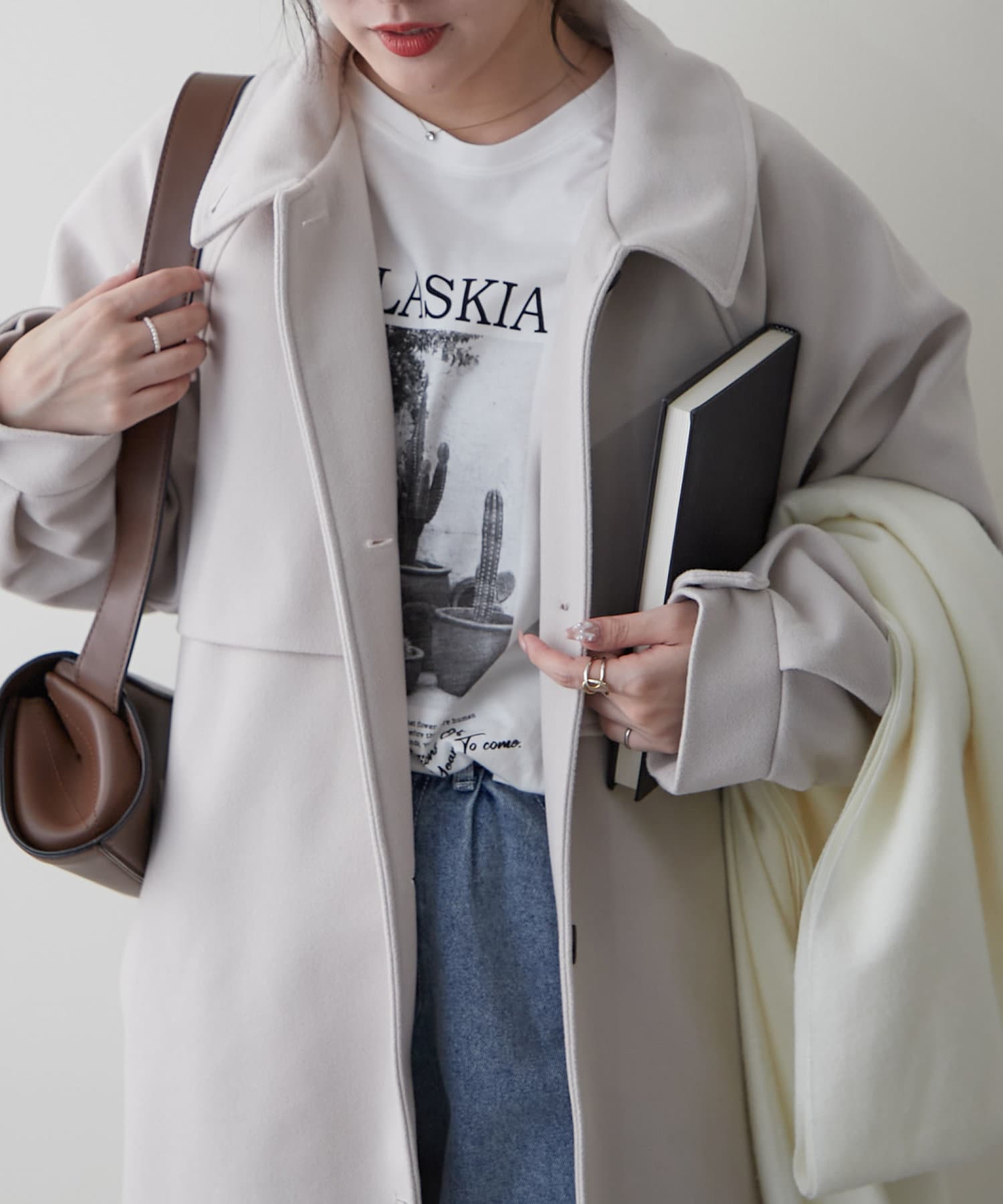 ・どんなテイストのコーデにも合わせやすいベーシックなデザインなので、一枚持っていると重宝するアイテム♪