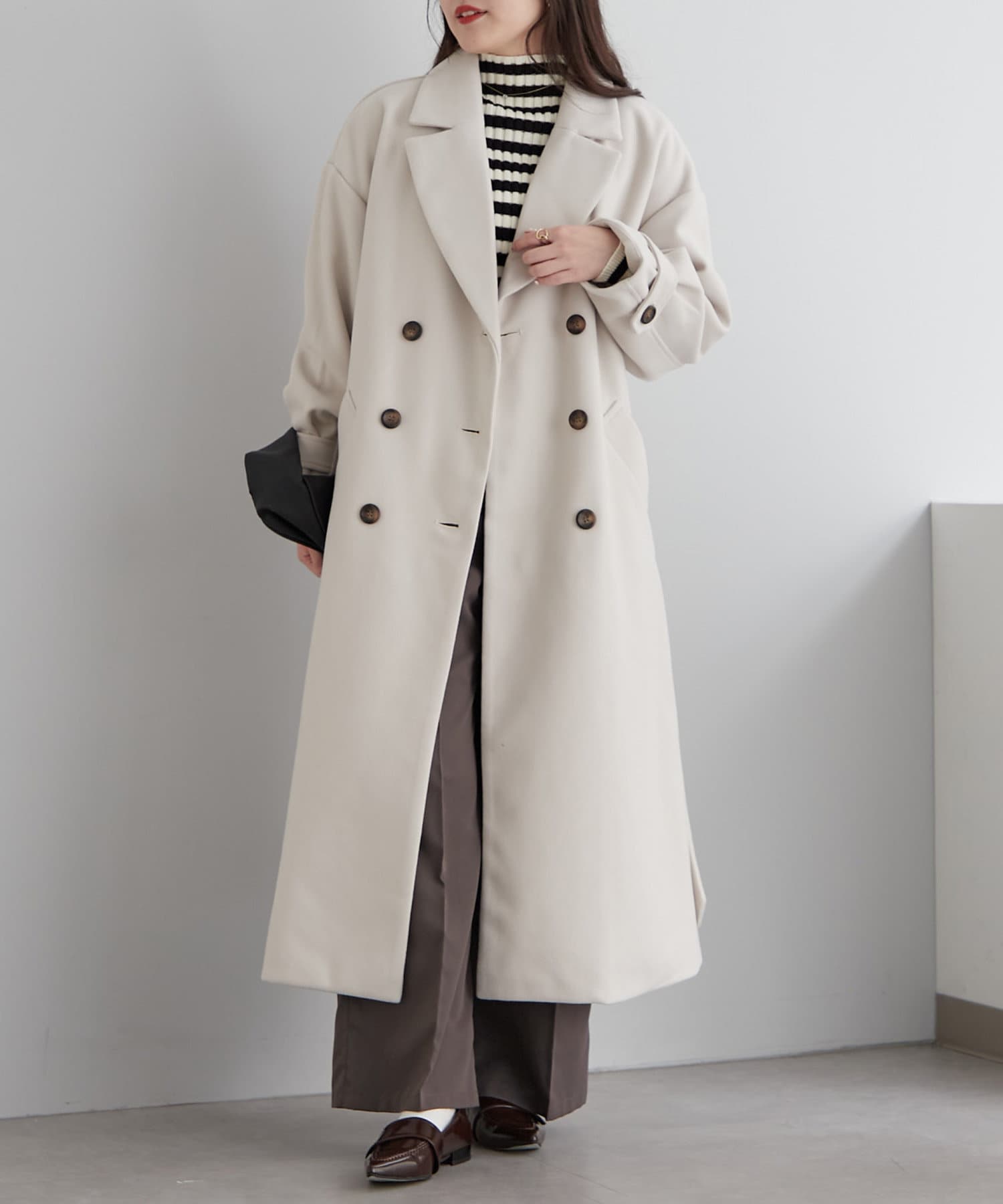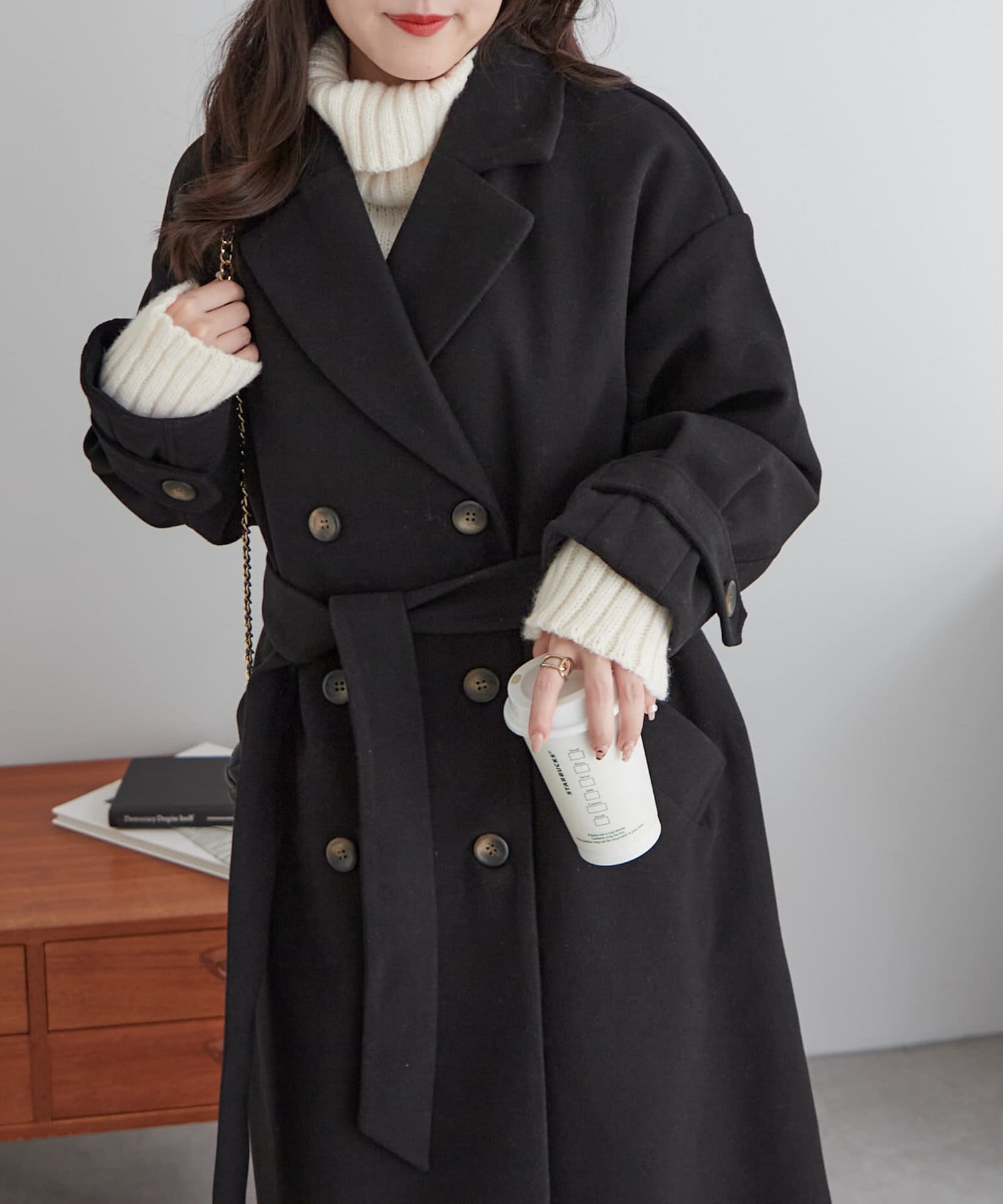 ・自由に結べるコートベルト付きなので、結び方次第で雰囲気を変えられます◎