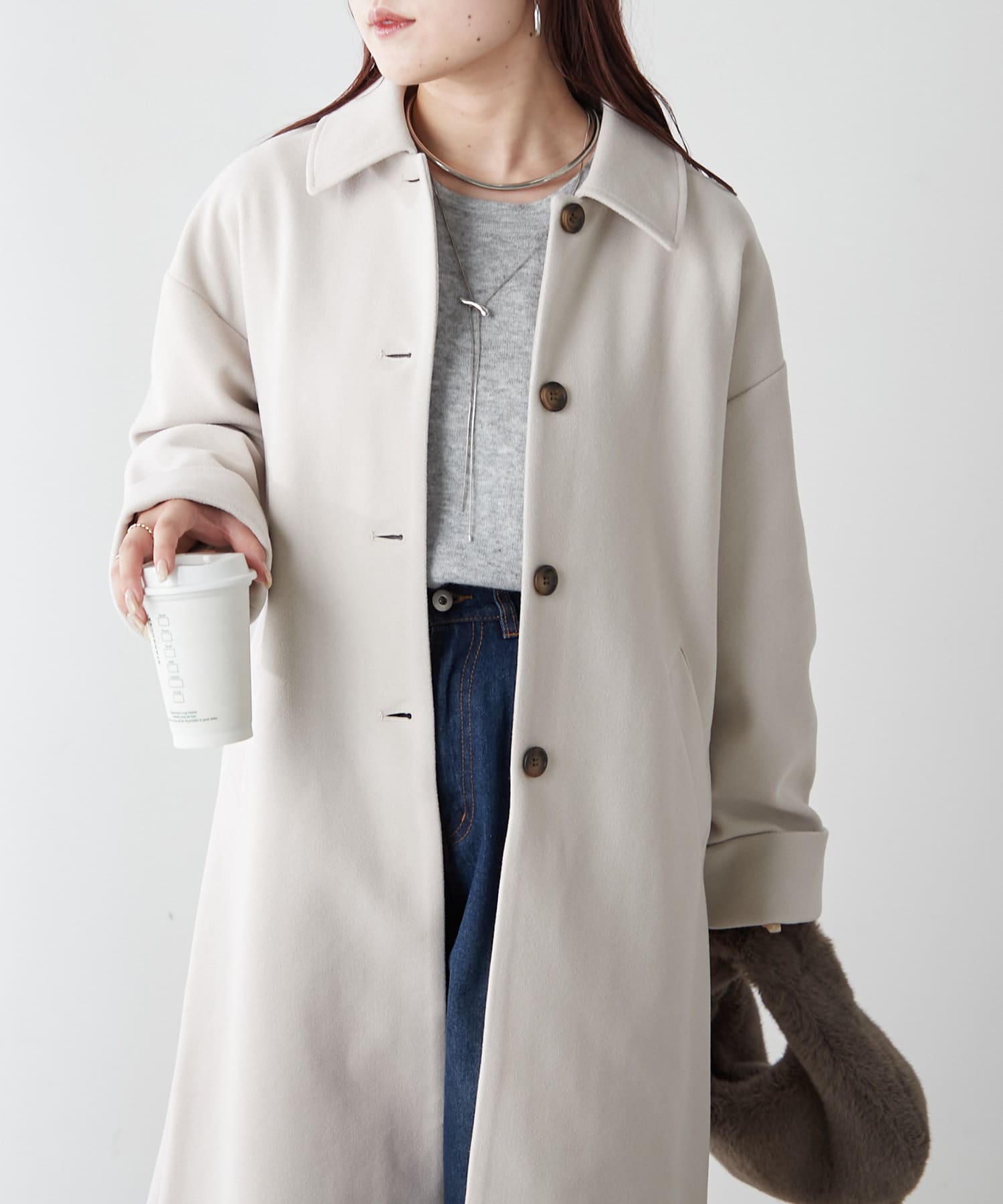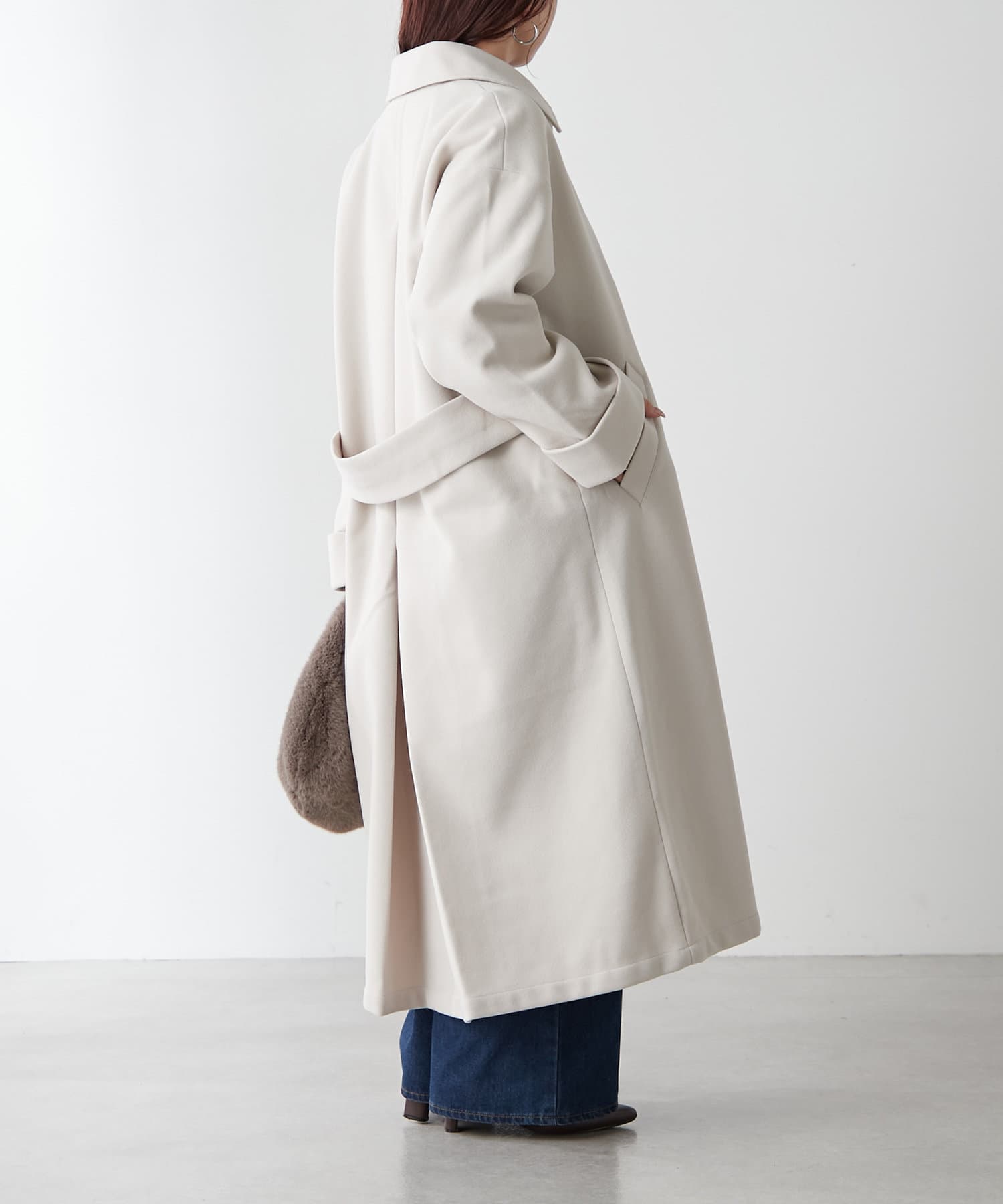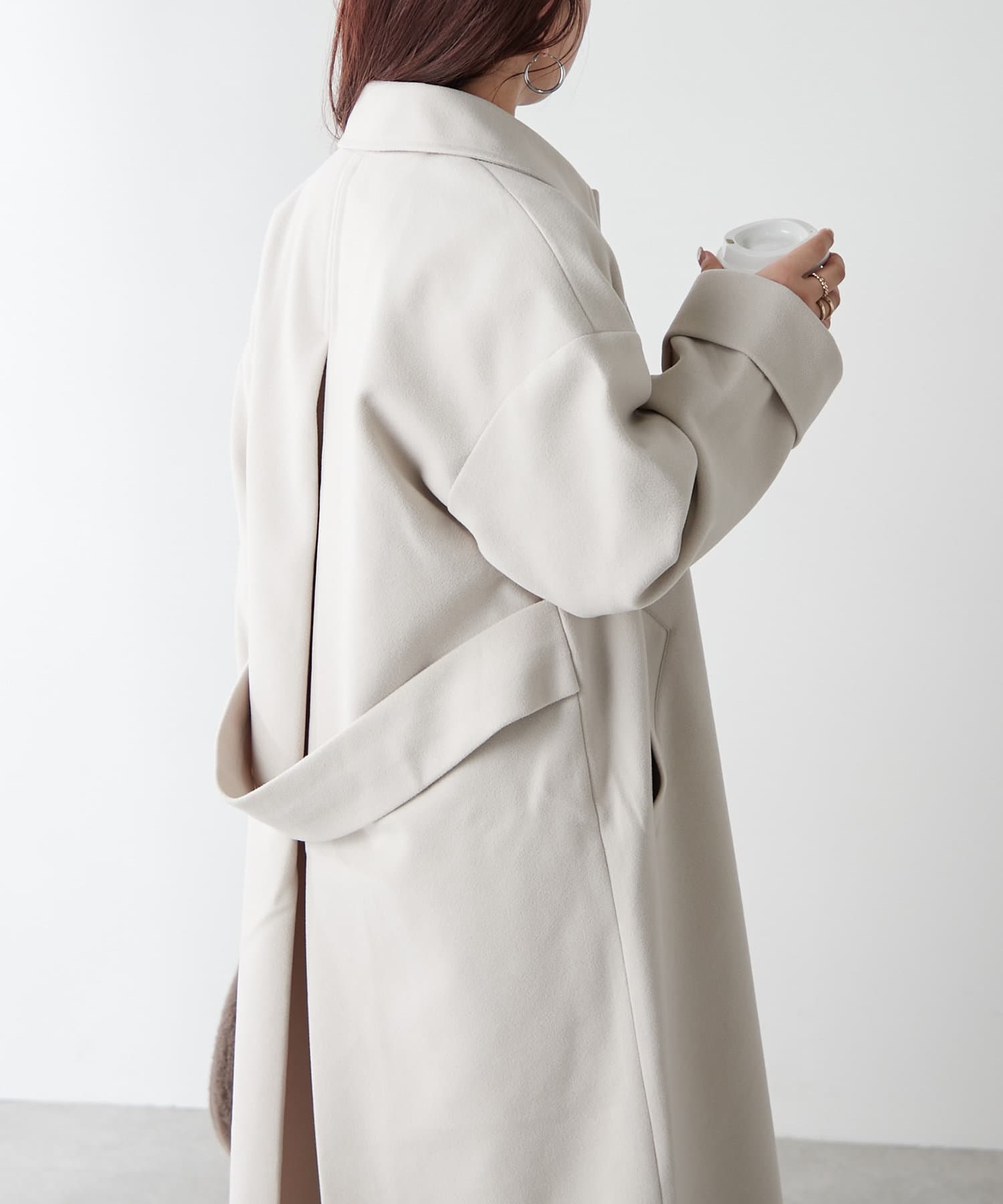 ・バックベルト付きで後ろ姿もきれいなステンカラーコート