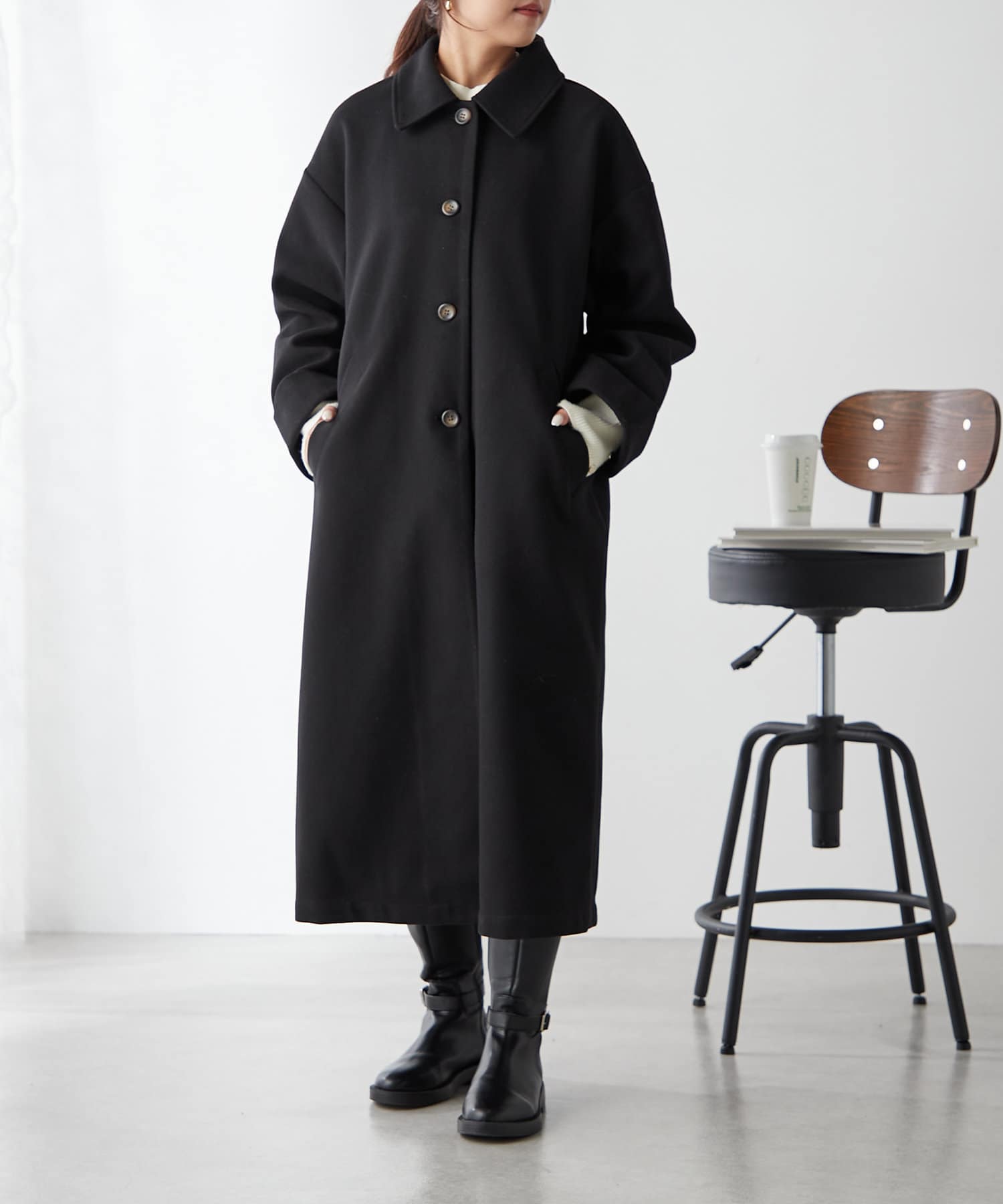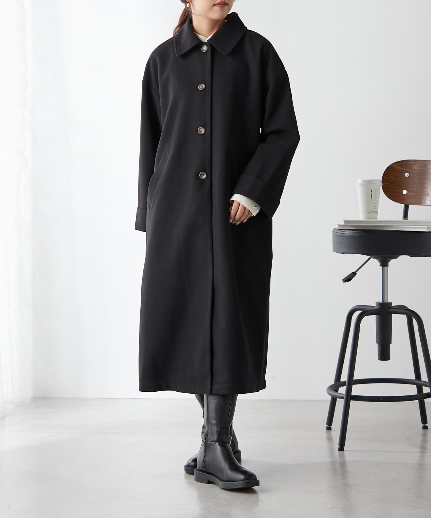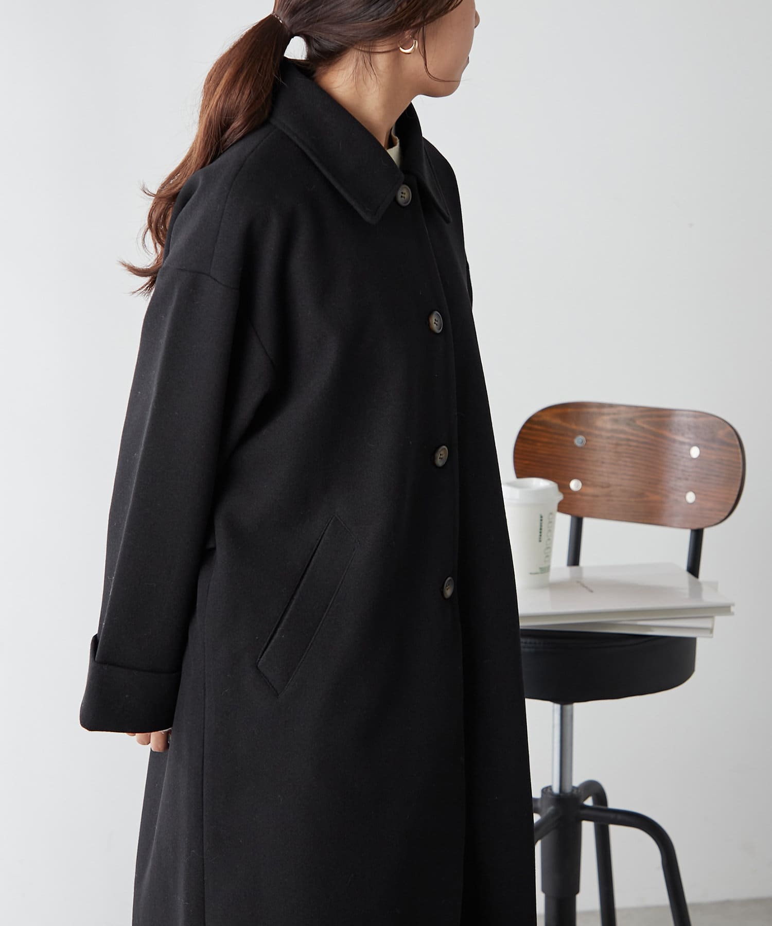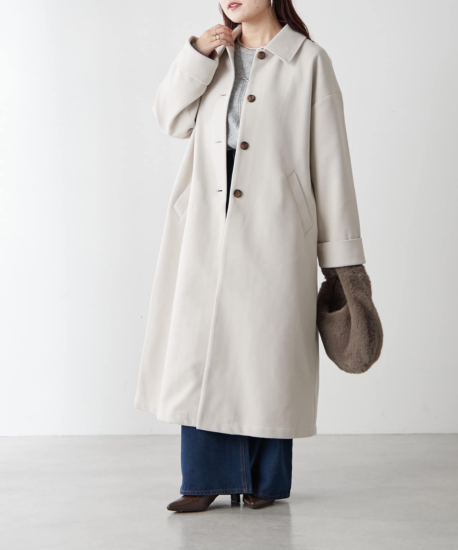 ・バックベルト付きで後ろ姿もきれいなステンカラーコート