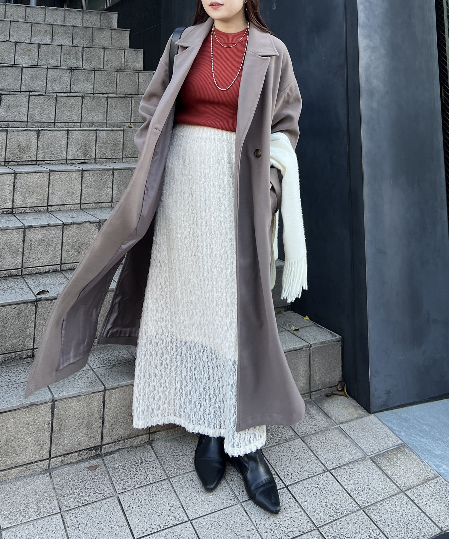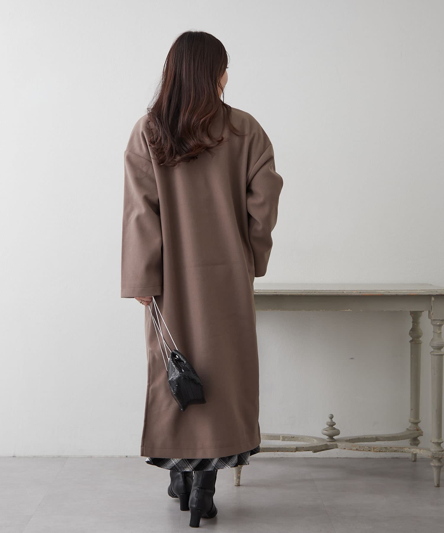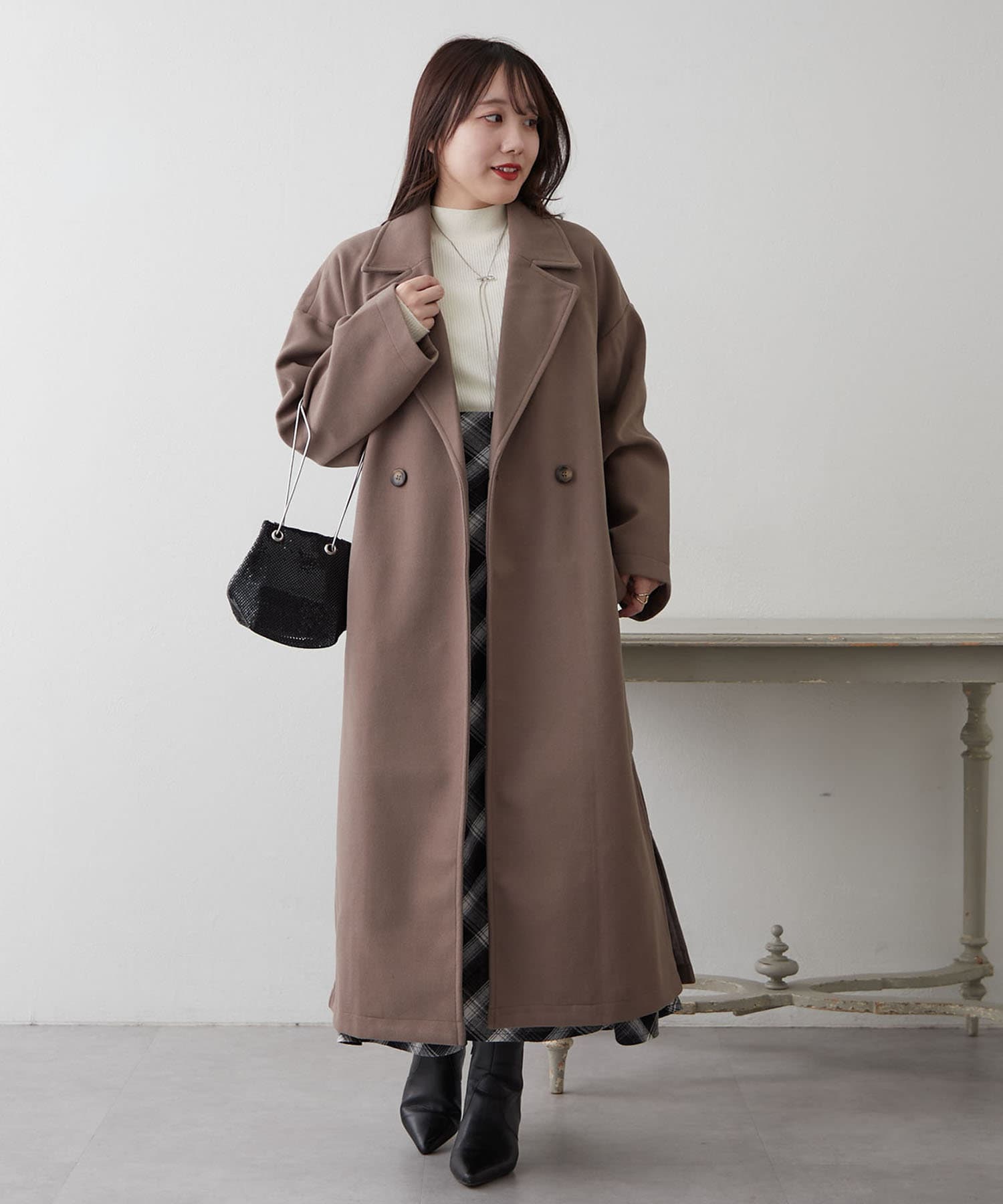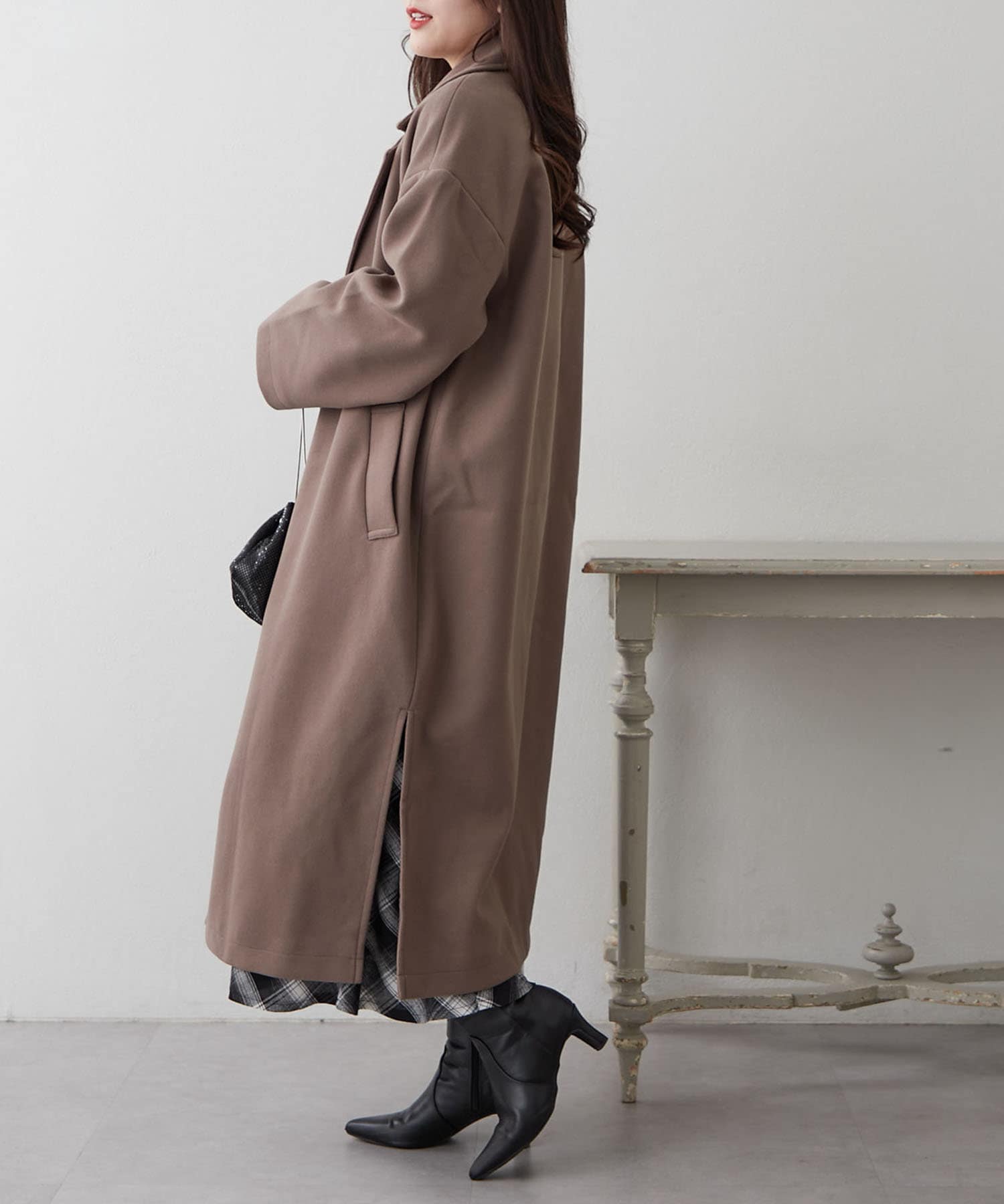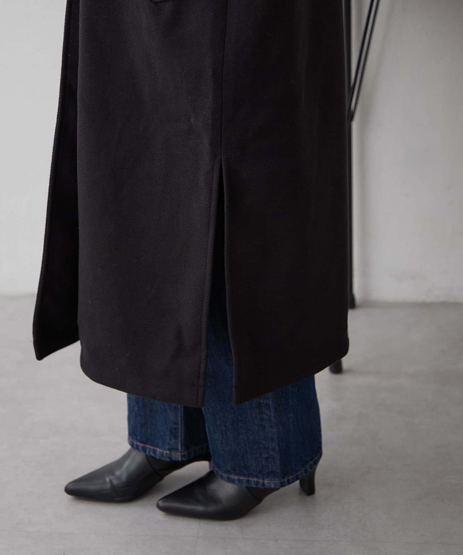・サイドスリット入りでロングスカートでもシルエットの良さを損なわないコート