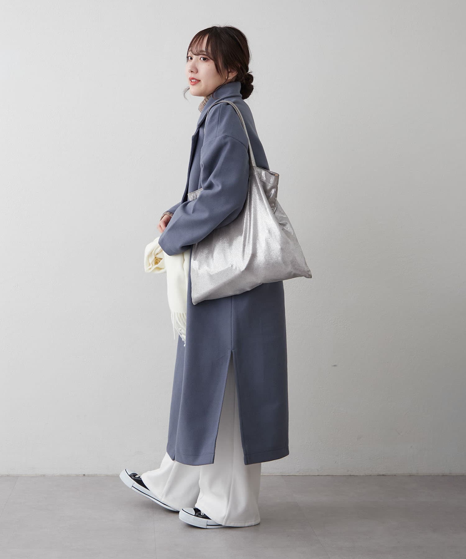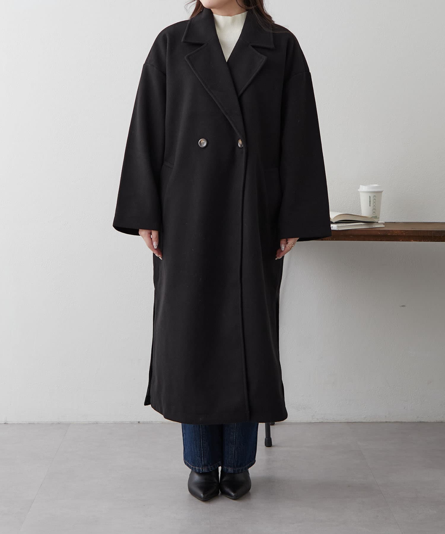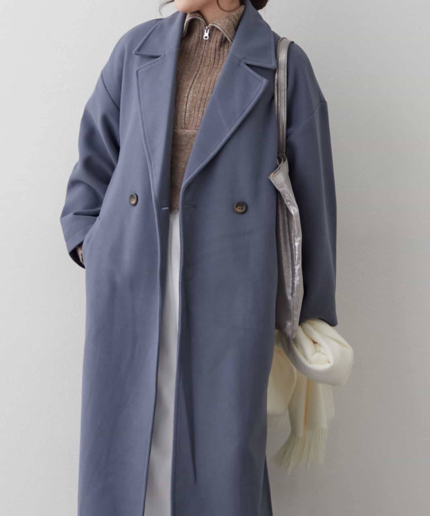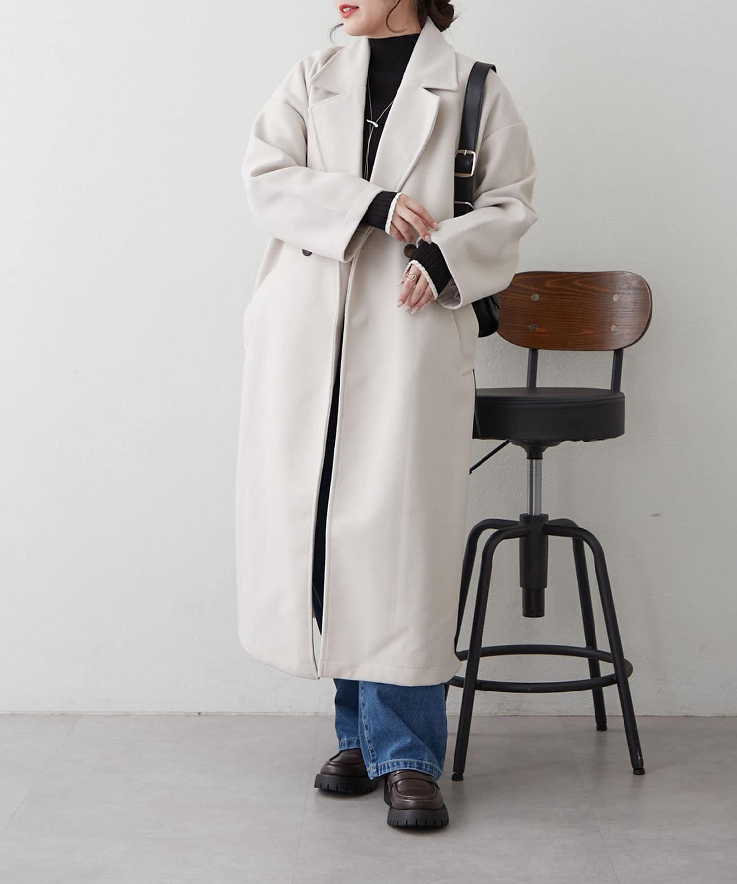 ・サイドスリット入りでロングスカートでもシルエットの良さを損なわないコート