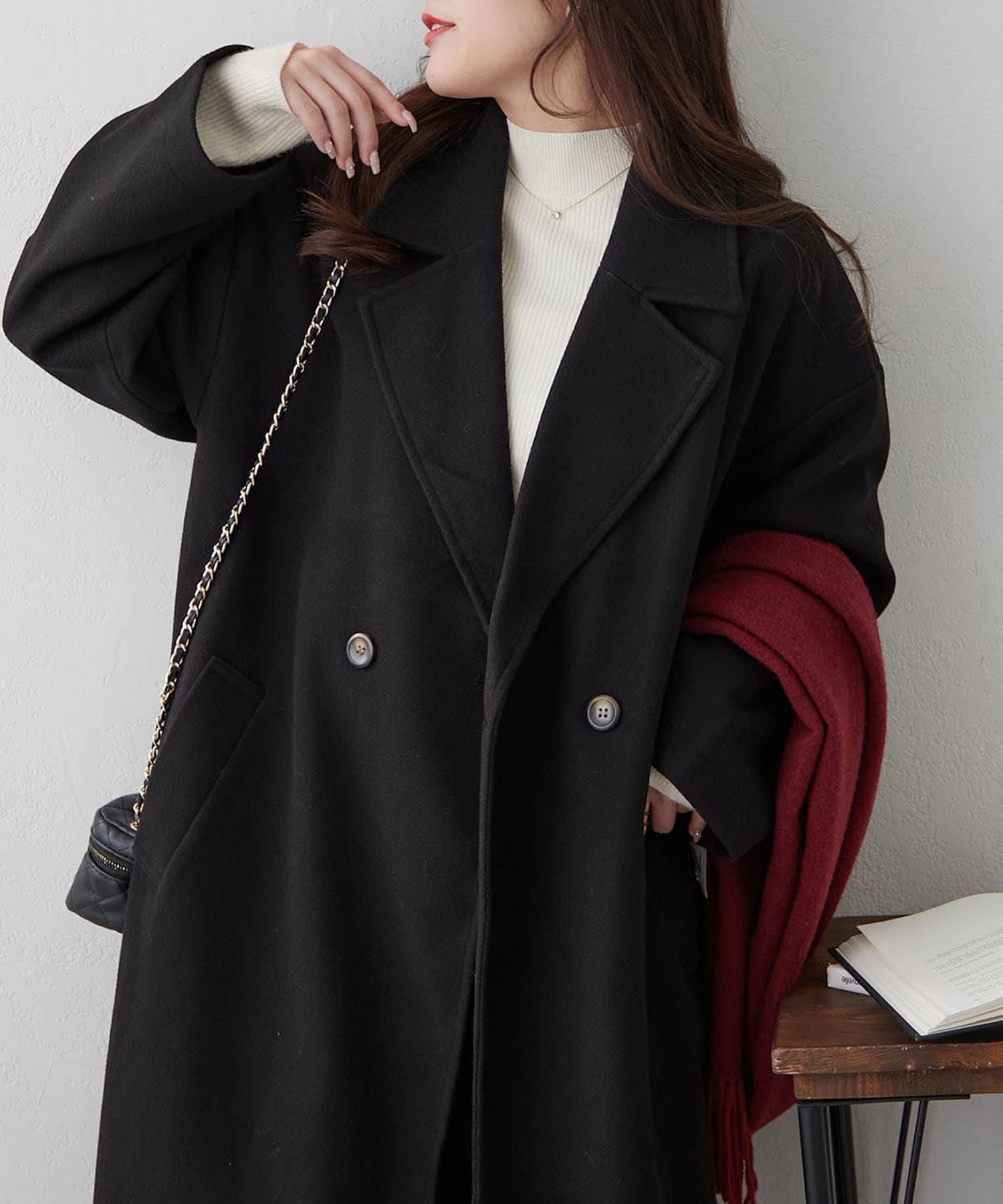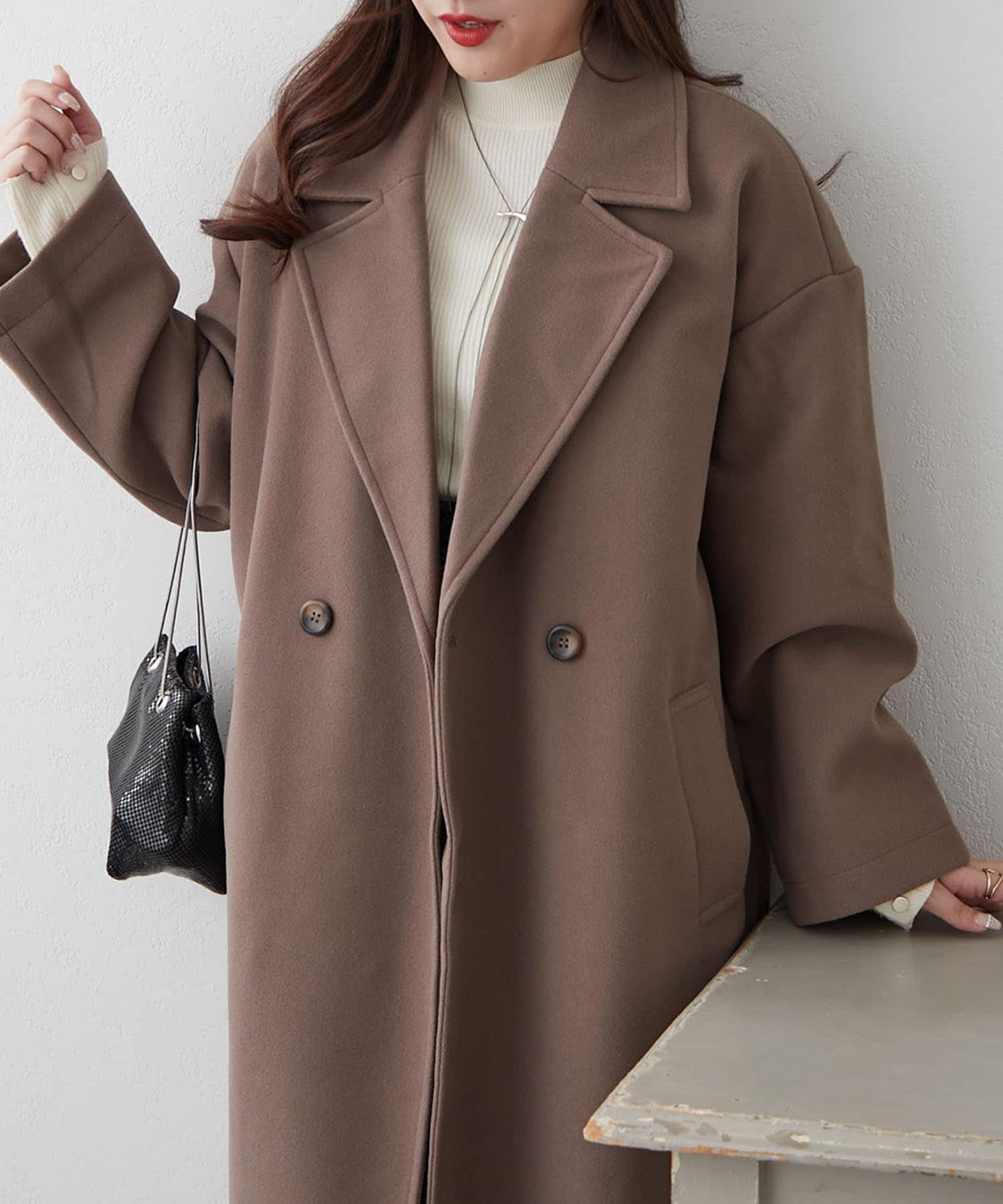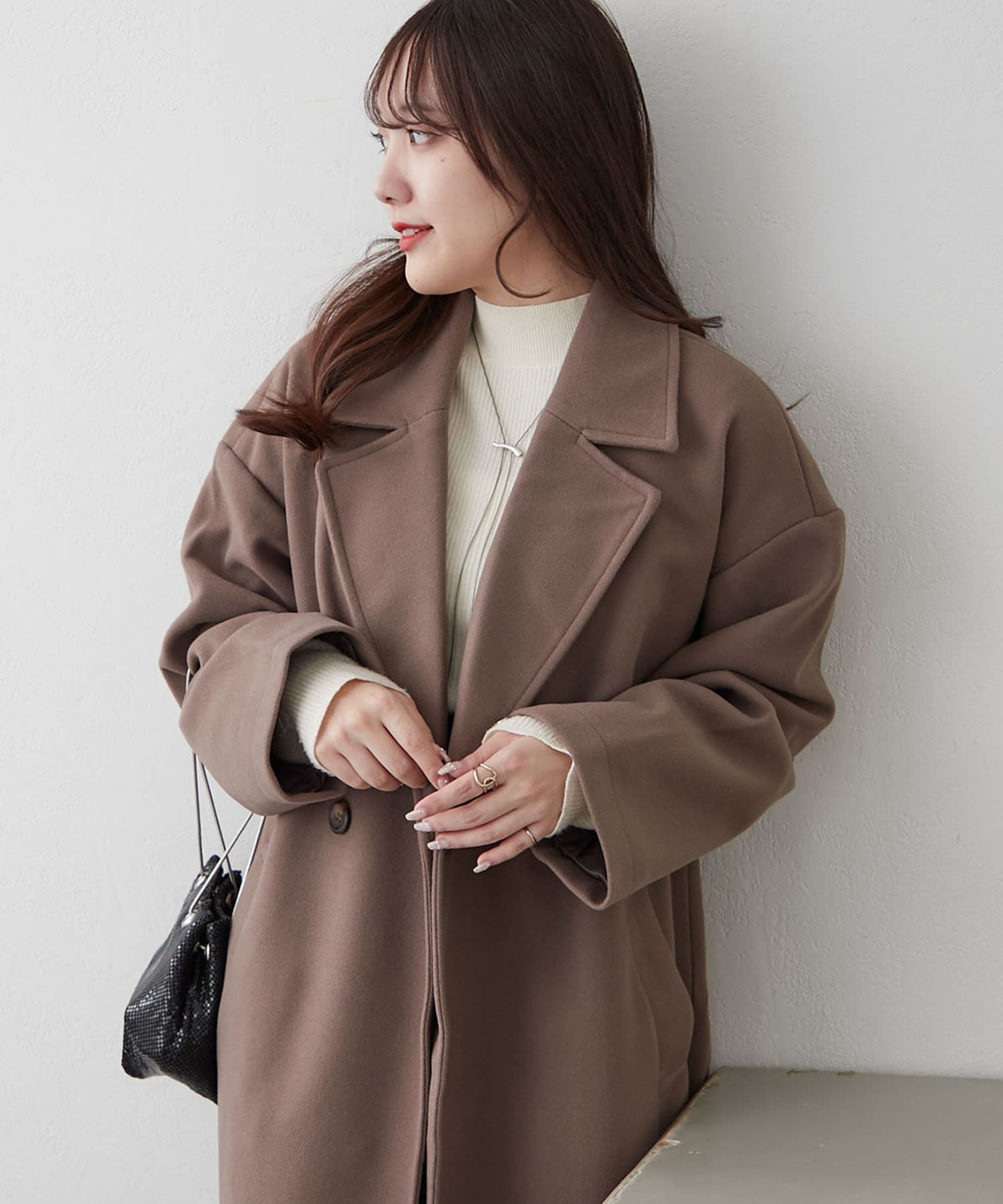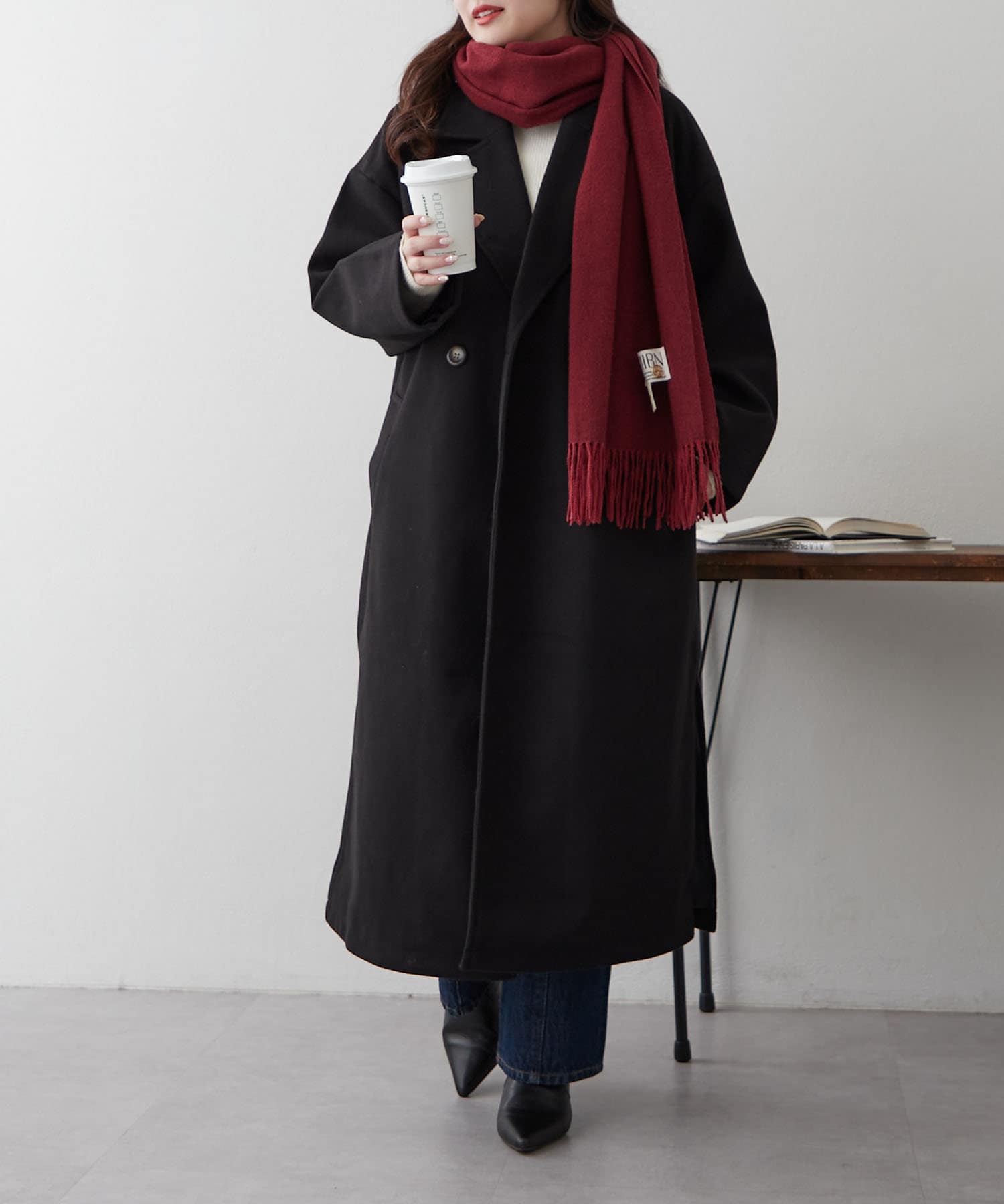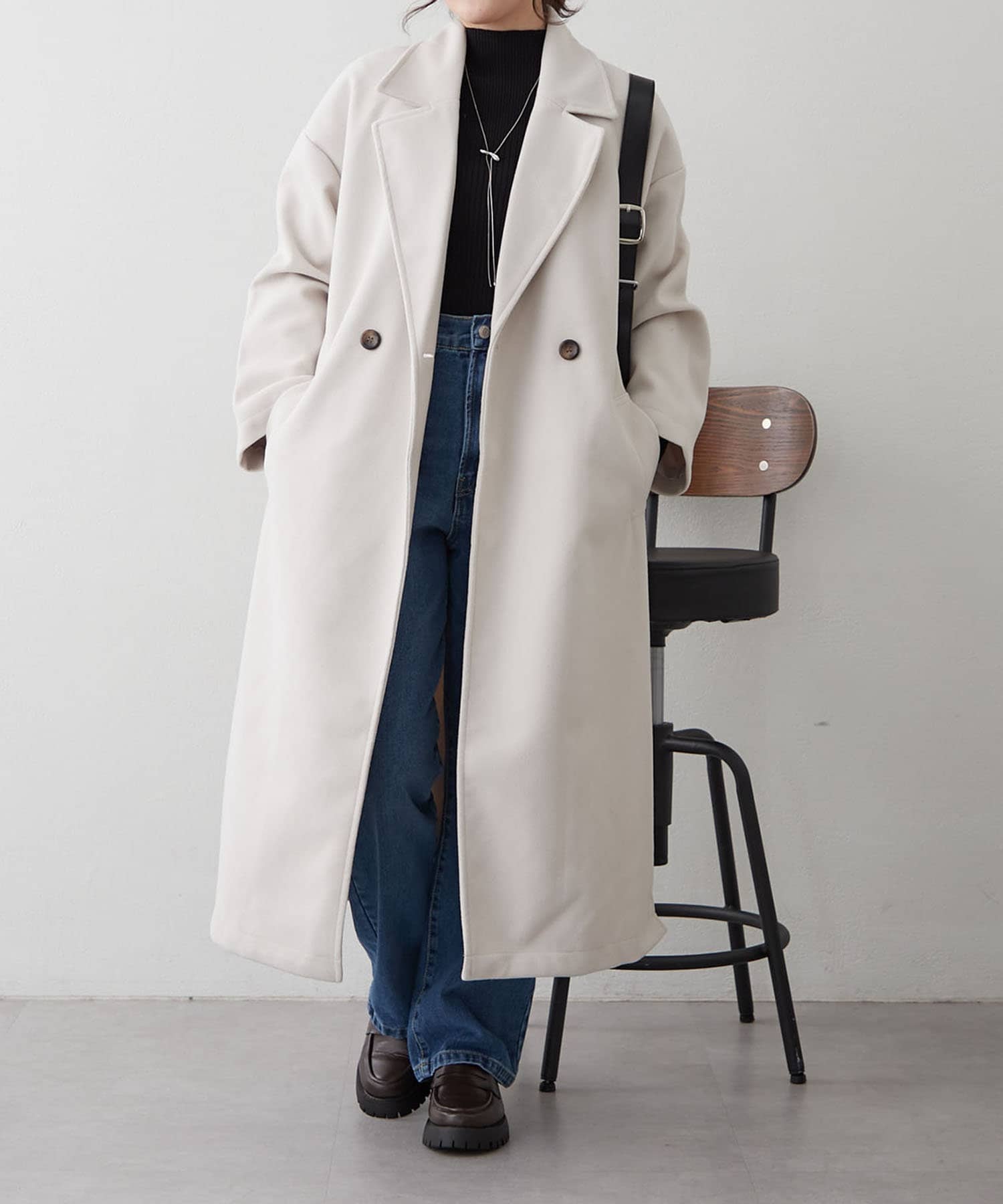 ・サイドスリット入りでロングスカートでもシルエットの良さを損なわないコート