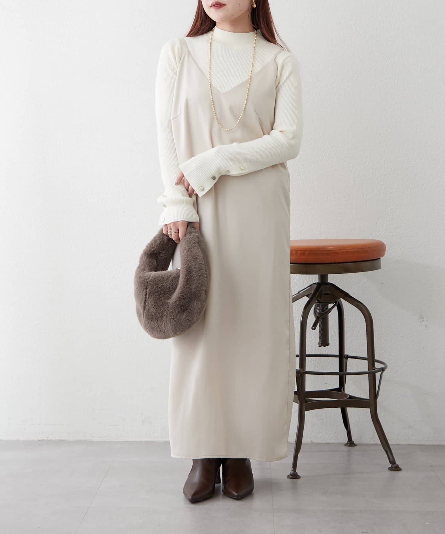 ・秋冬はリブニット合わせがおすすめ◎