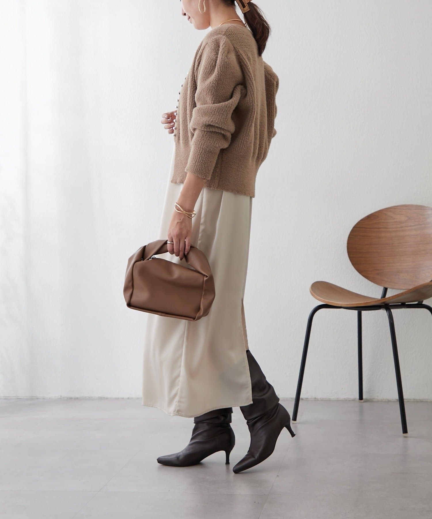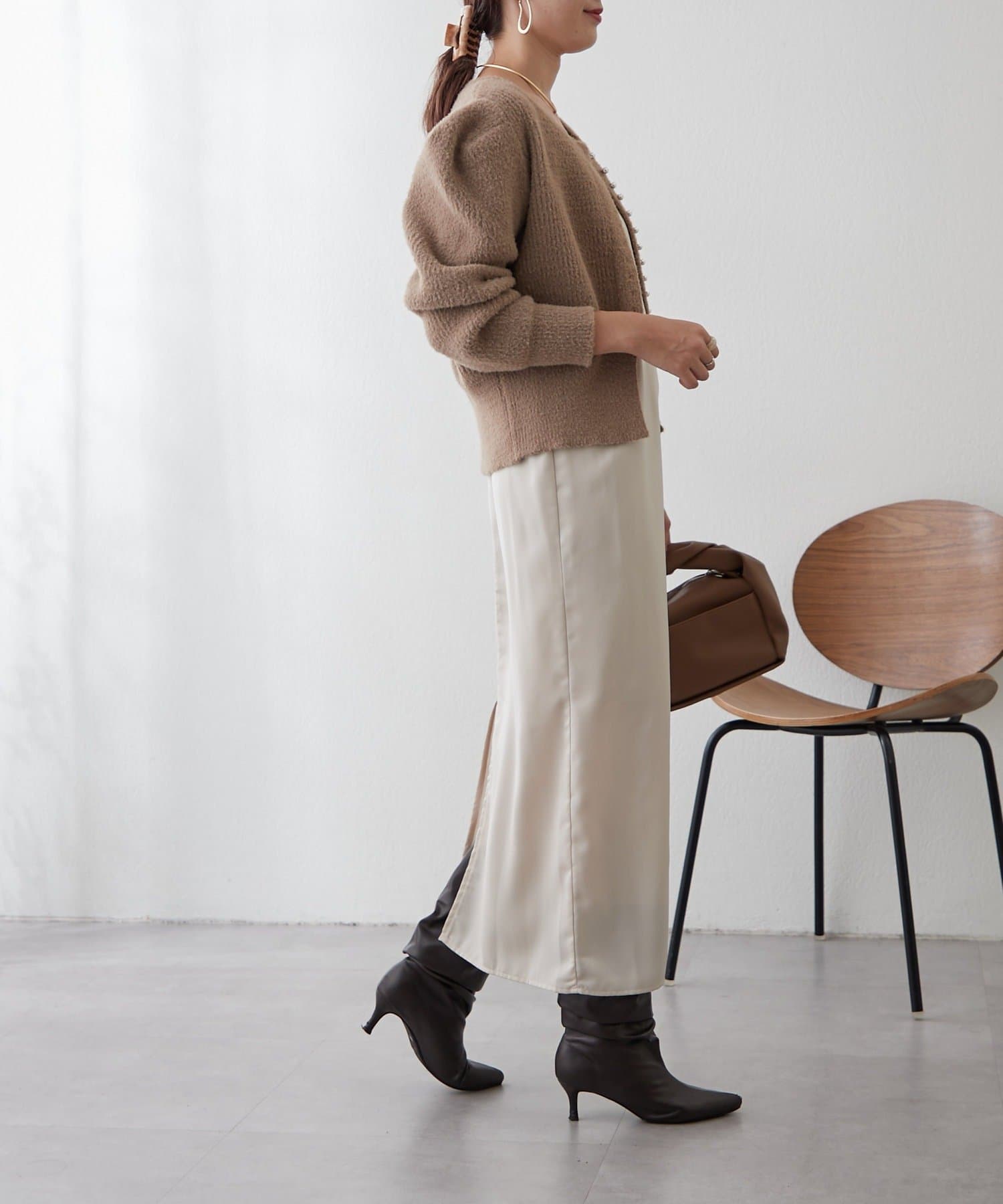 ・身体のラインを拾わない、とろみのあるサテン素材を使用。