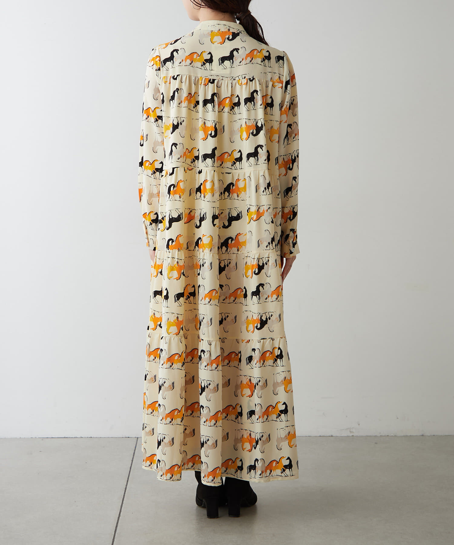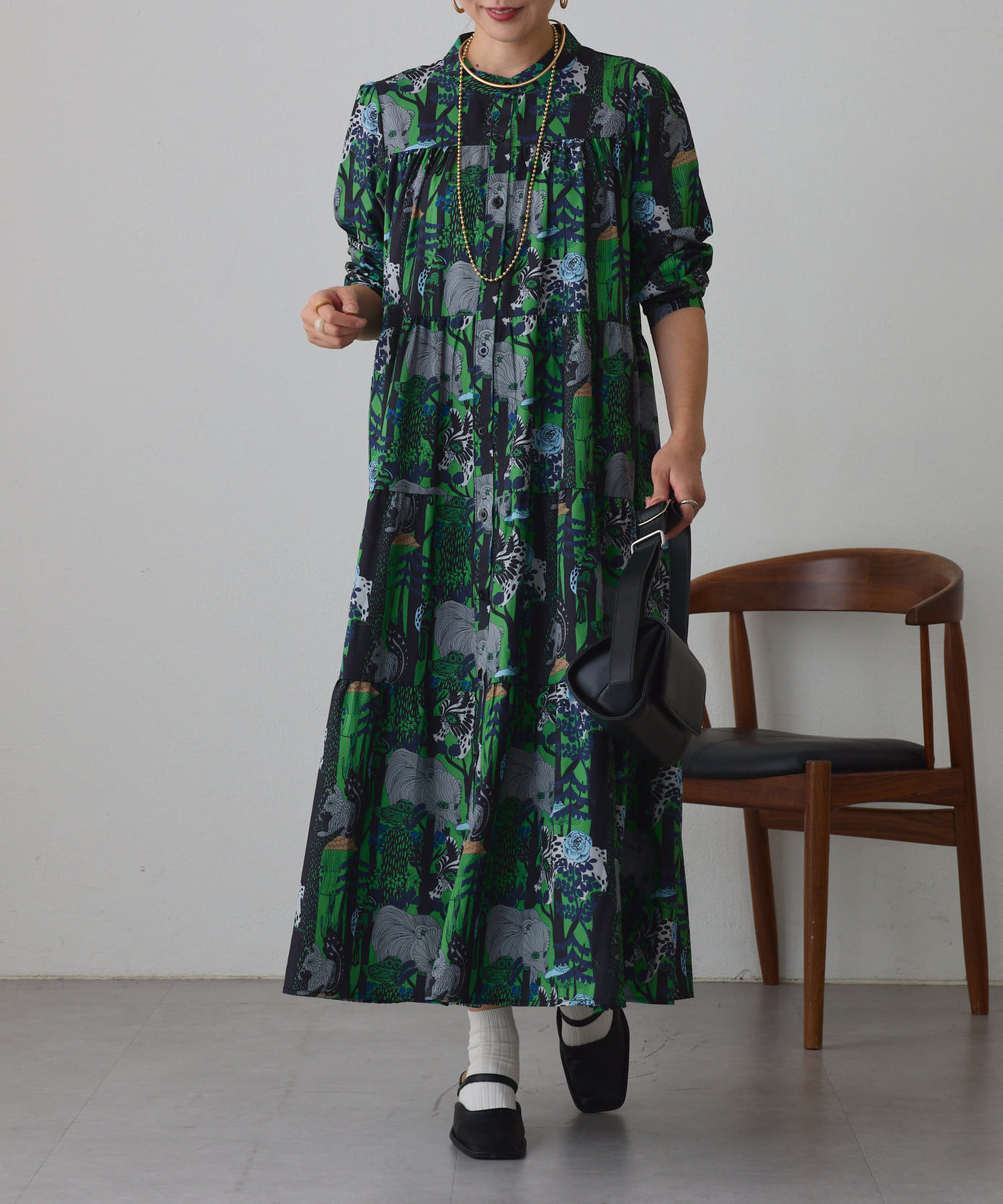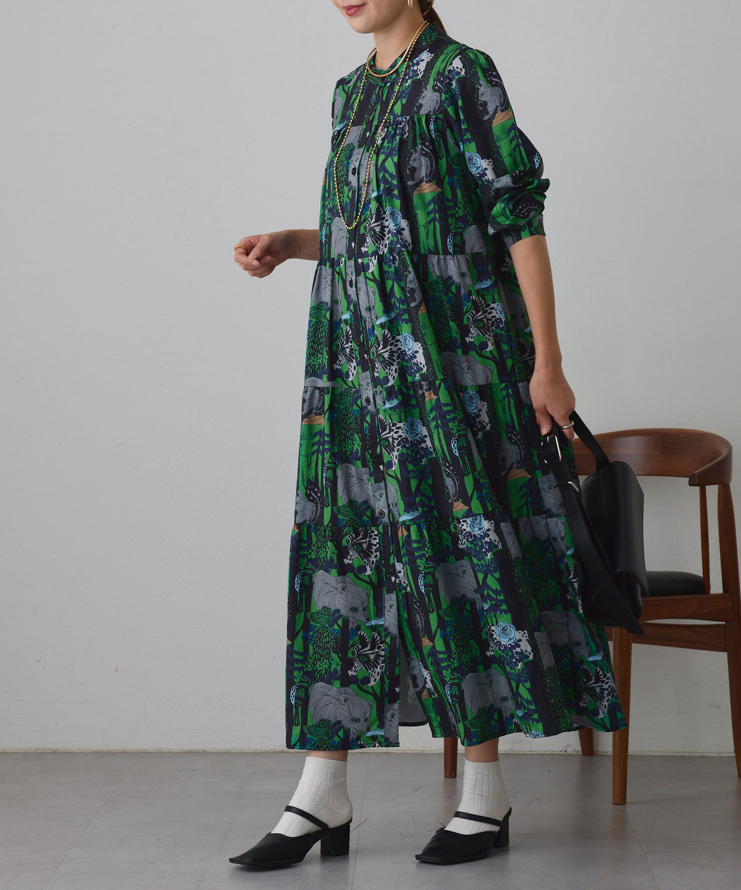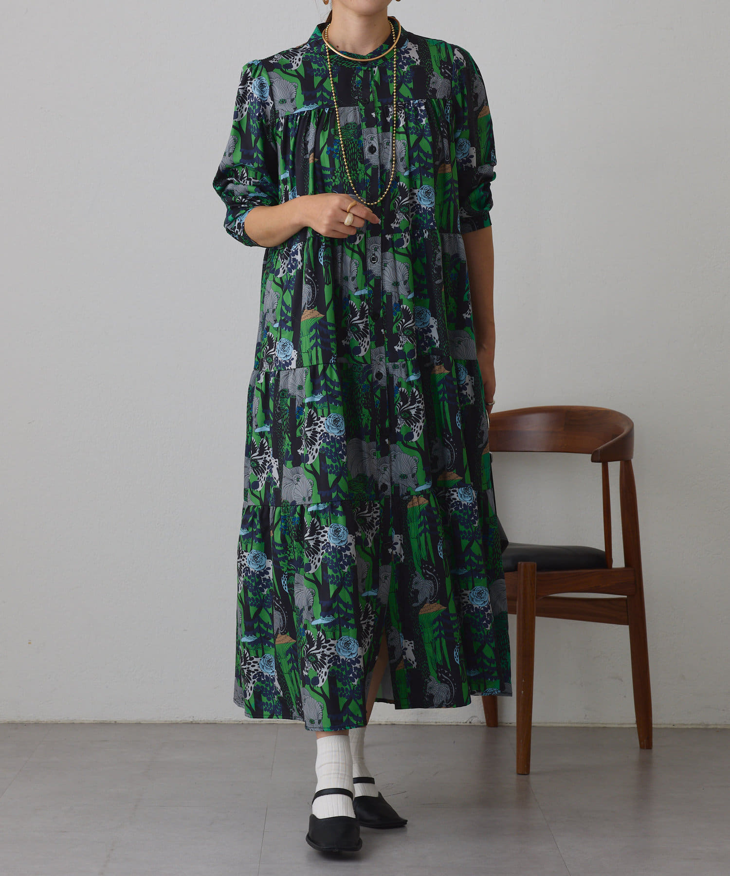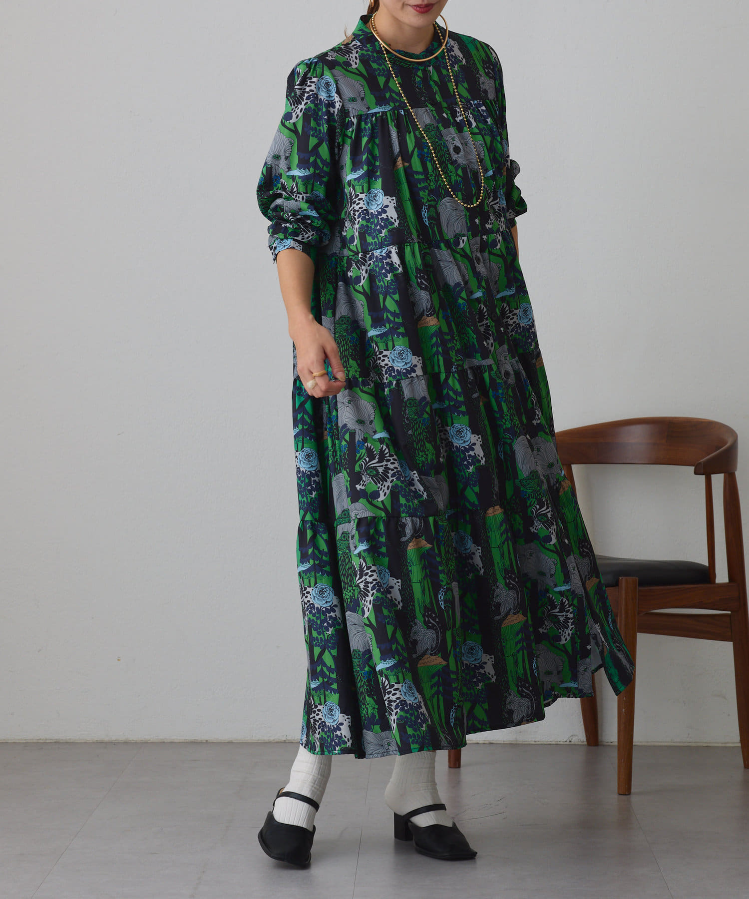・アソート柄でご用意したティアードワンピース。