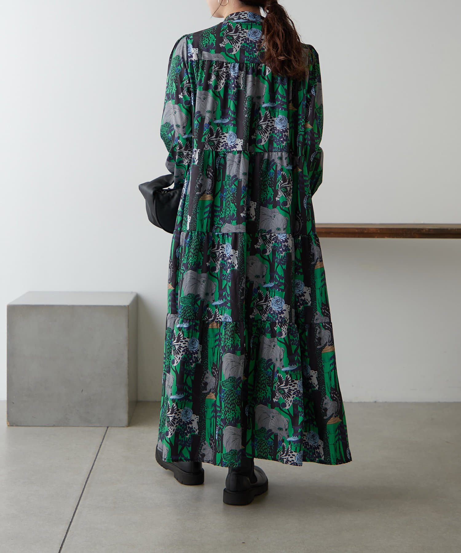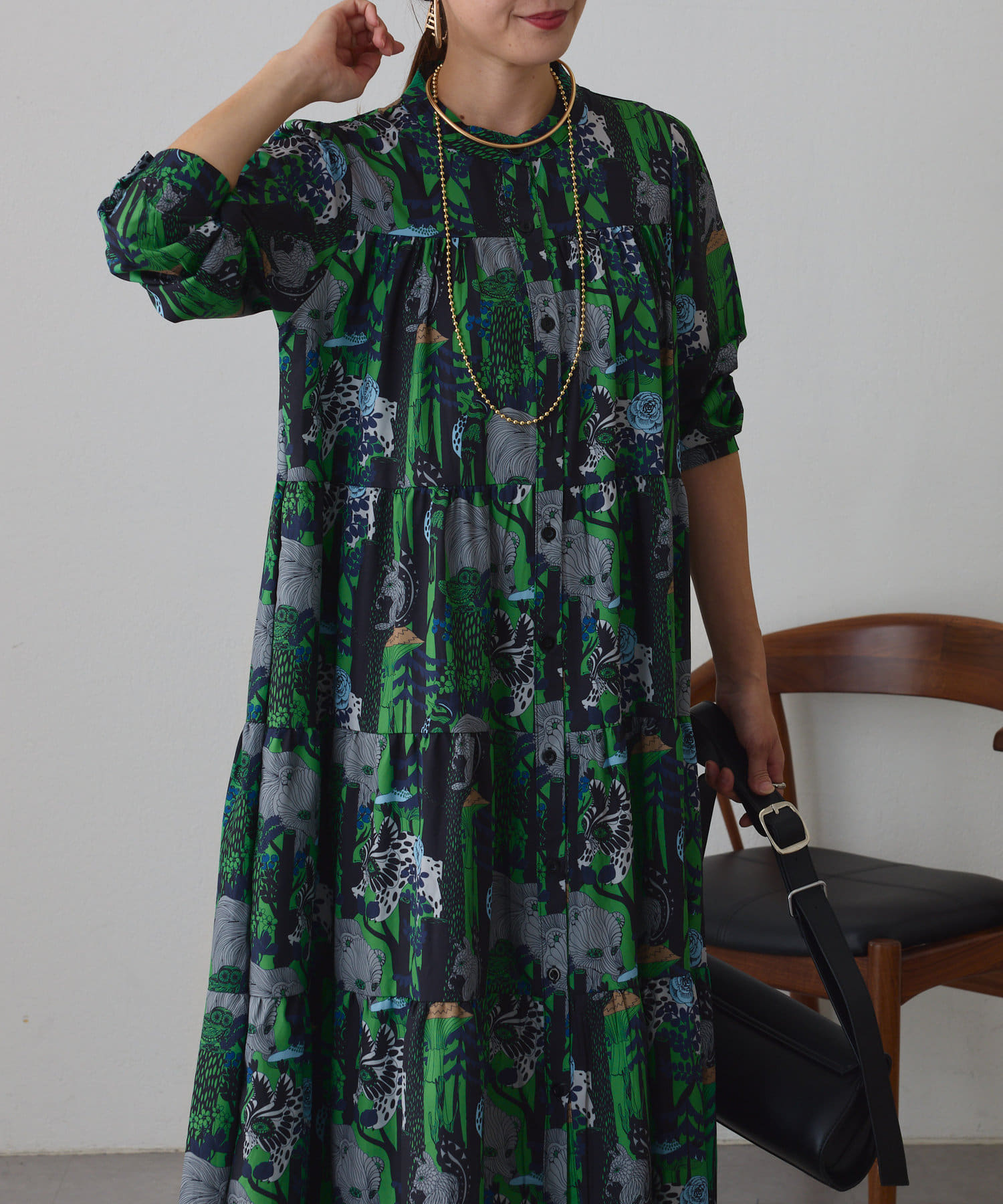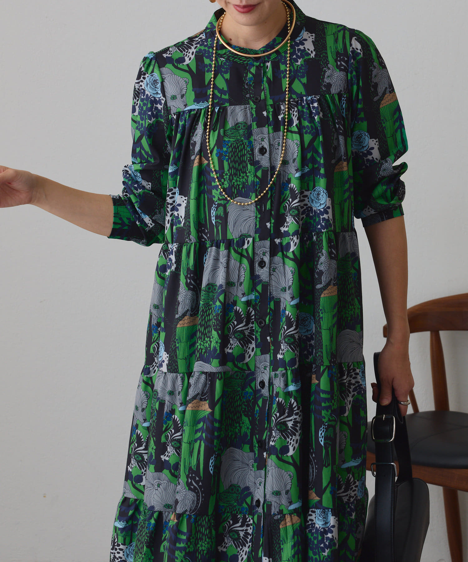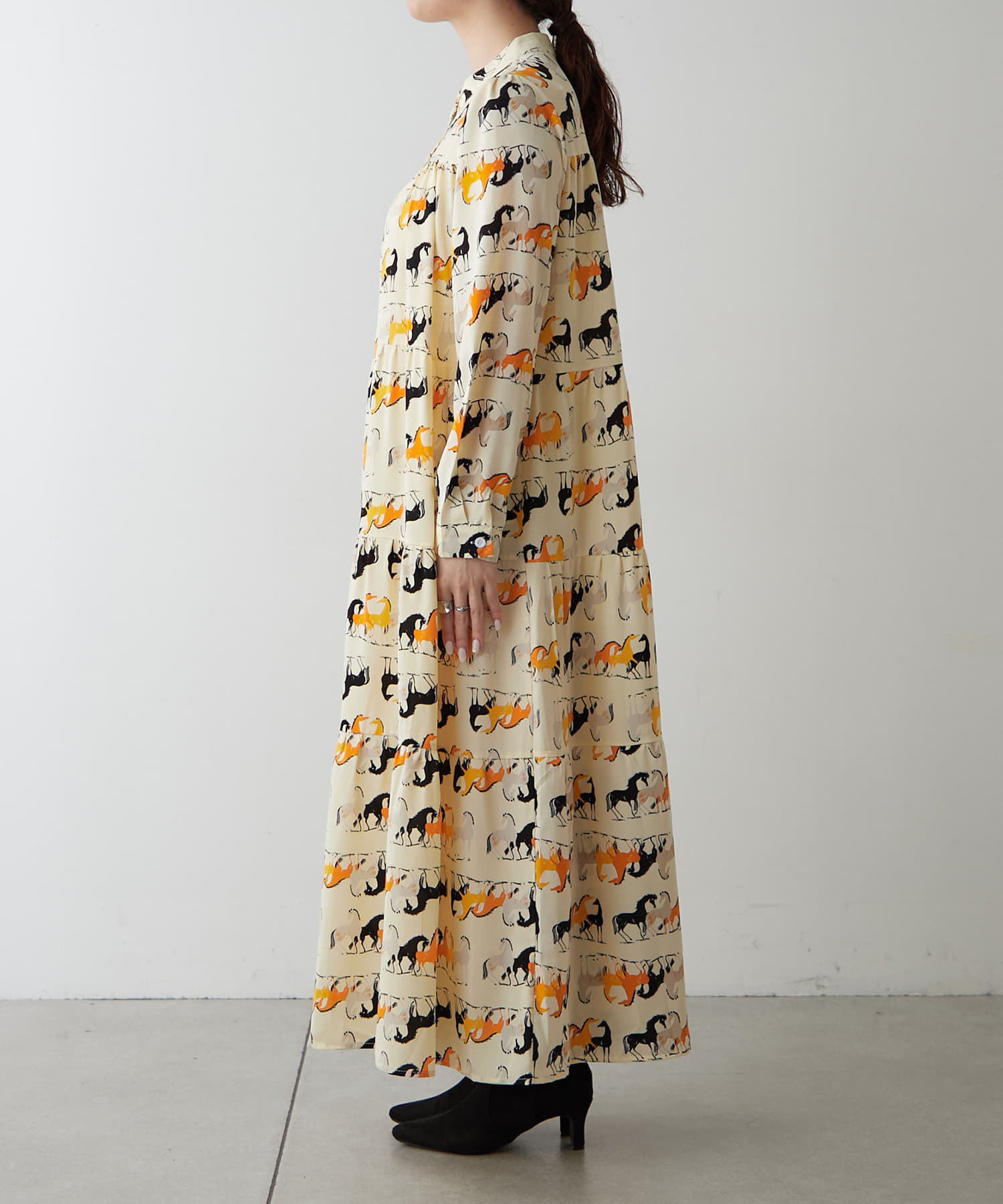 ・アソート柄でご用意したティアードワンピース。