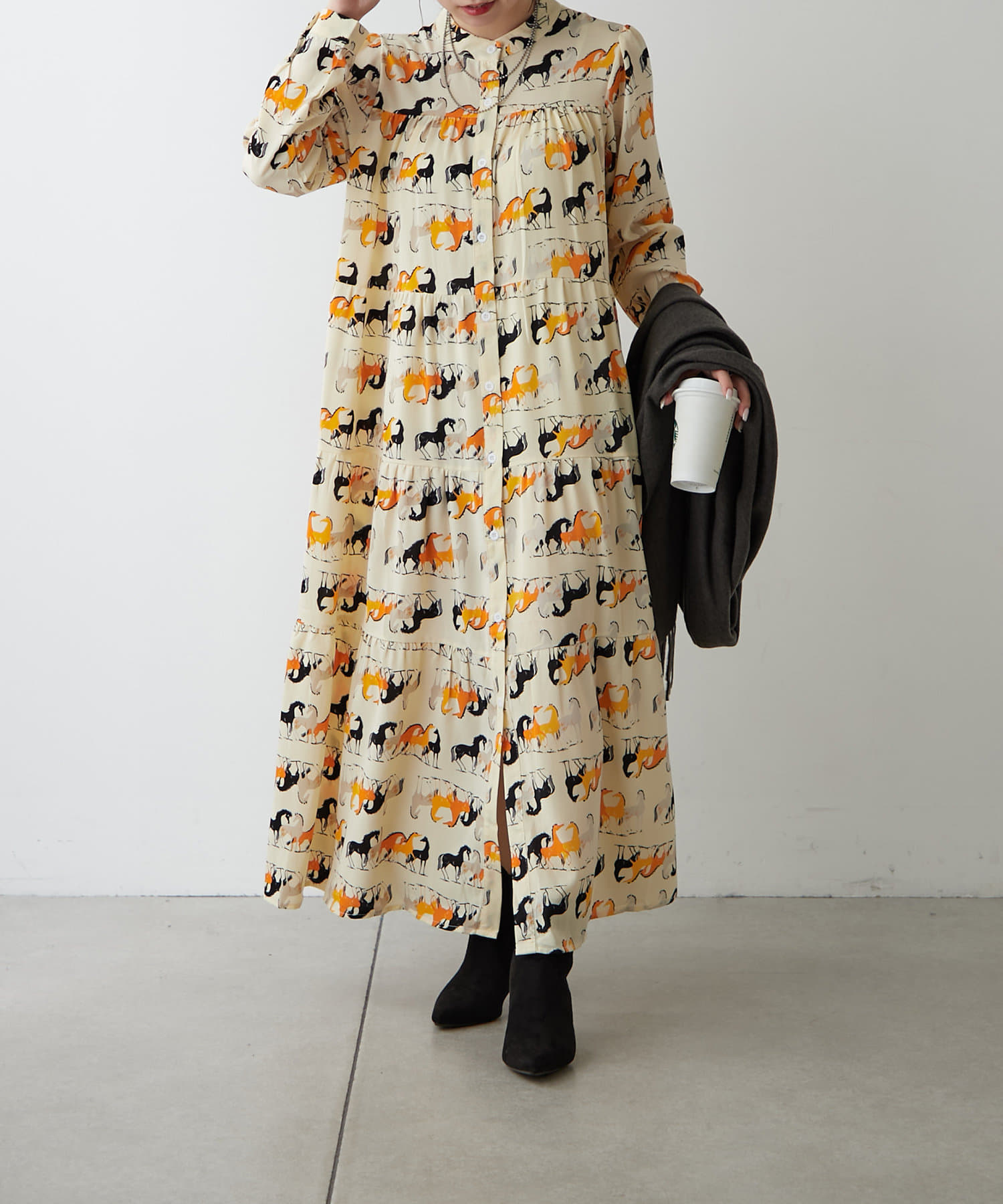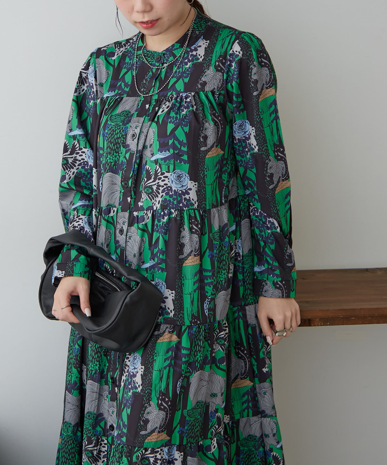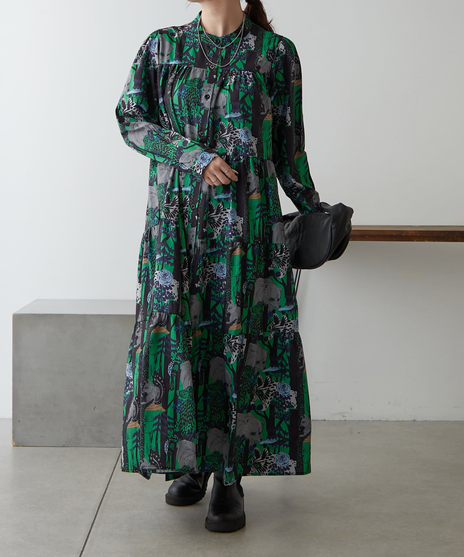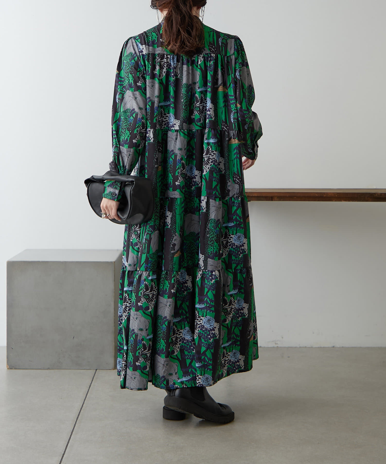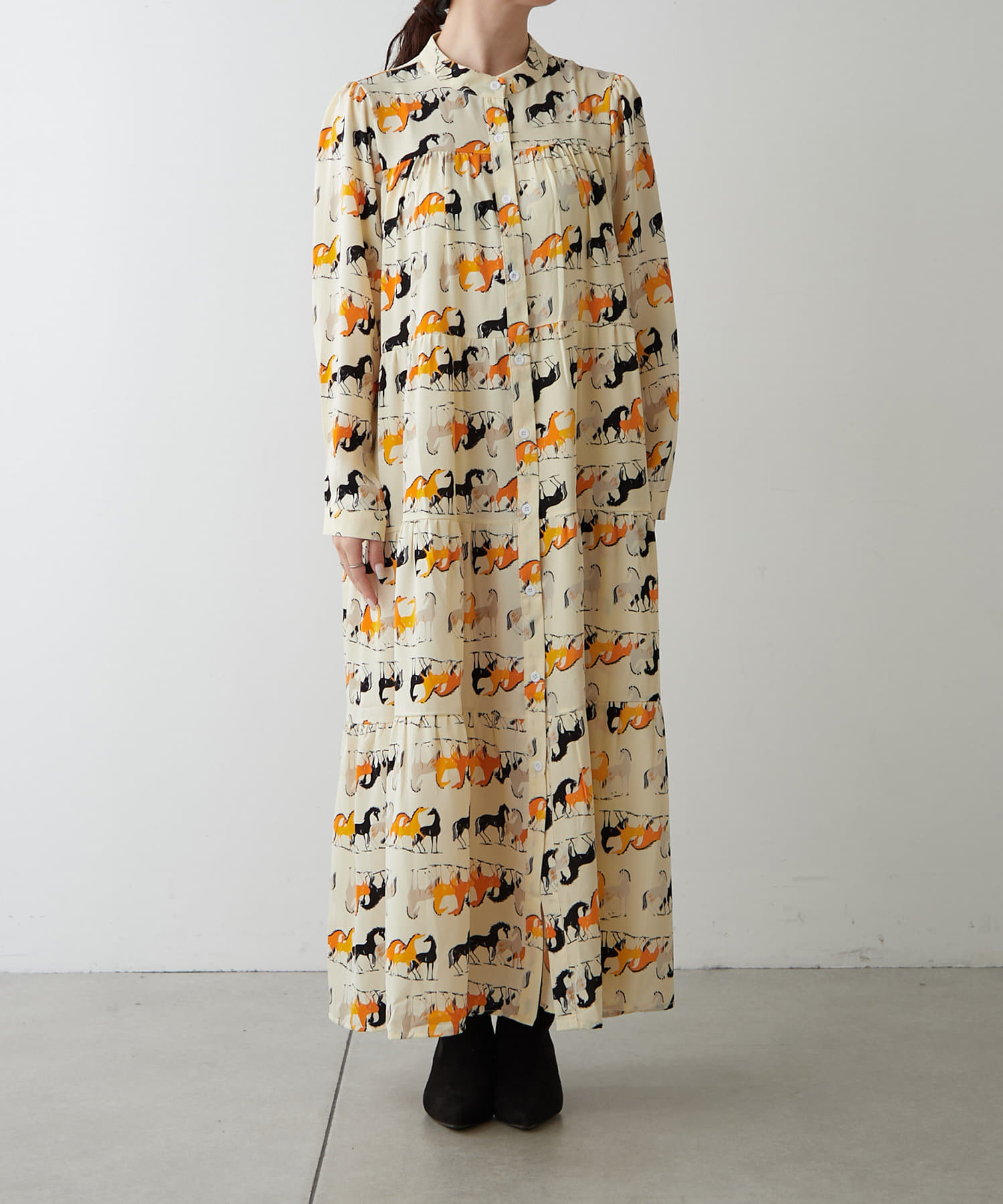・アソート柄でご用意したティアードワンピース。