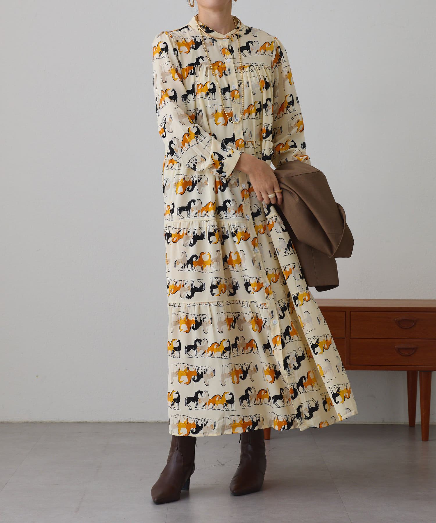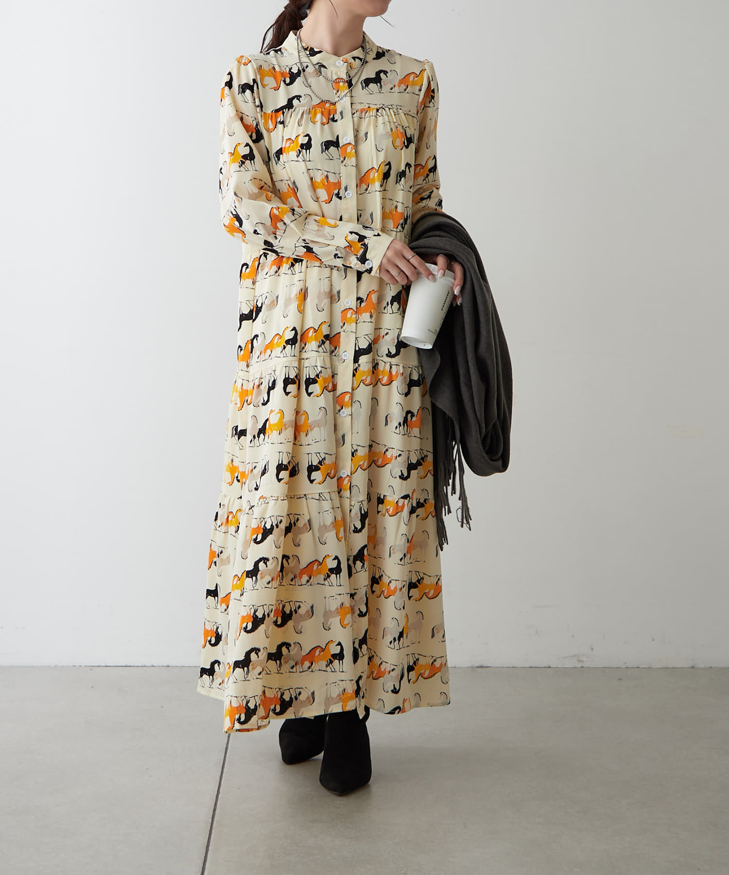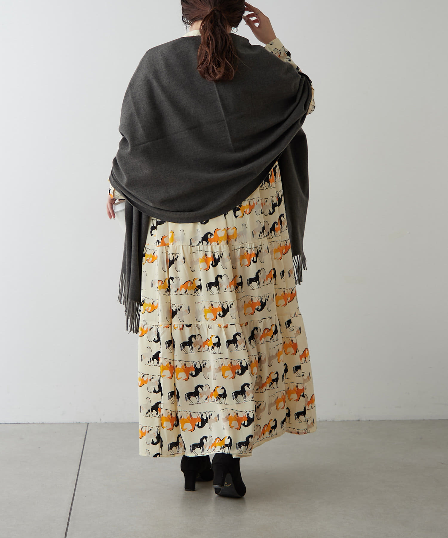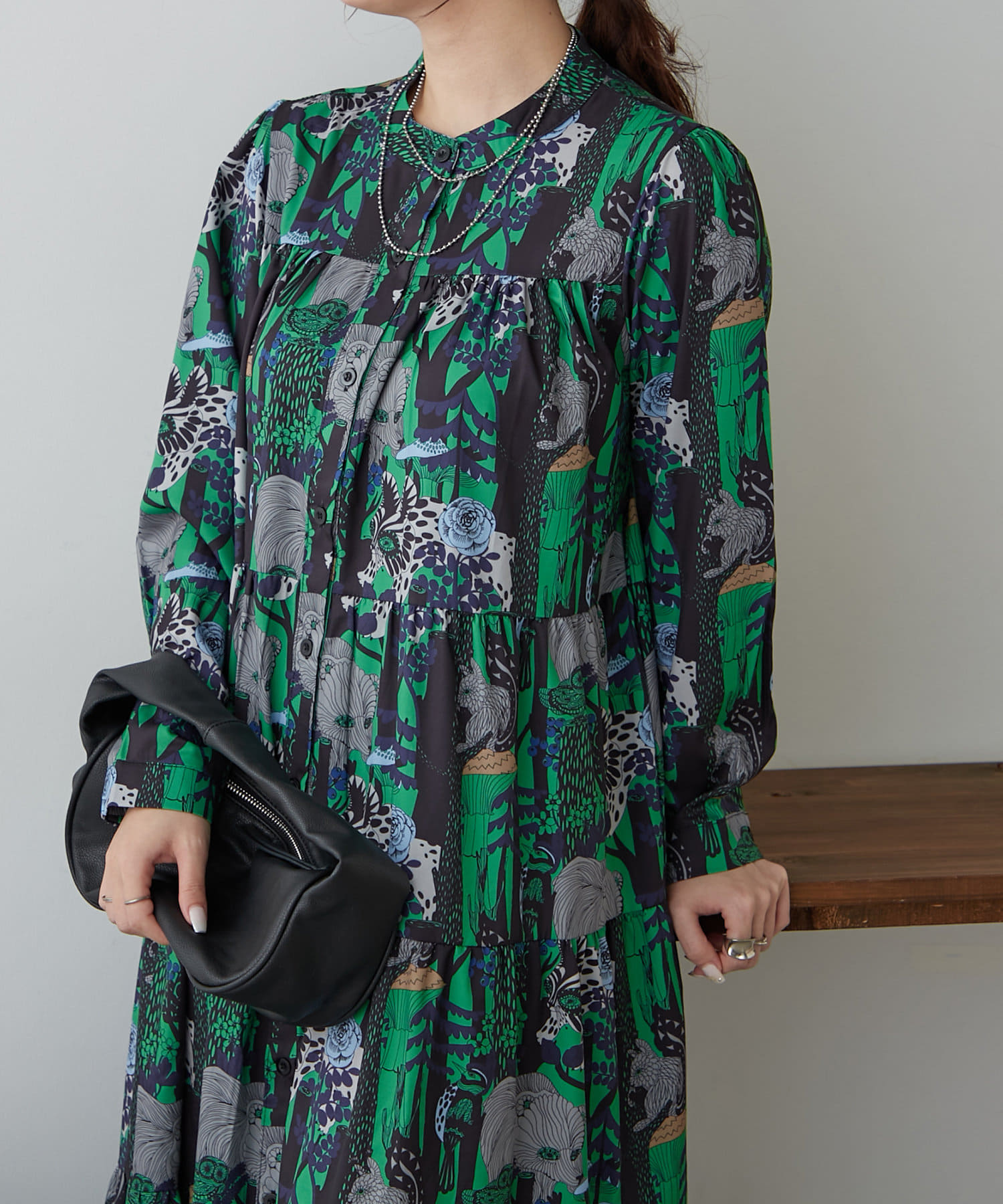 ・アソート柄でご用意したティアードワンピース。