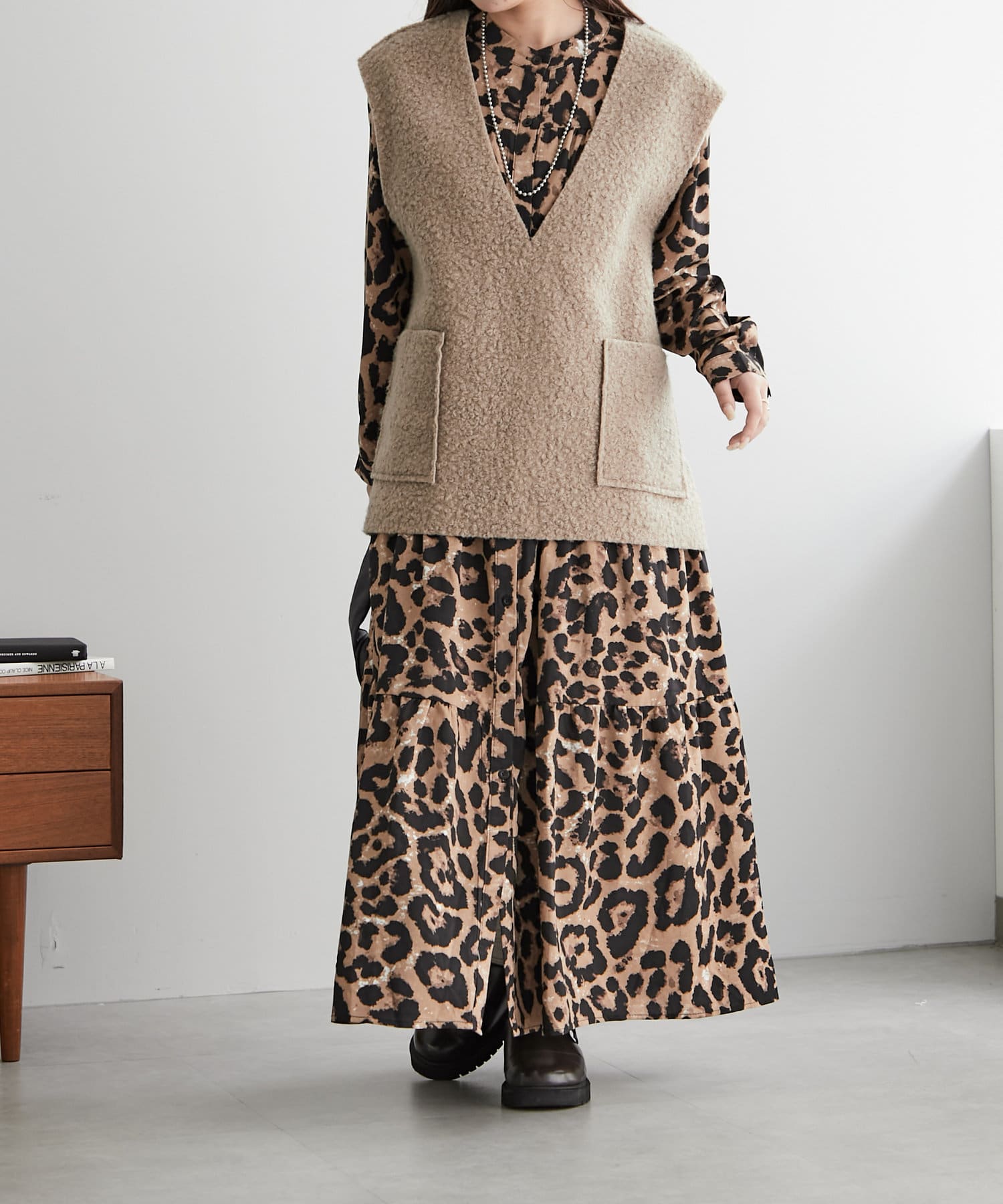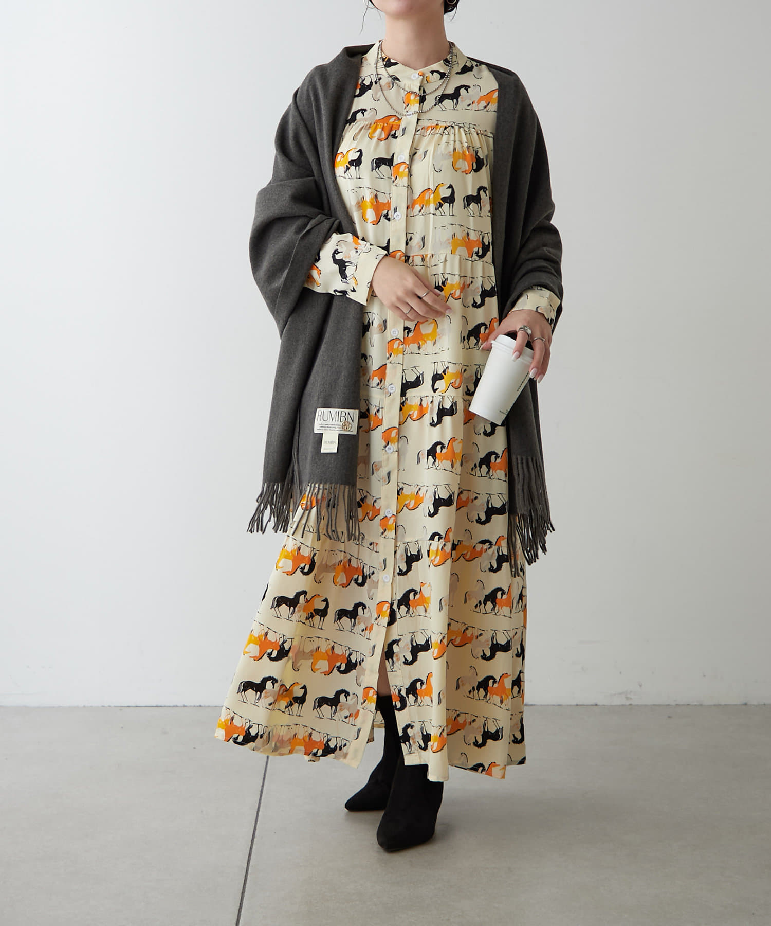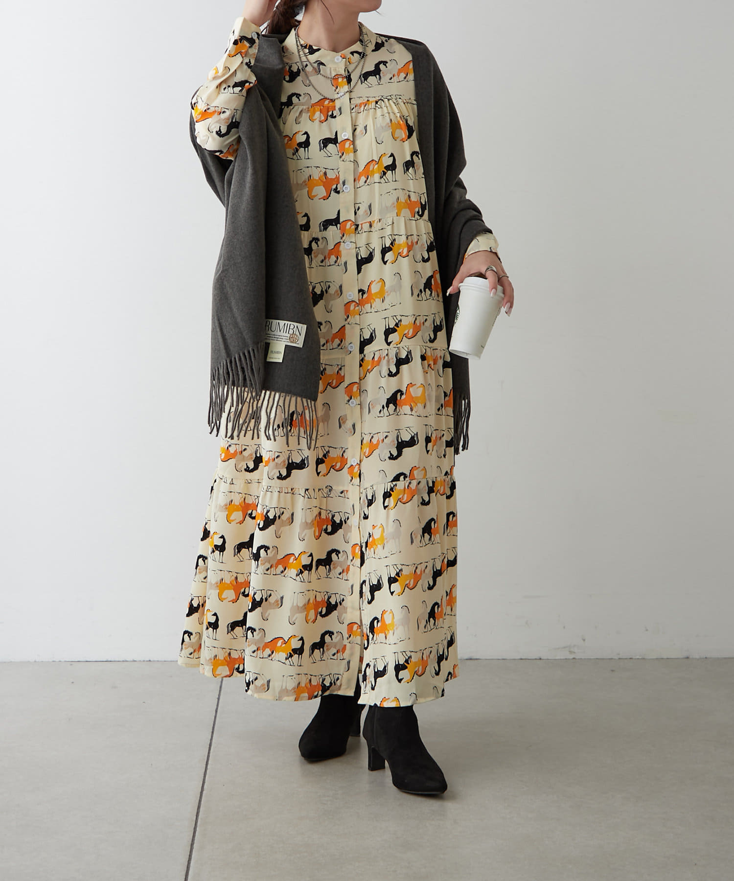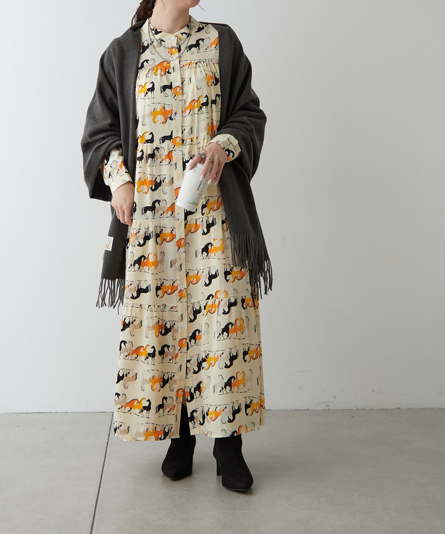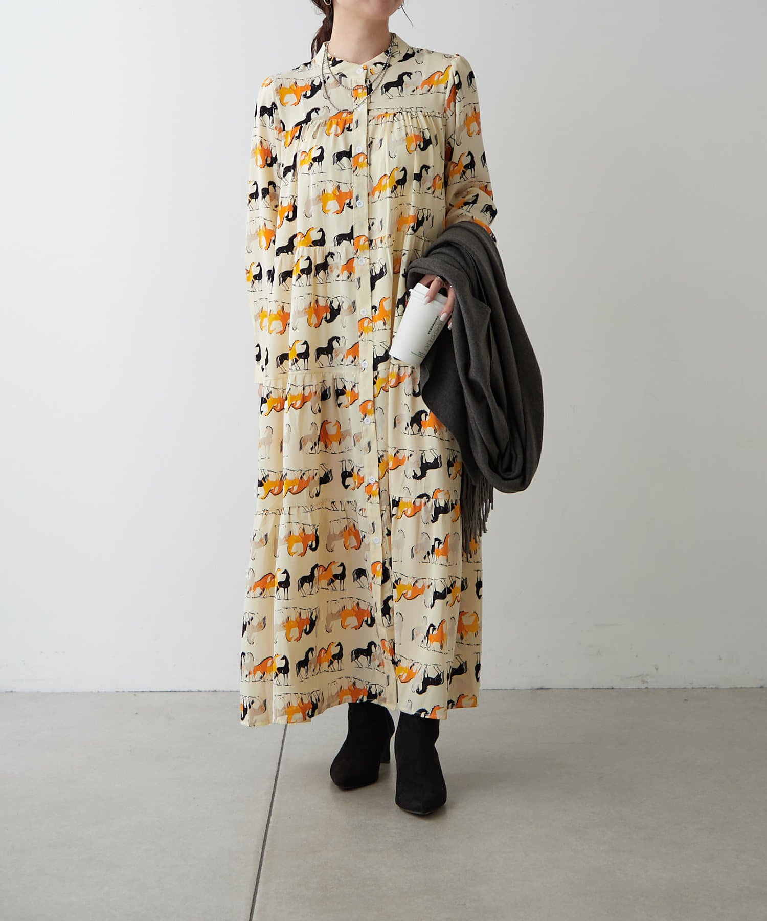 ・アソート柄でご用意したティアードワンピース。