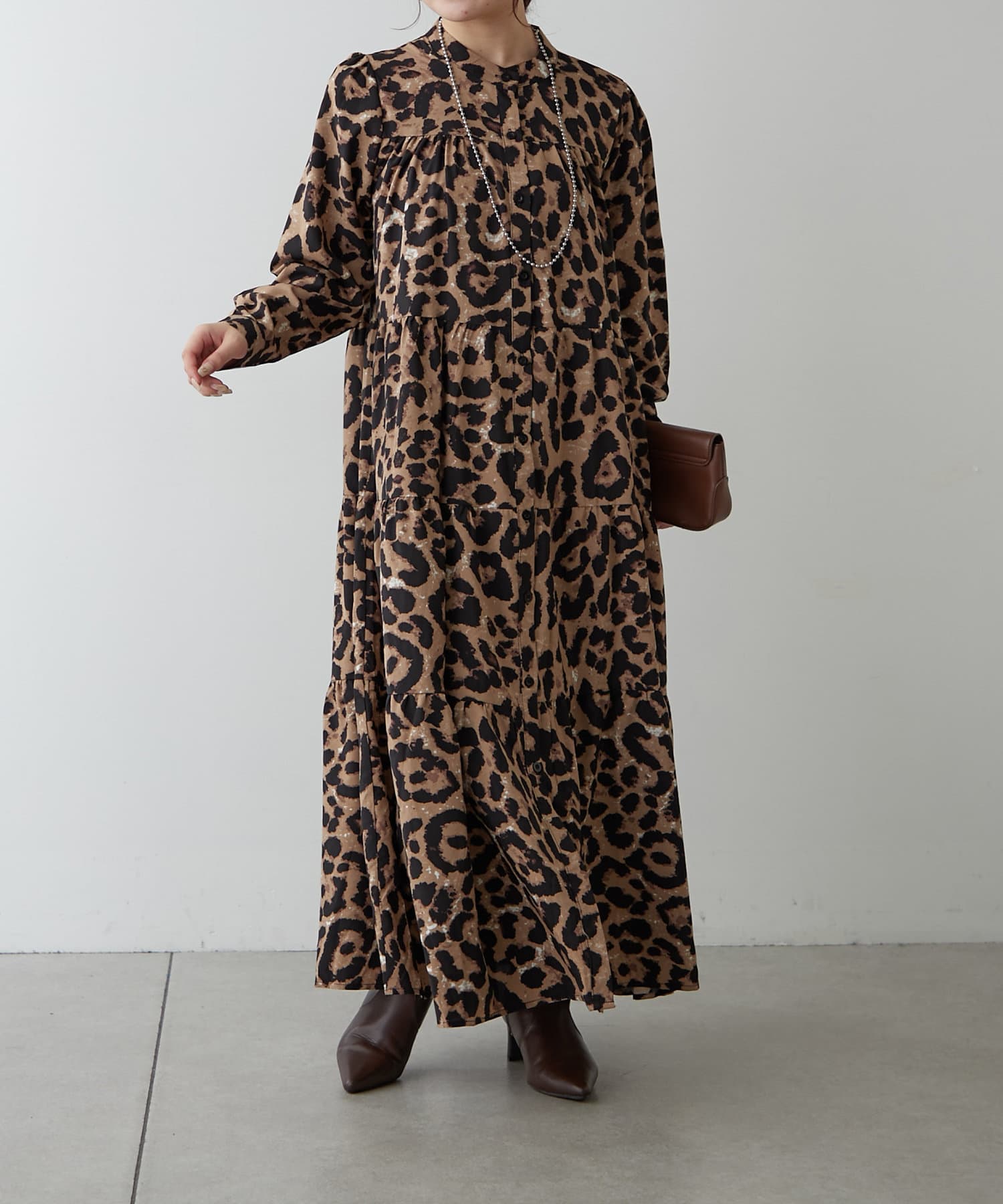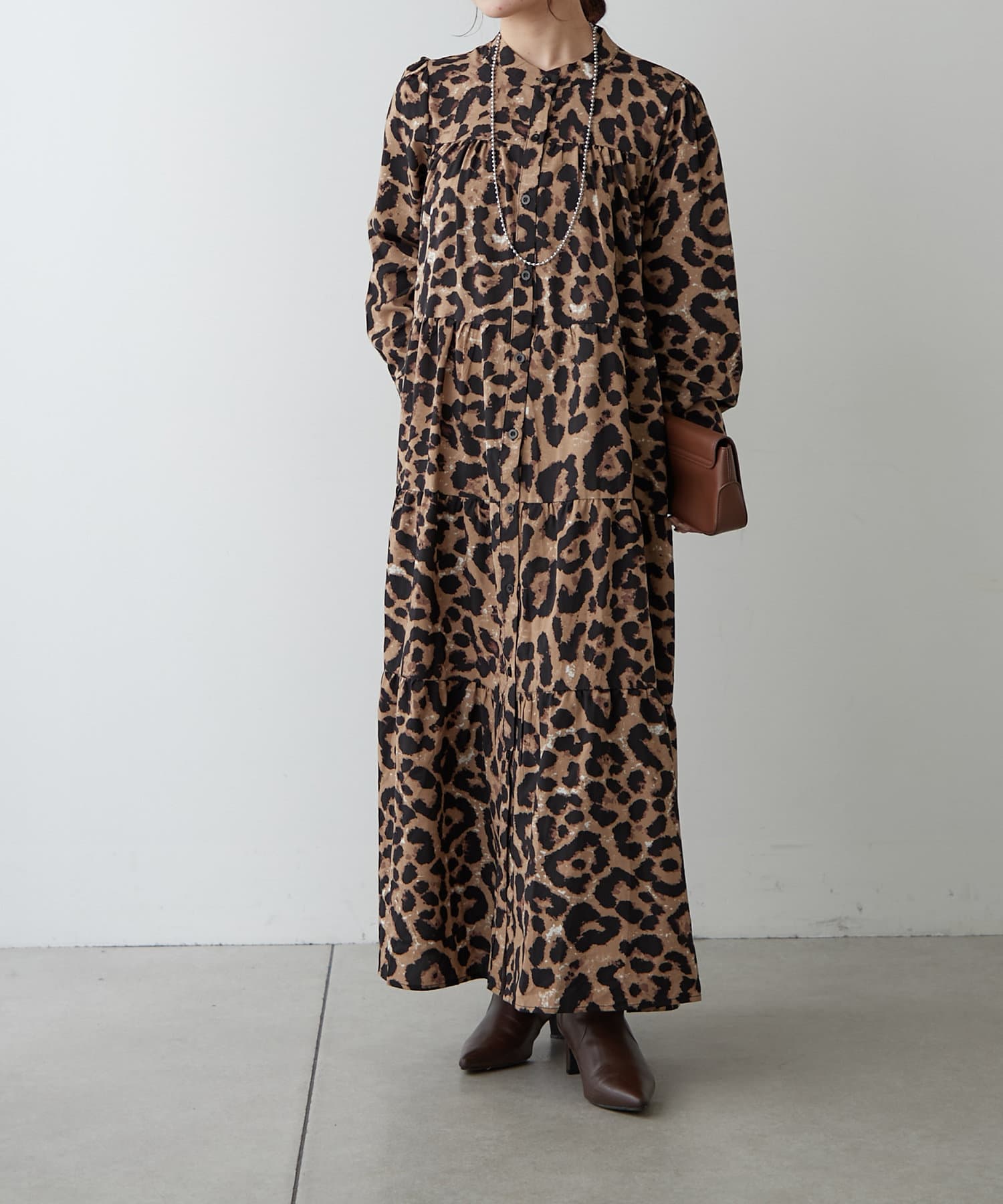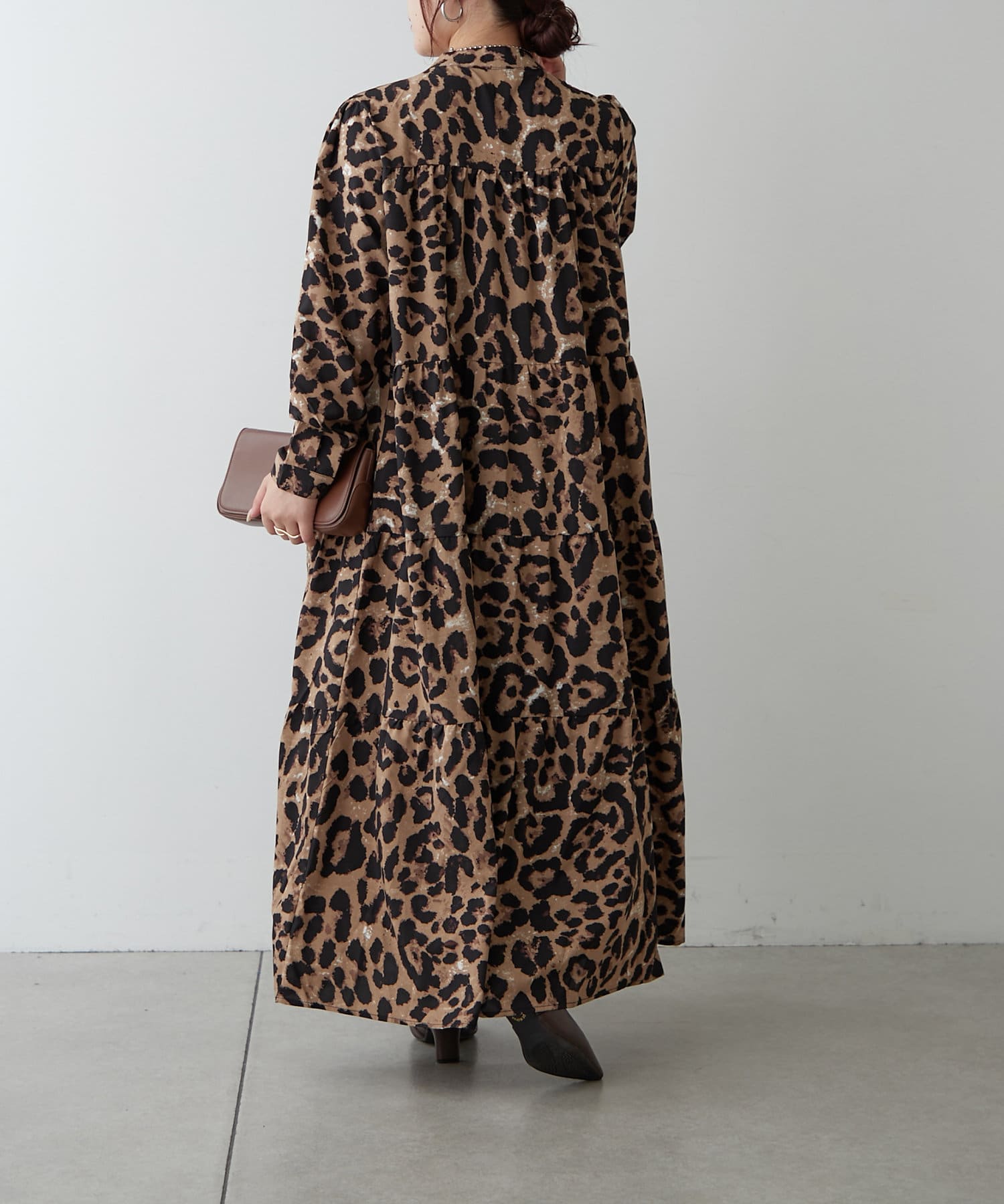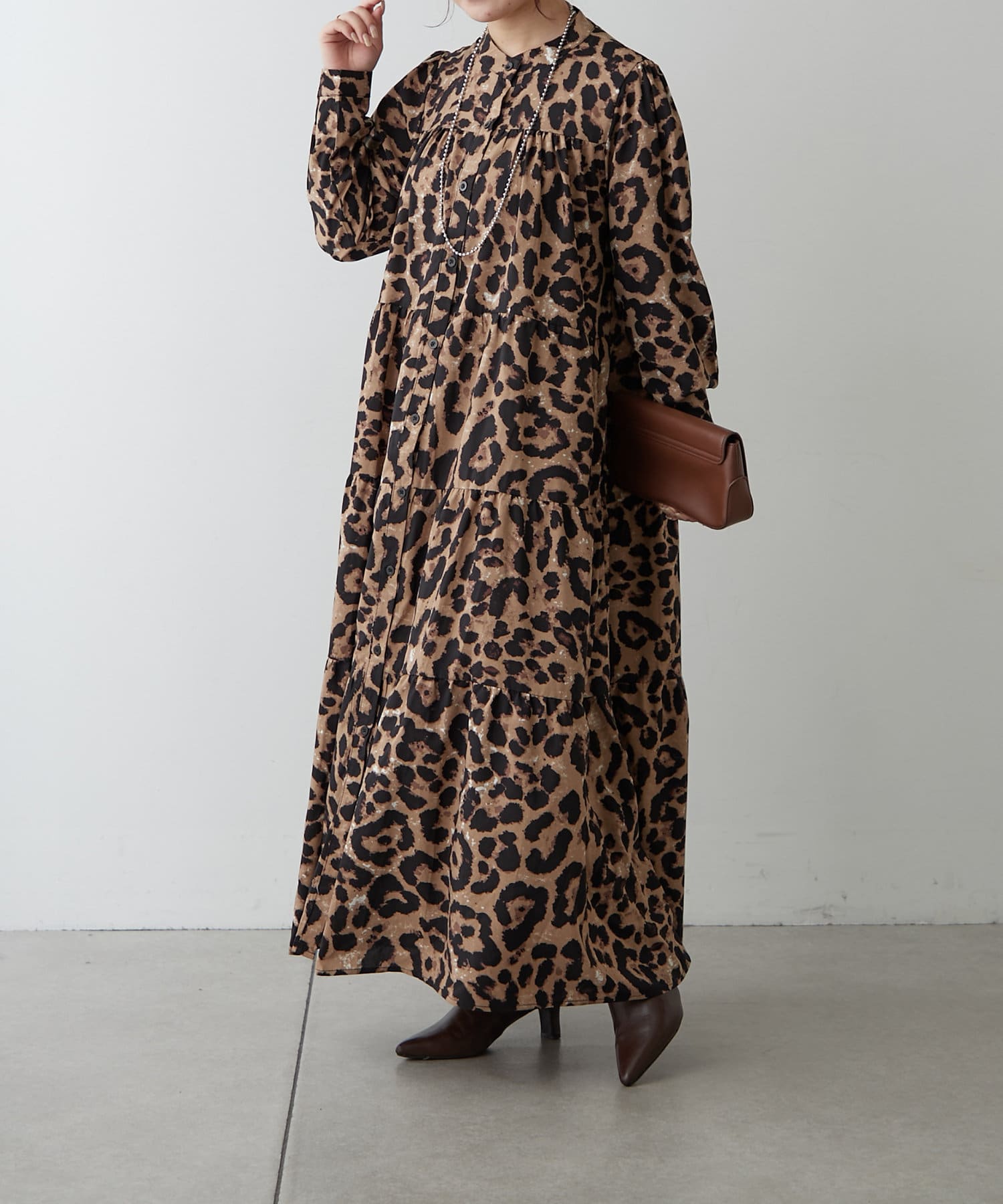 長袖ティアードギャザーワンピース