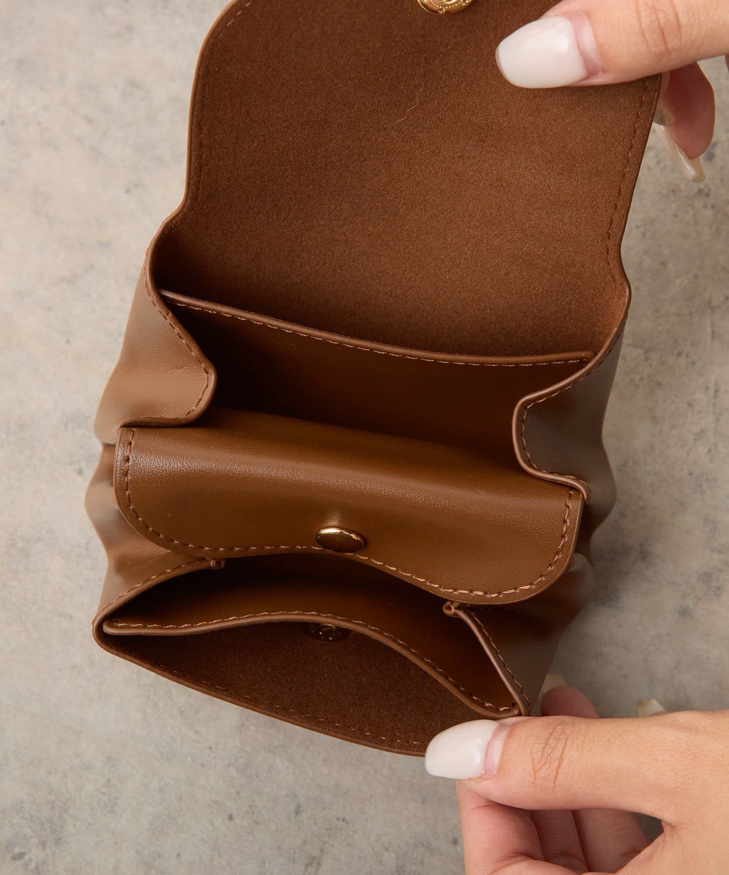 手のひらサイズでコンパクトな持ち運びしやすいミニサイズのお財布。