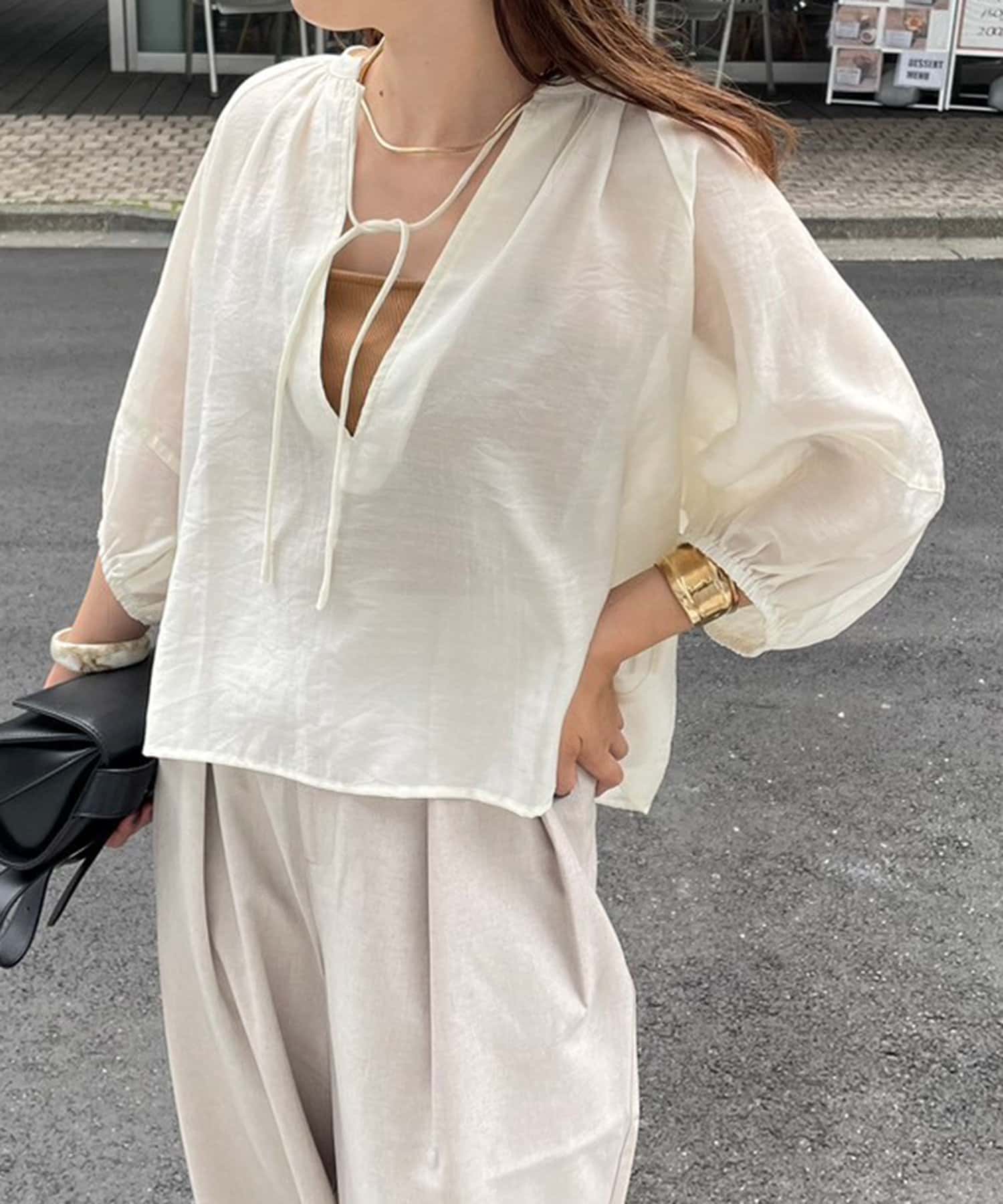 TOP > Remind me and forever > レディース > トップス > シャツ/ブラウス(ボタン) > 【@_misato___監修】ランタンスリーブブラウス