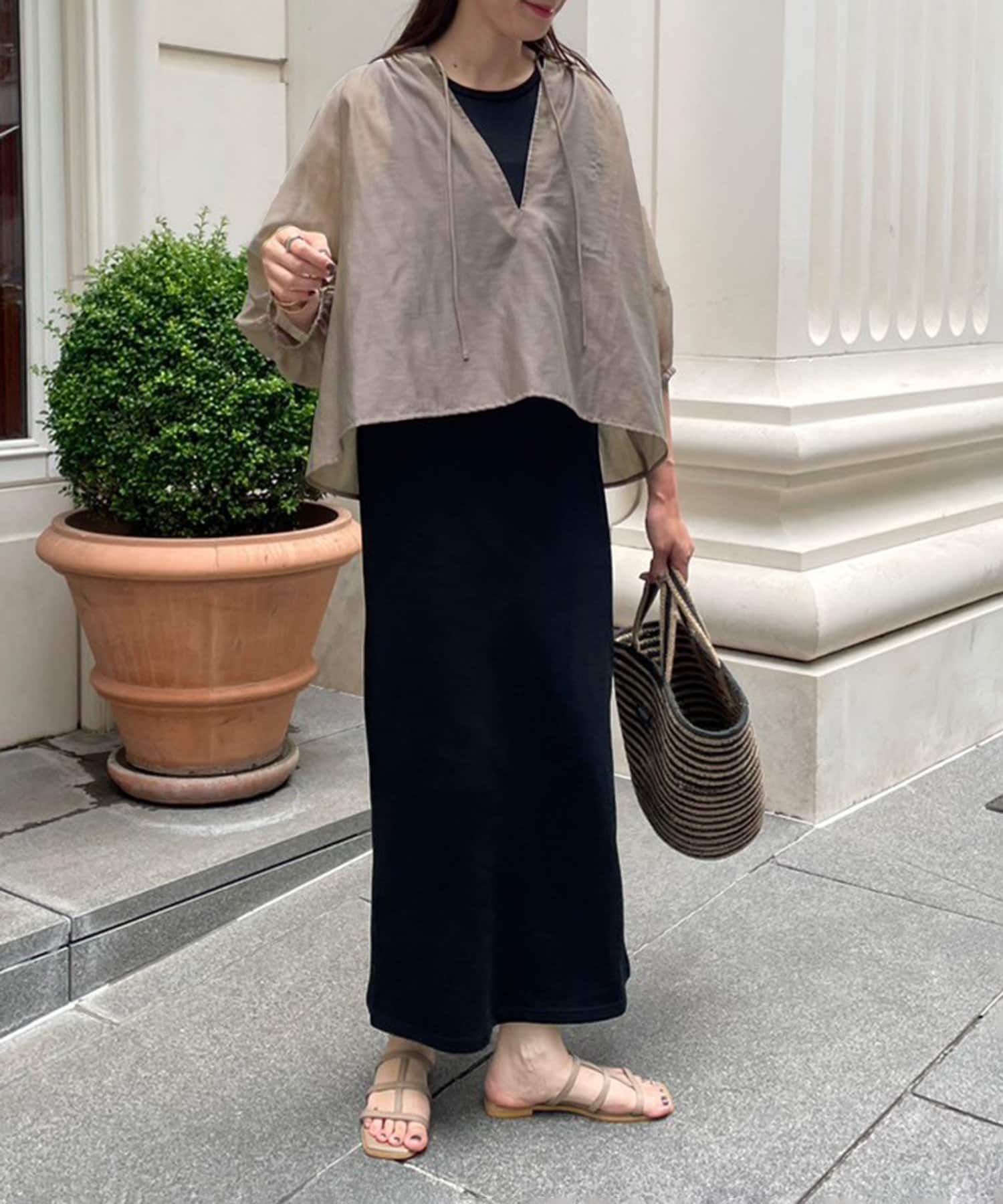 パンツでもワンピースでも何にでも合わせやすくこれ一枚でキマるので買ってよかった