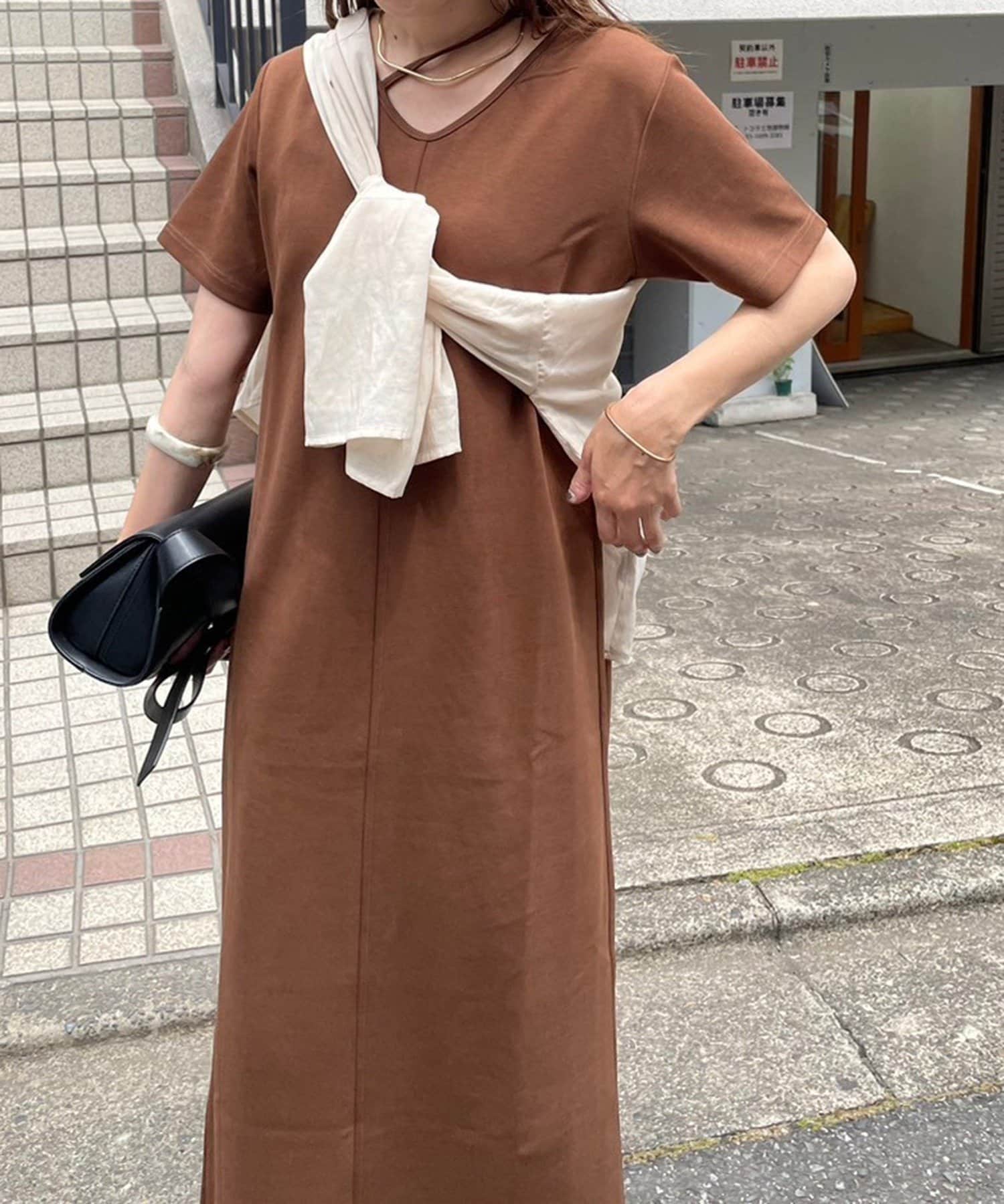 ・一枚着はもちろん、ベストやジャケットを羽織った着こなしが楽しめるのでロングシーズン着用できる万能ワンピースです。