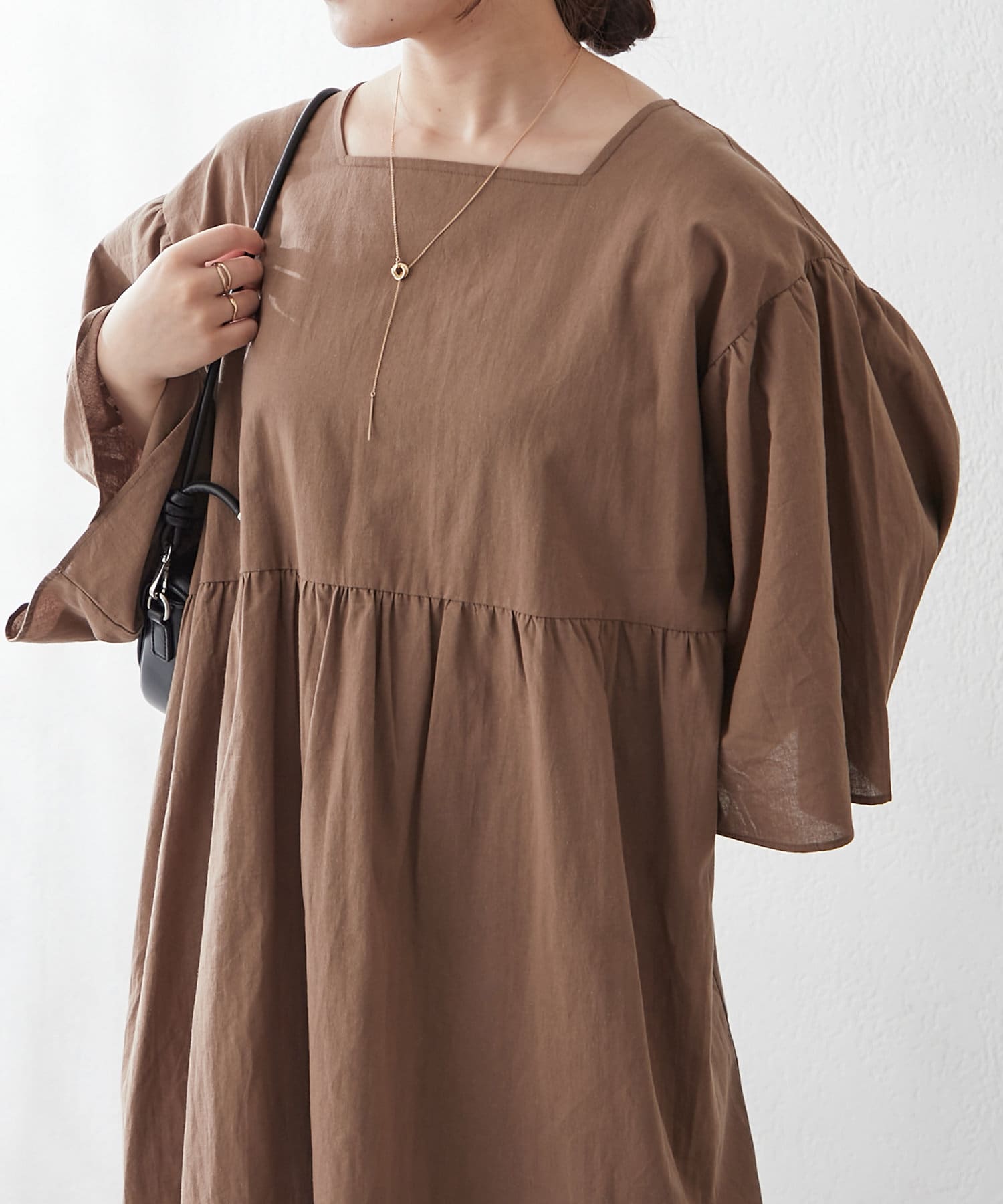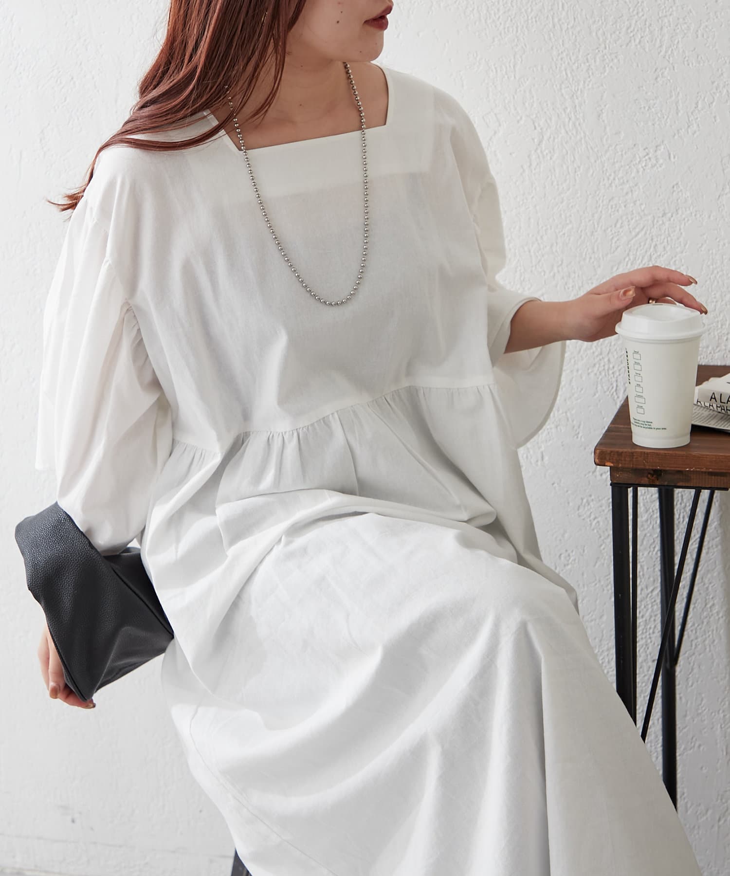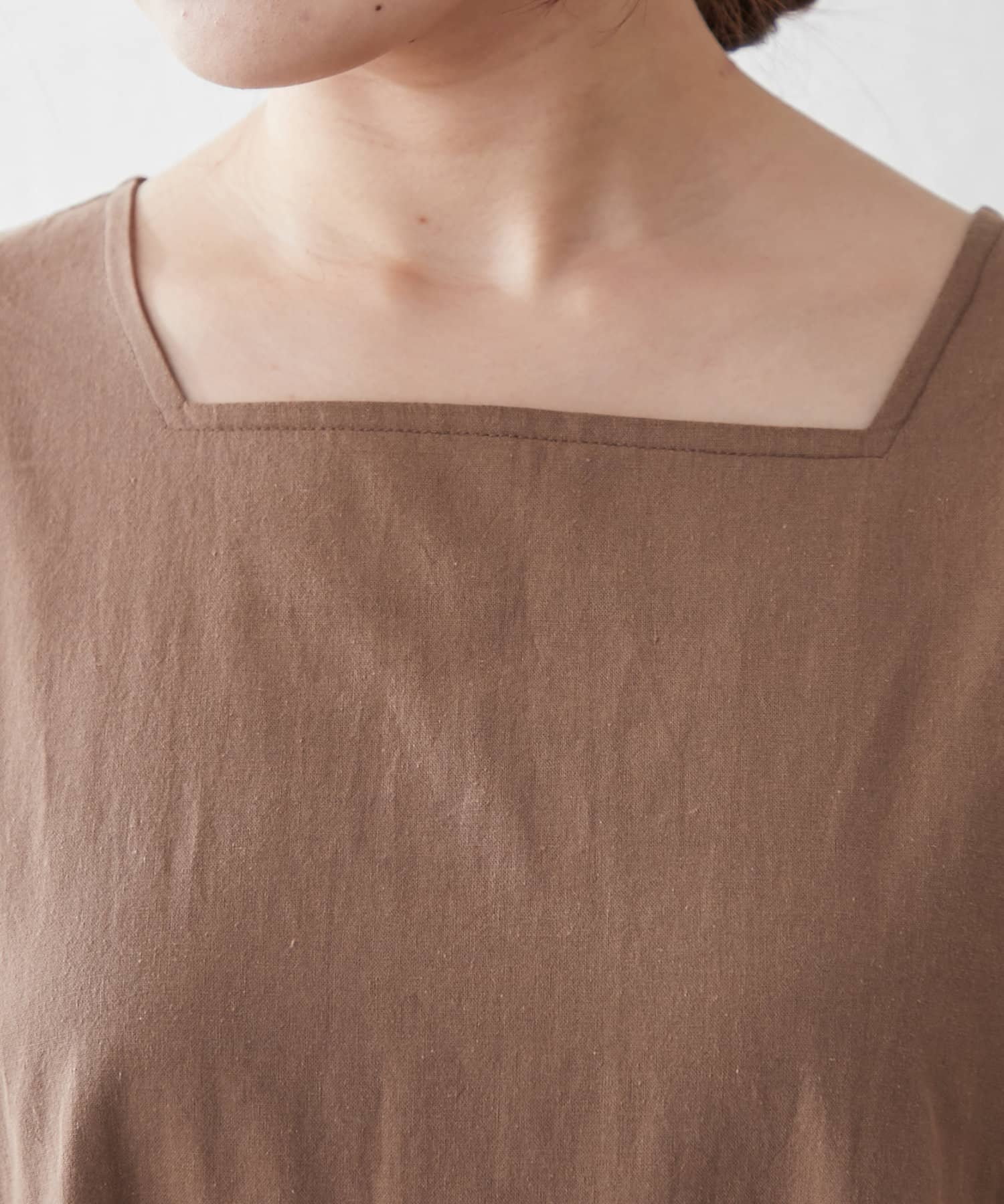 ・スクエアネックで首元すっきり、お顔は綺麗見え◎