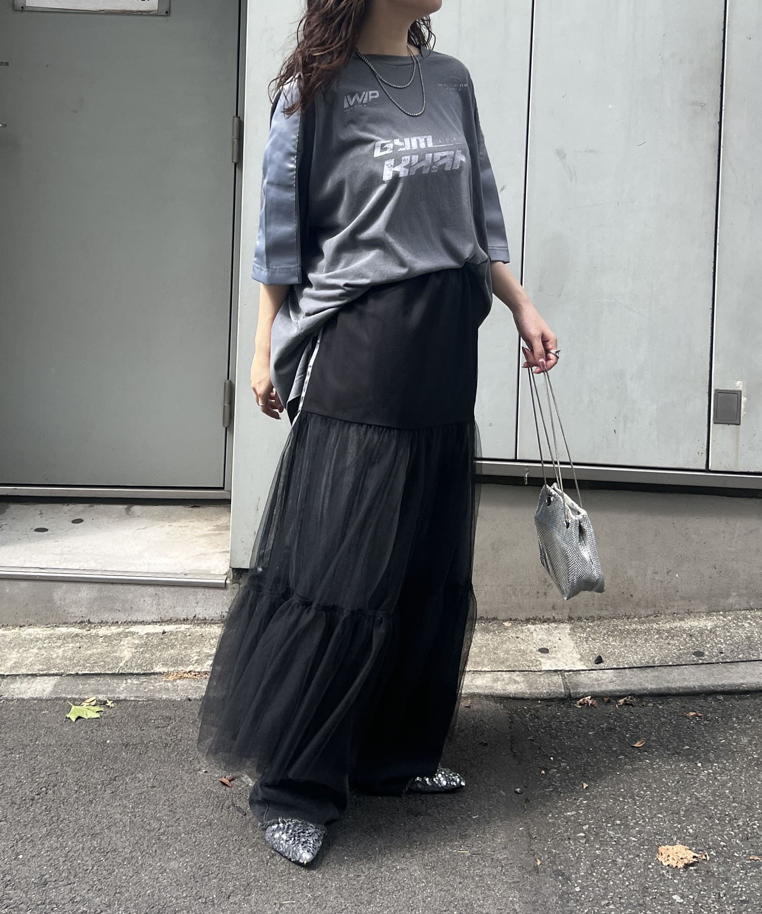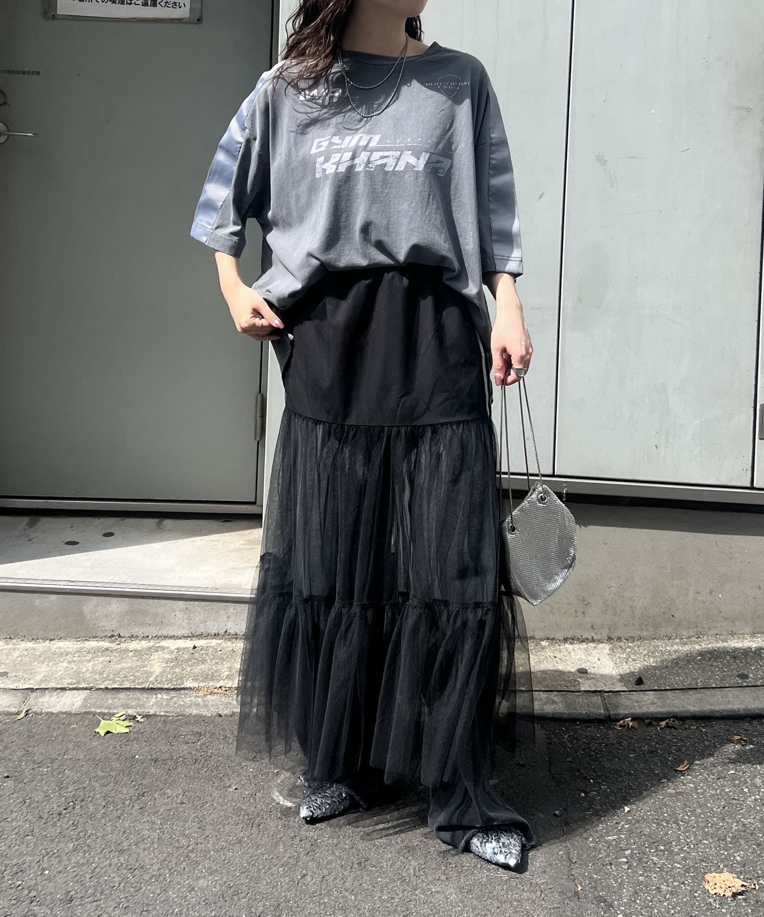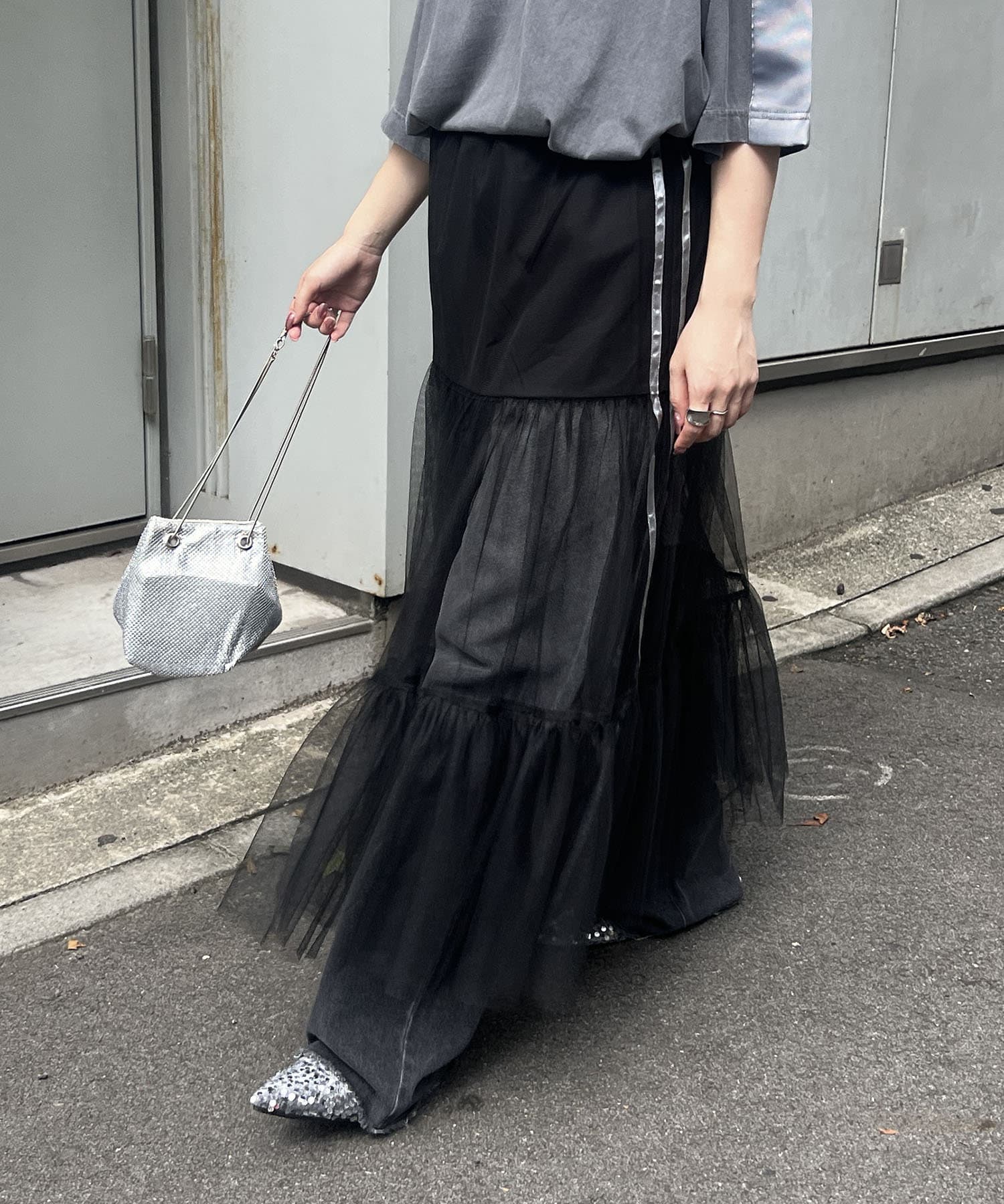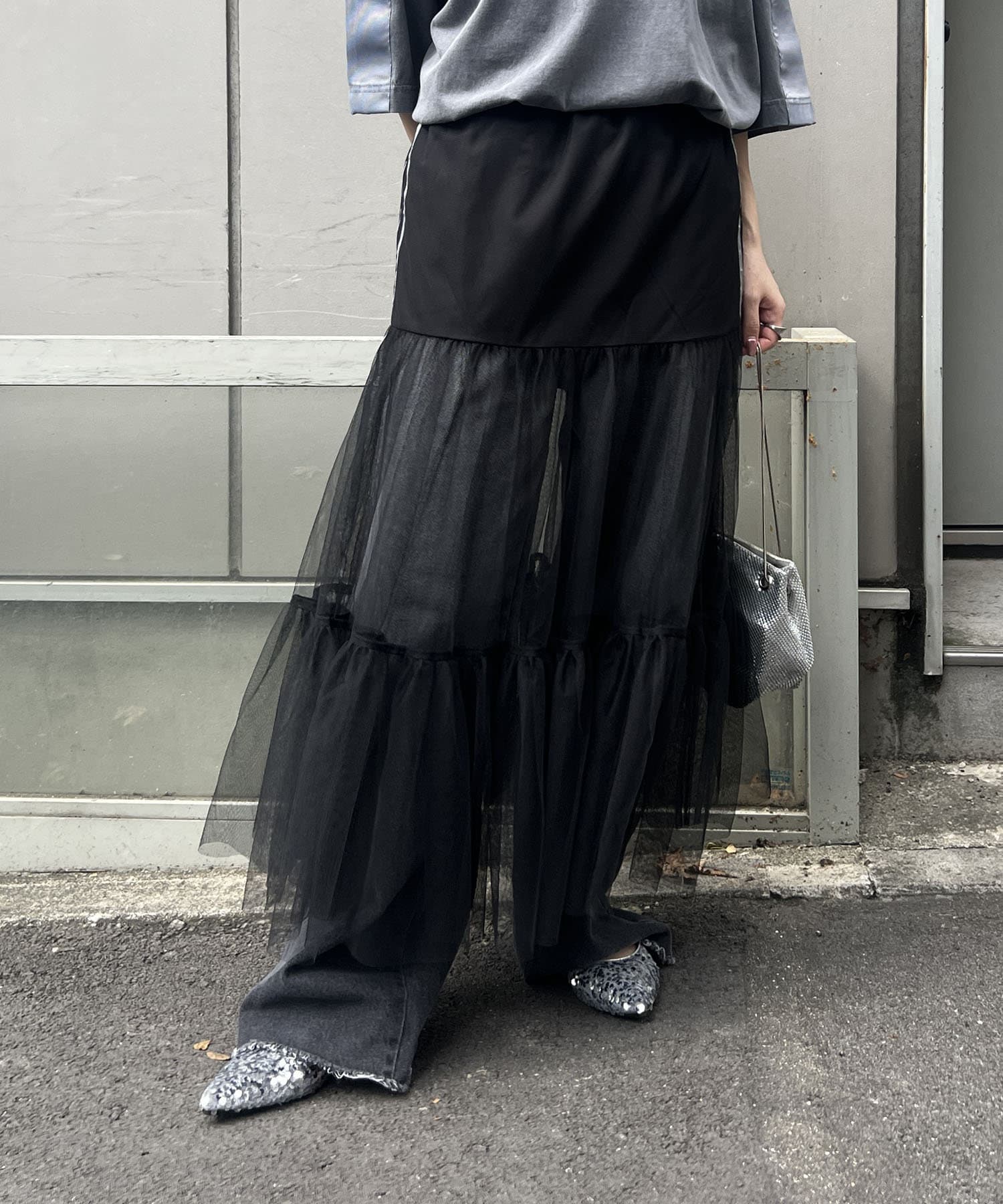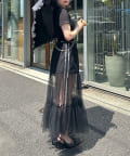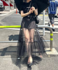 ・歩くたびふわっと揺れるチュールが可愛いスカート。