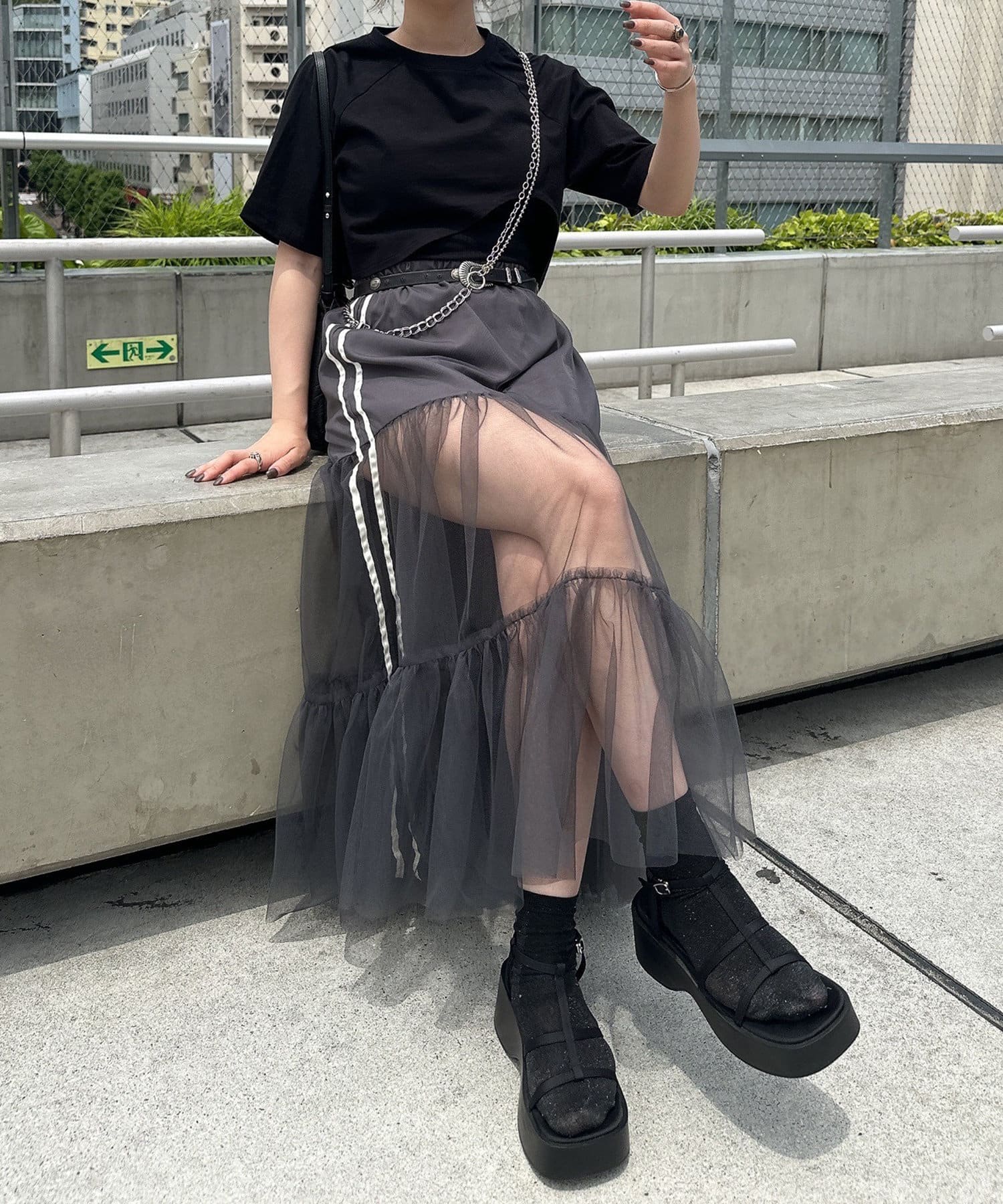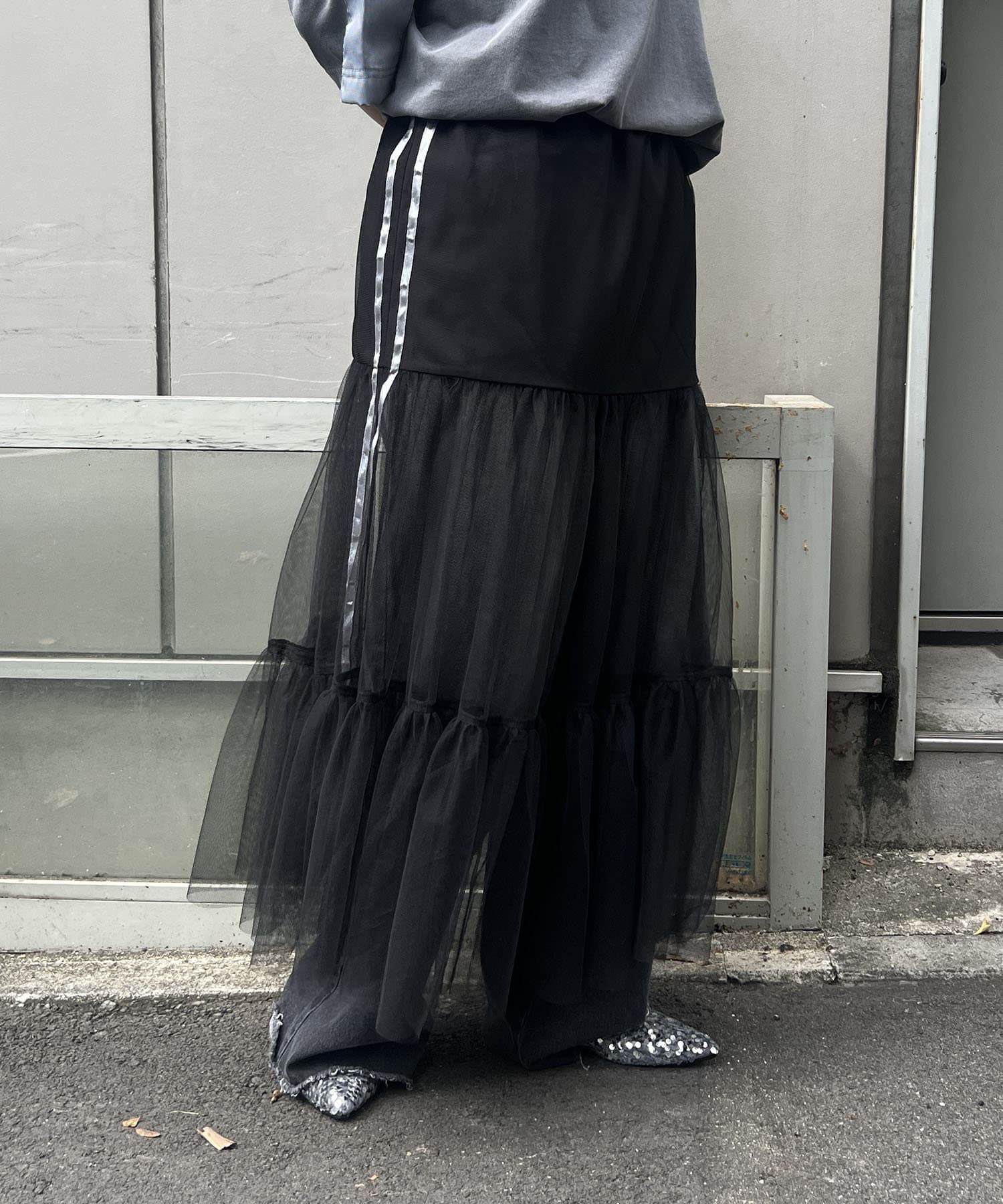 【NUNIFE】ライン入りチュールスカート
