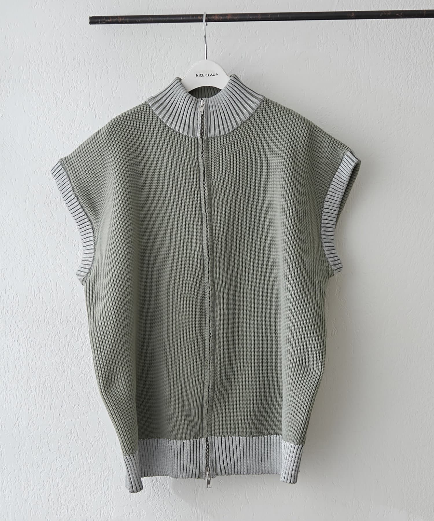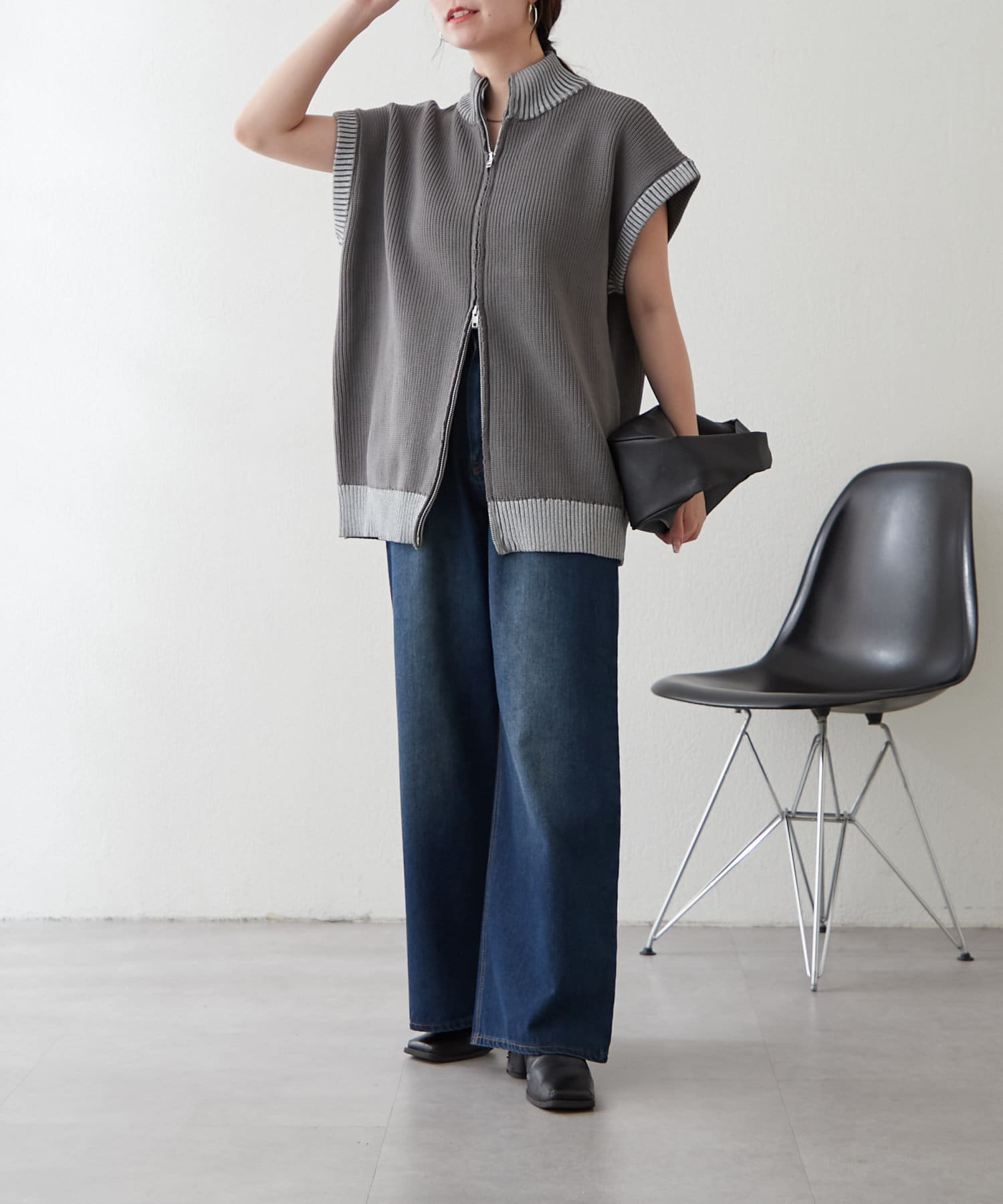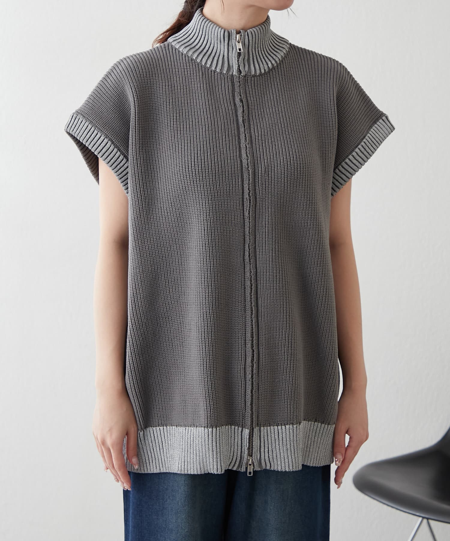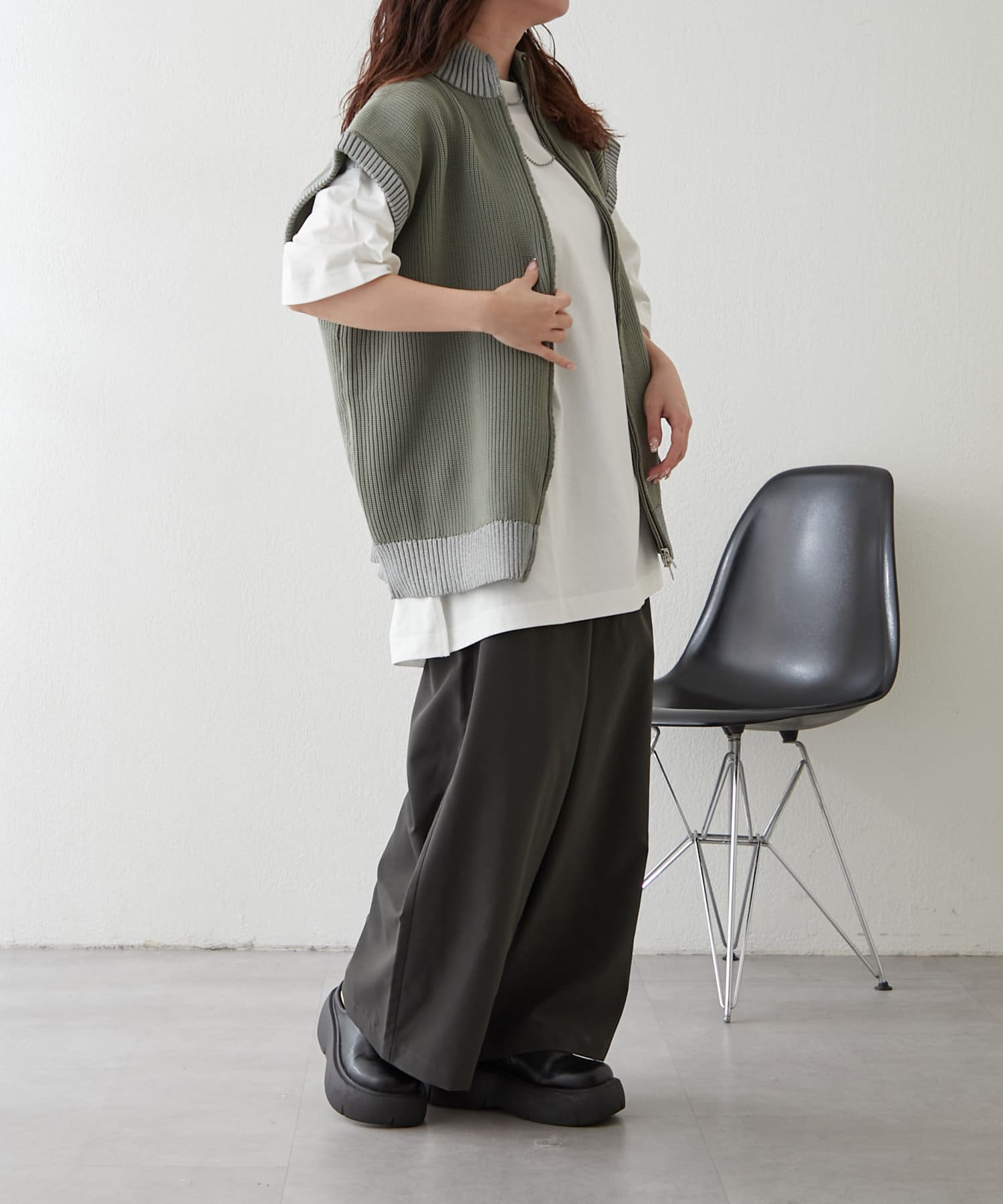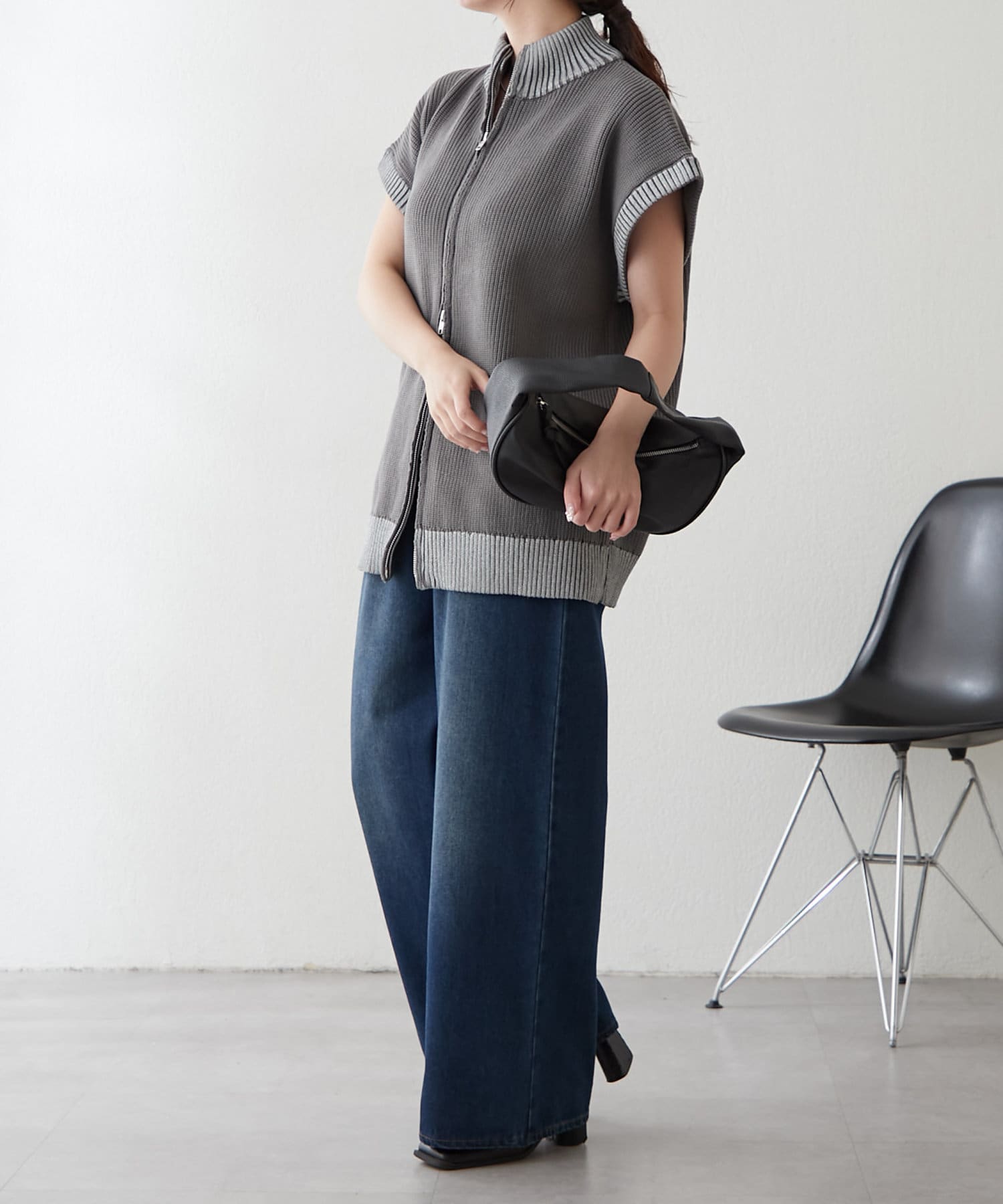 ・ゆとりのあるボクシーなシルエットでWジップで変化を付けられるニットベスト。