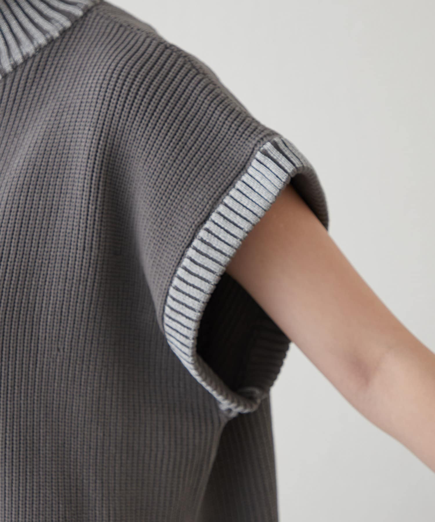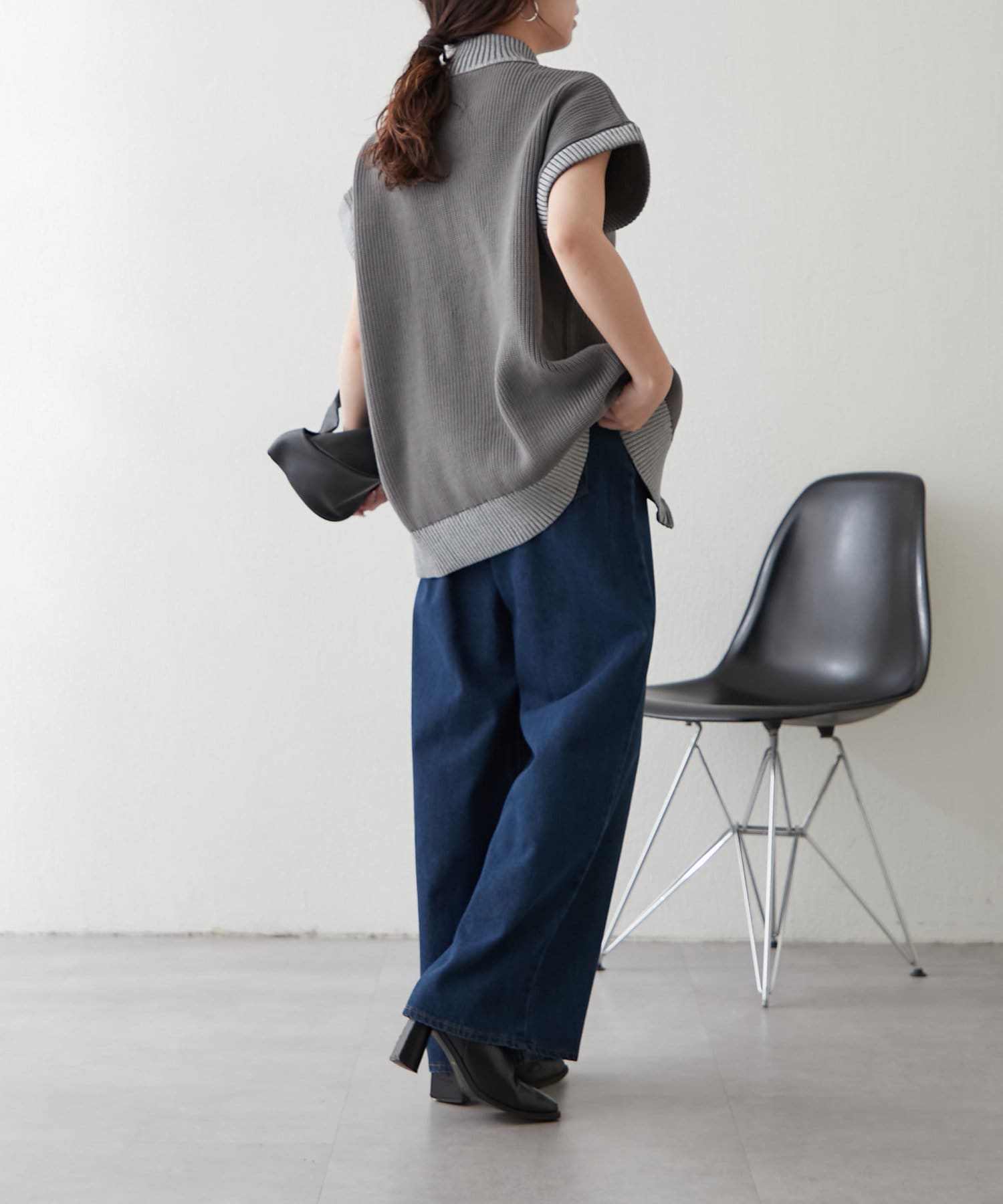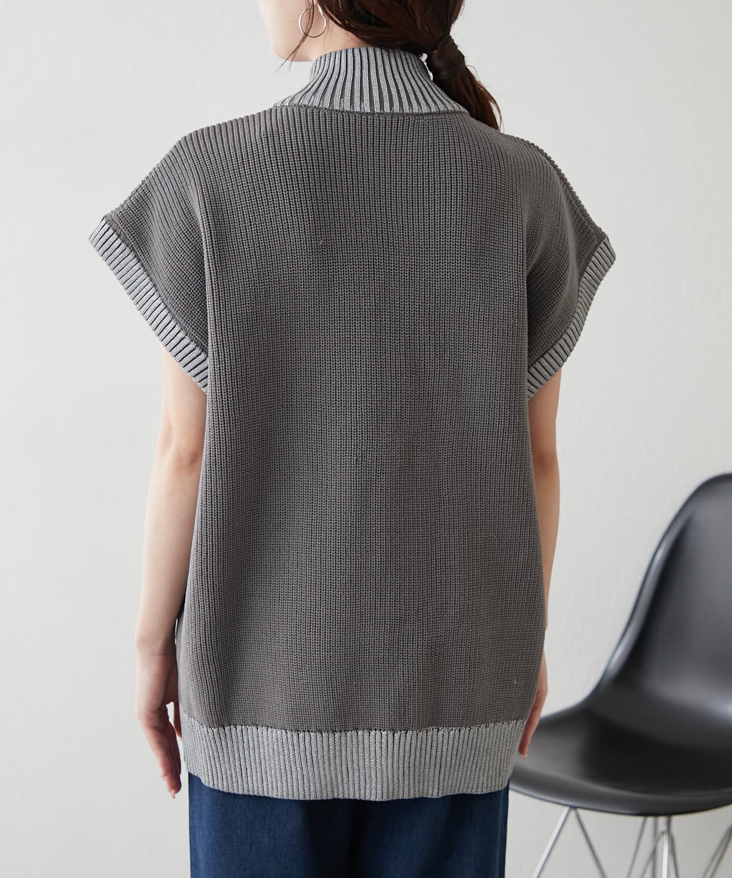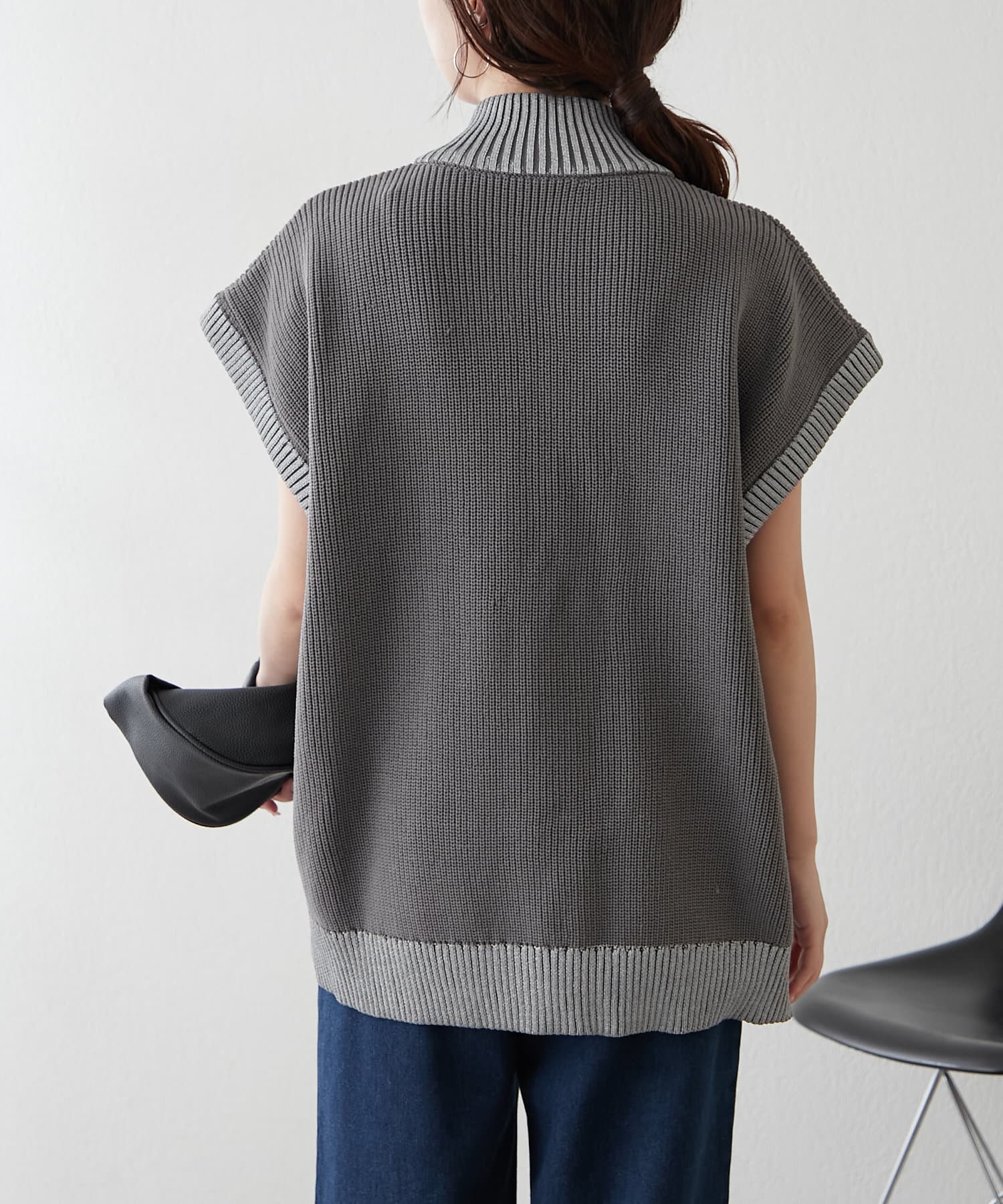 ・ゆとりのあるボクシーなシルエットでWジップで変化を付けられるニットベスト。
