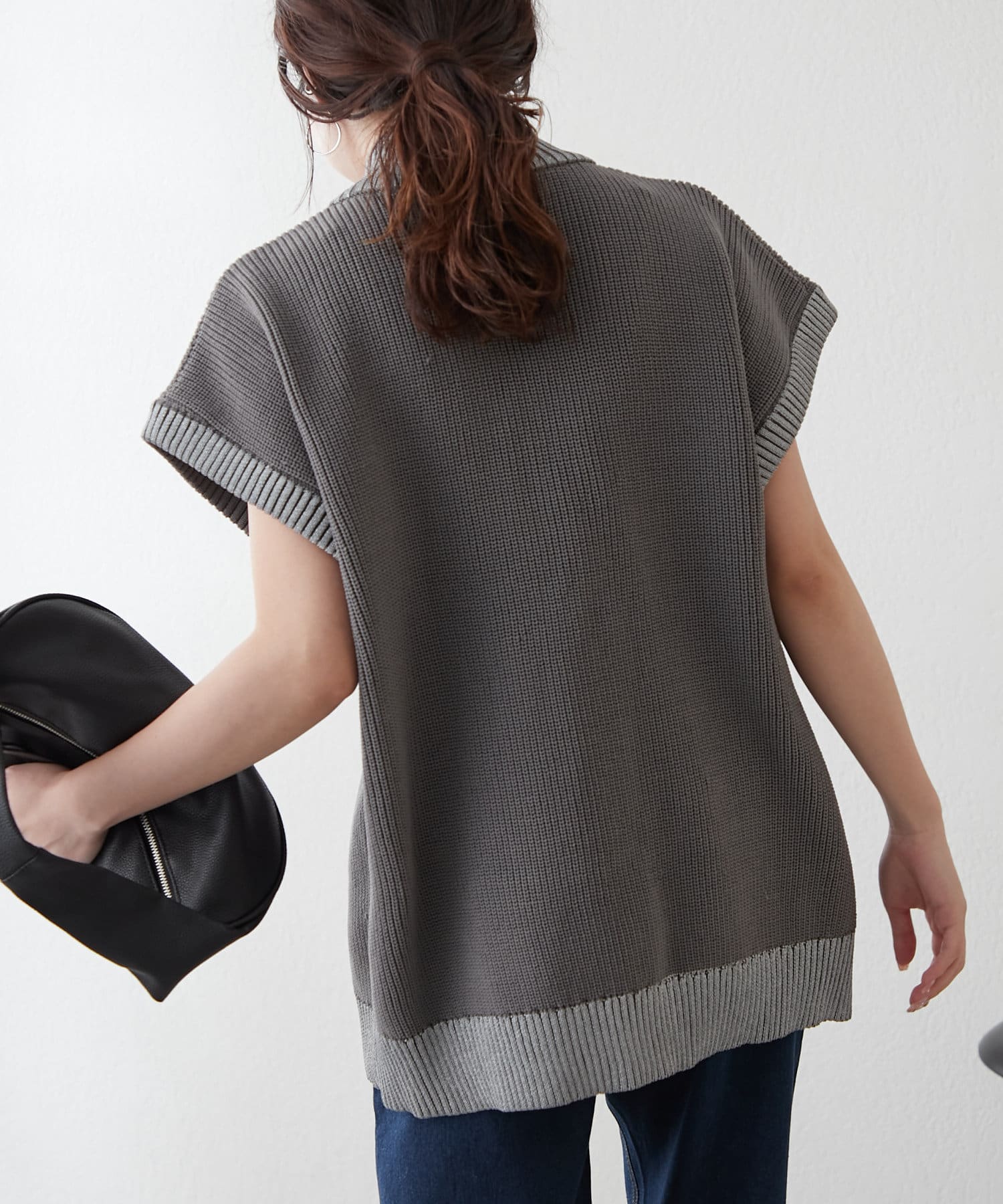 トップスとしてはもちろん、前を開けてジレのように着こなすのも◎