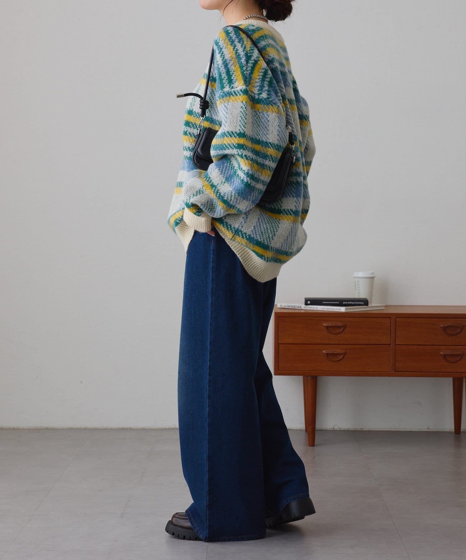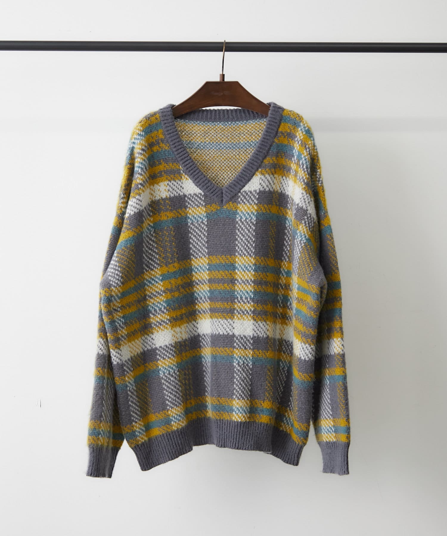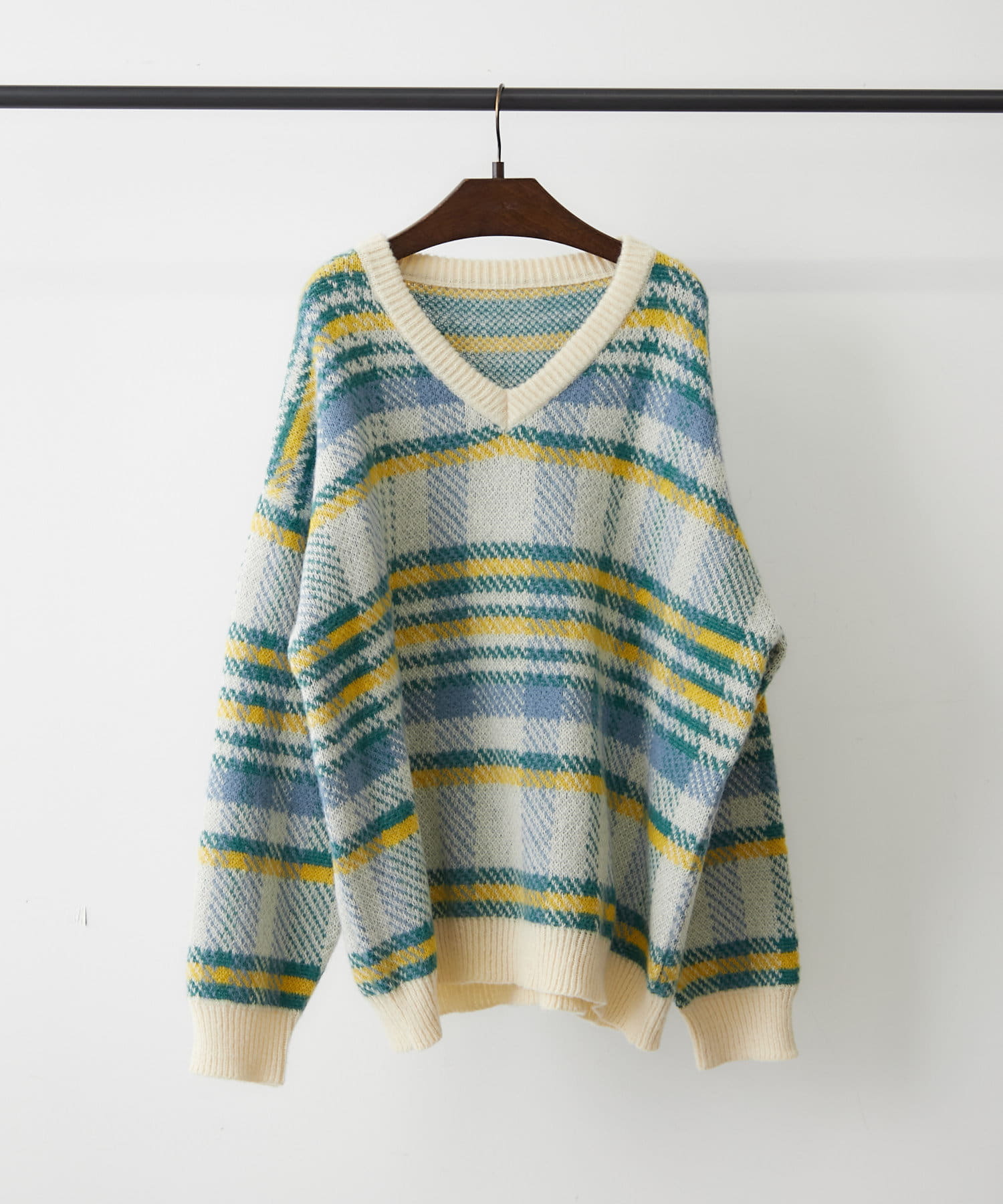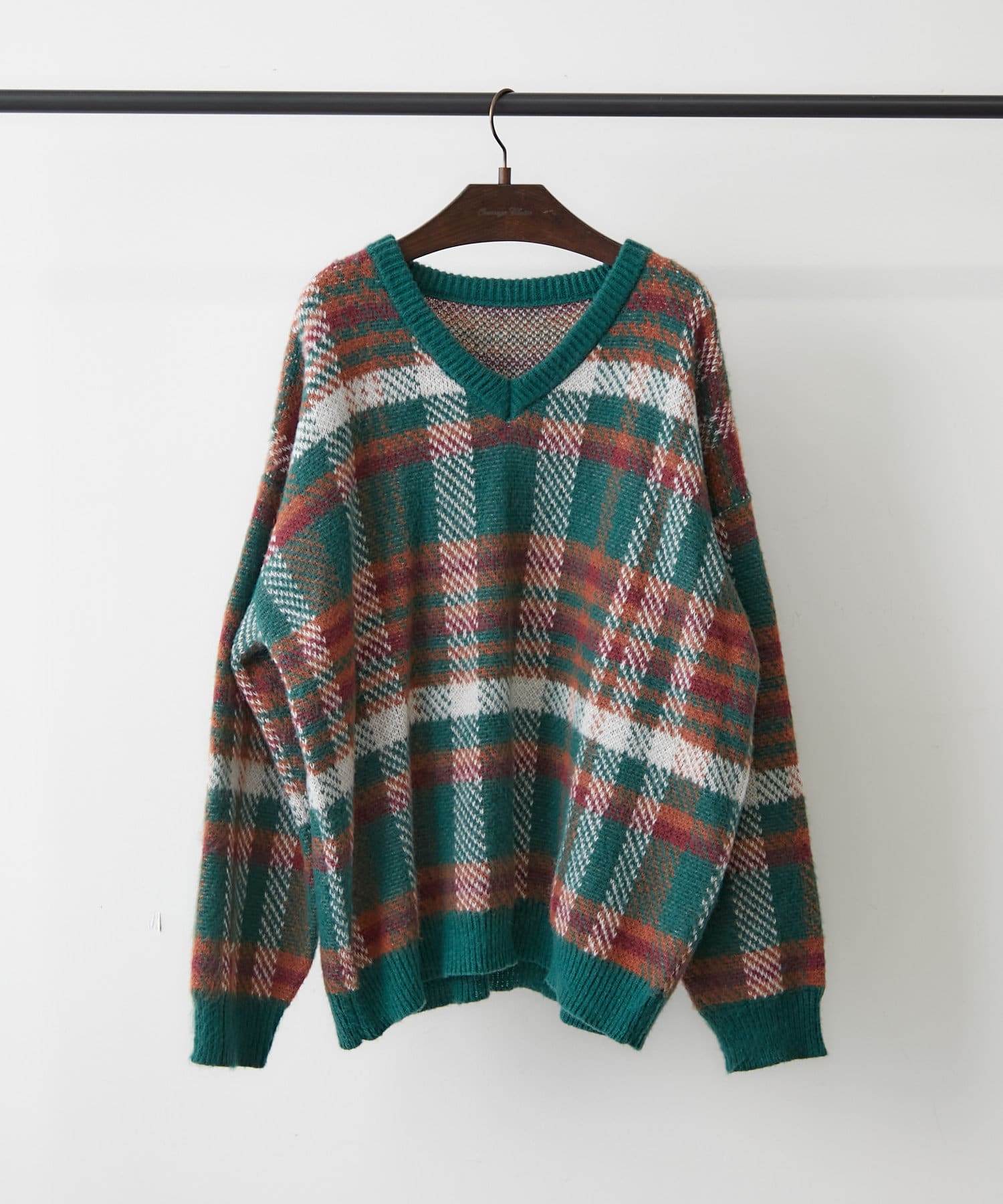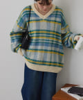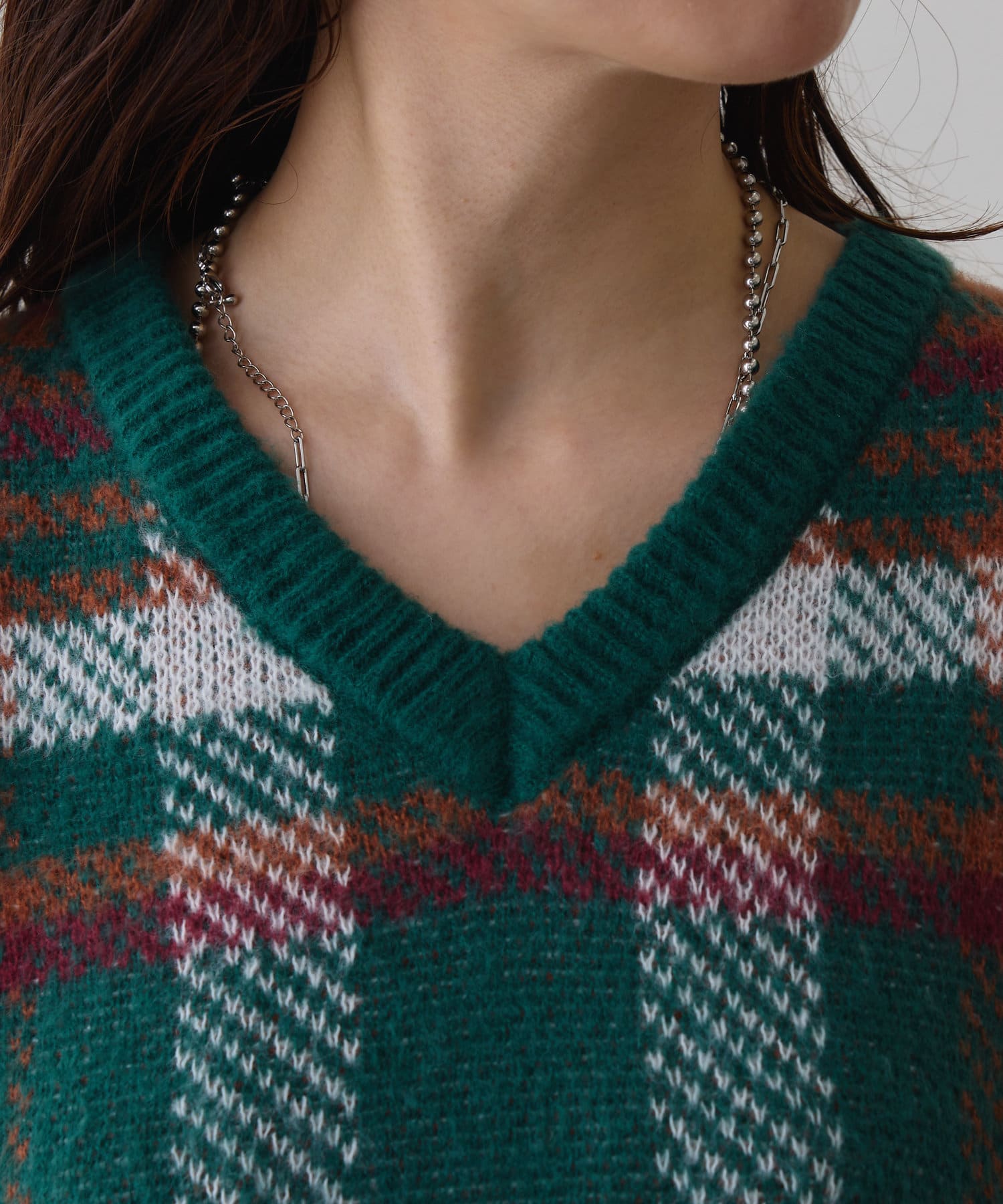 ・秋ムードが一気に高まるチェックニットは一枚でコーデが決まるデザインに。